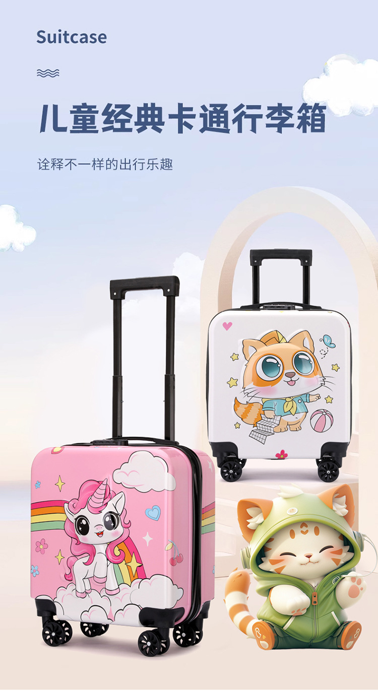 어린이용 여행가방 18inch 대용량 트롤리 캐리어, 회전식 바퀴, 비밀번호 잠금 여행가방, 귀여운 만화 선물 상자 도매