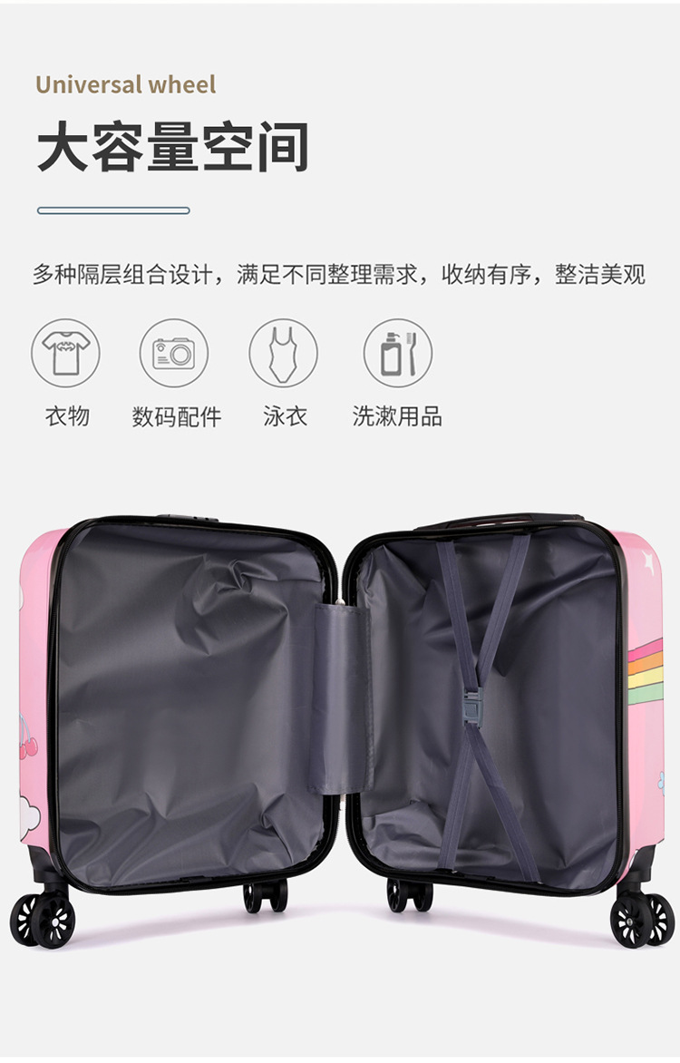 어린이용 여행가방 18inch 대용량 트롤리 캐리어, 회전식 바퀴, 비밀번호 잠금 여행가방, 귀여운 만화 선물 상자 도매스토어 가기