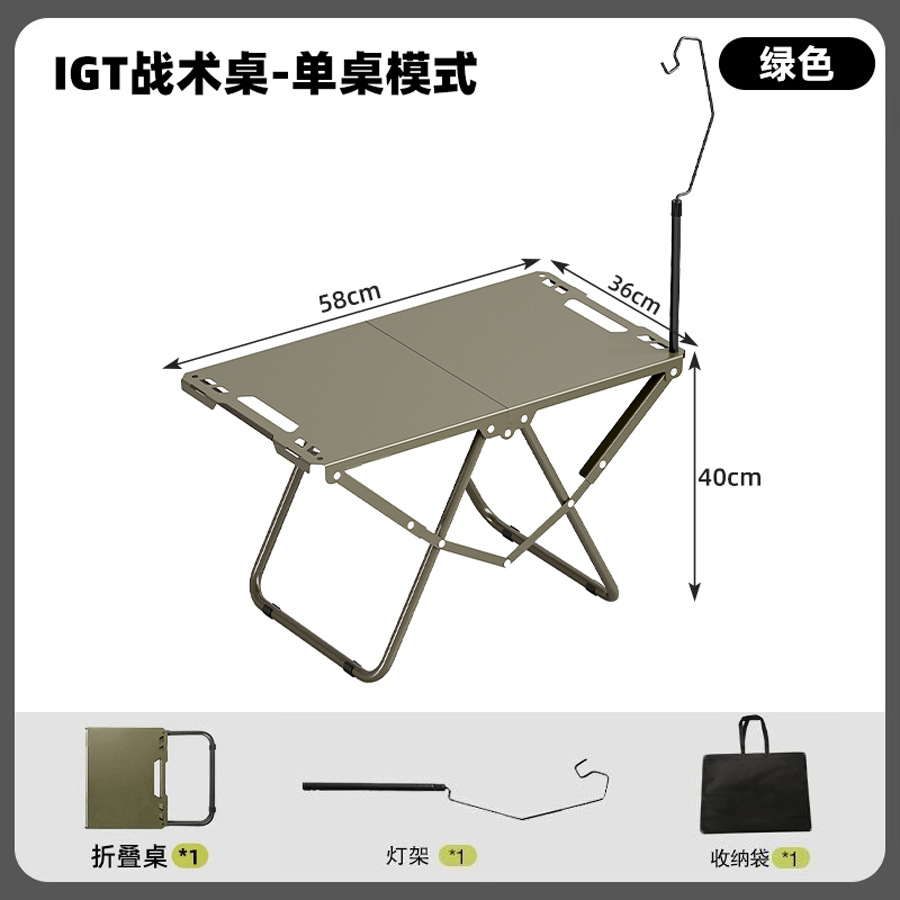 • 【IGT 전술 테이블】 국방색 퀵 오픈 접이식 + 조명 거치대 포함 + 수납 가방 증정