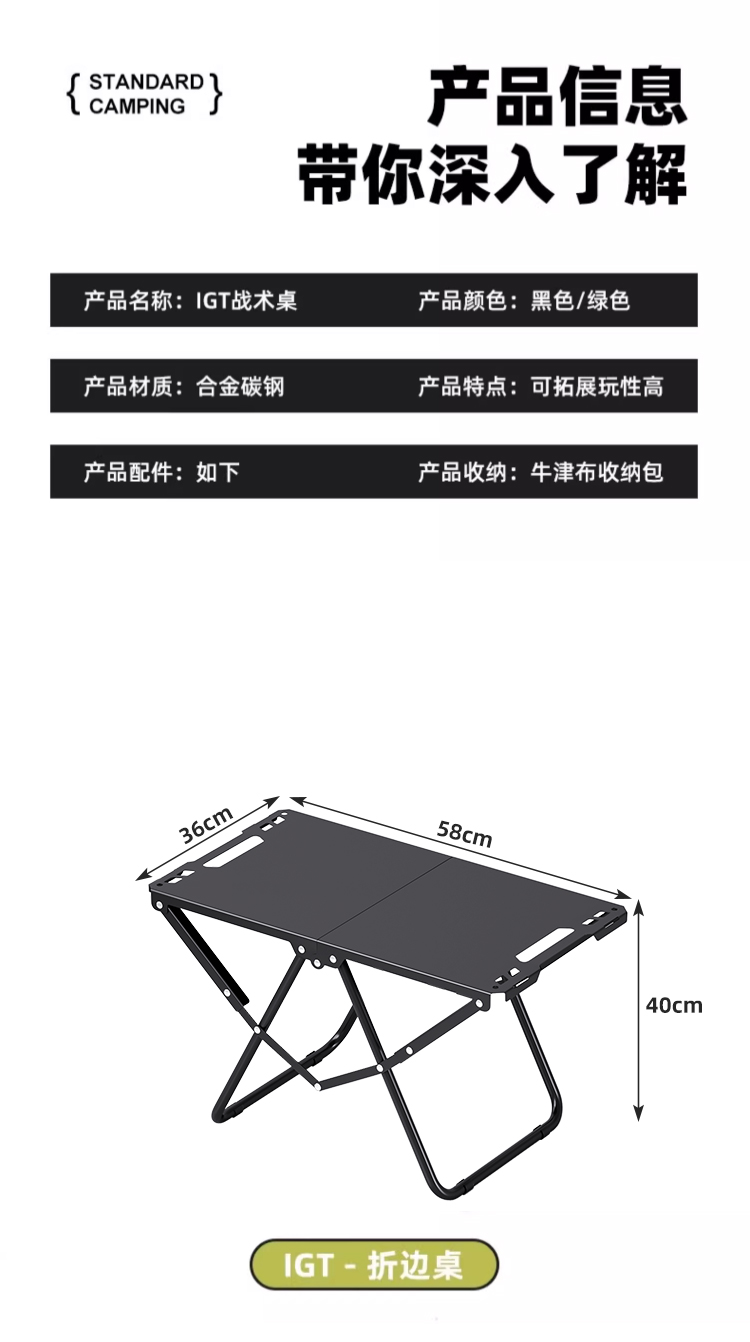 • 【IGT 전술 테이블】 블랙 퀵 오픈 접이식 + 수납 가방 증정