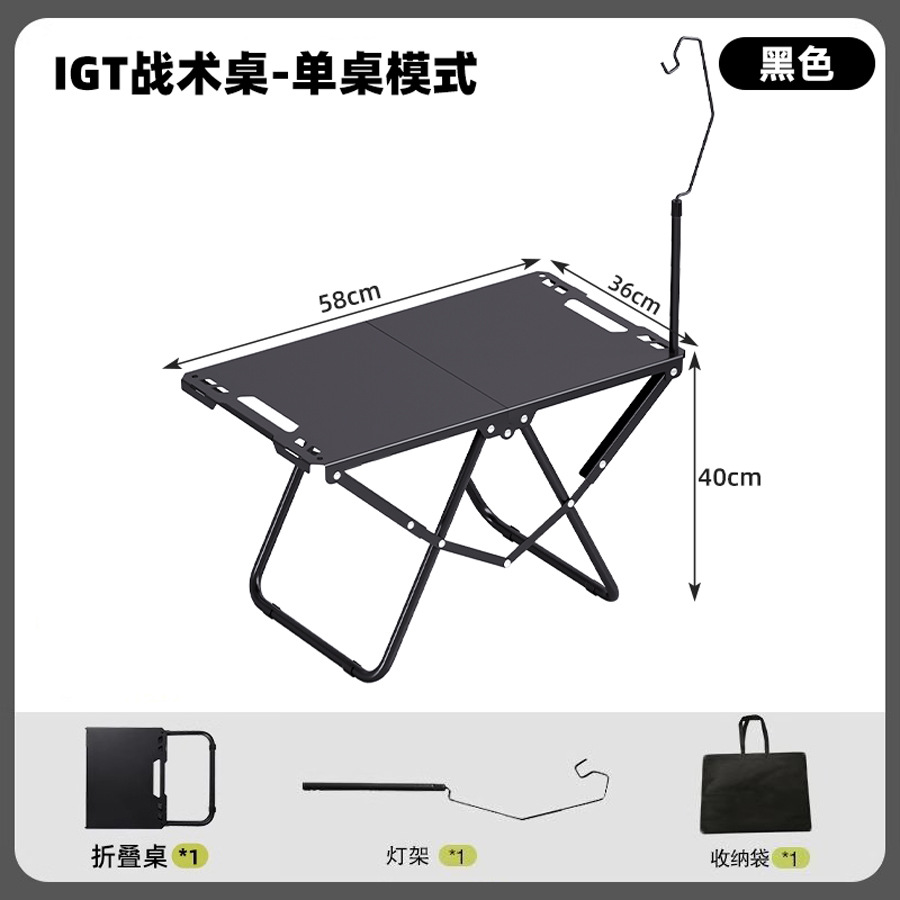 • 【IGT 전술 테이블】 블랙 퀵 오픈 접이식 + 조명 거치대 포함 + 수납 가방 증정
