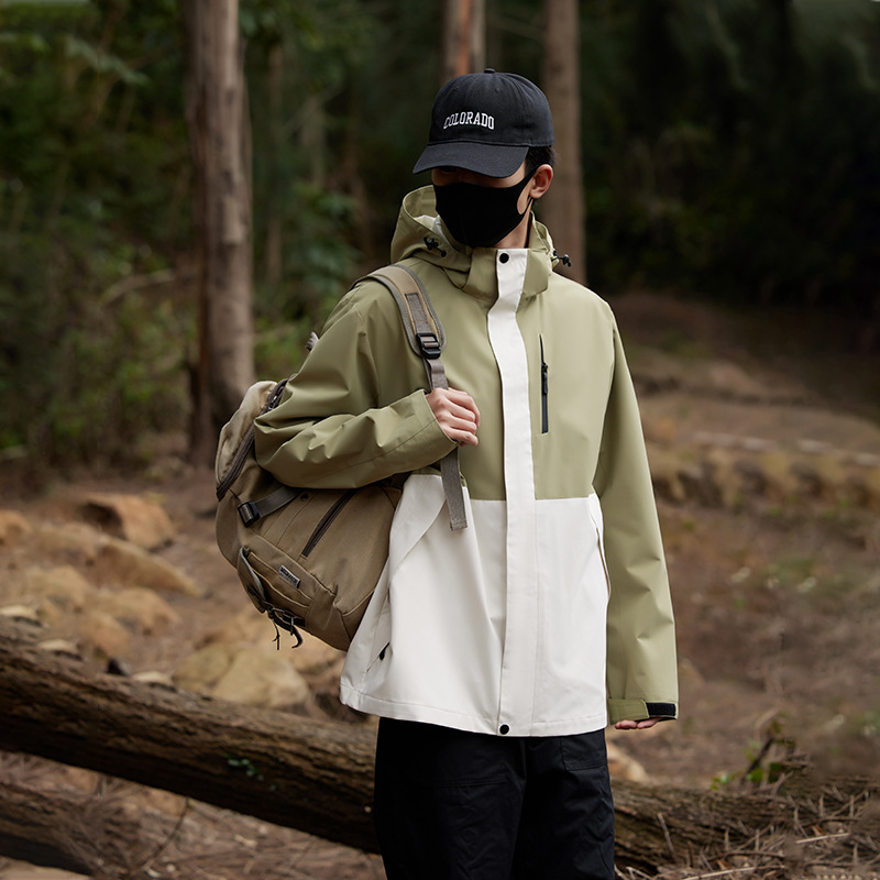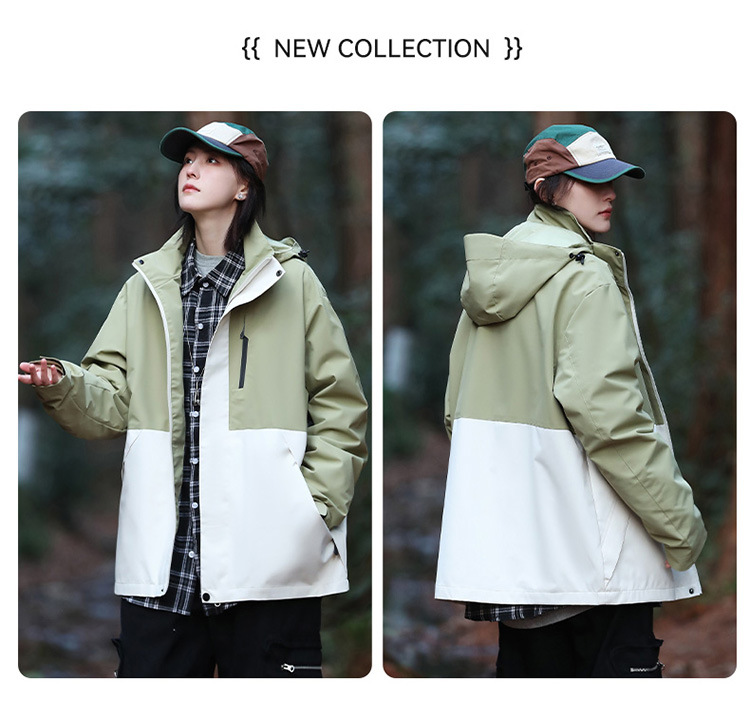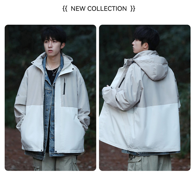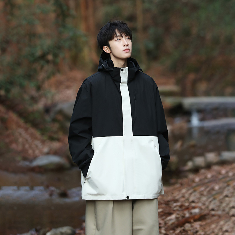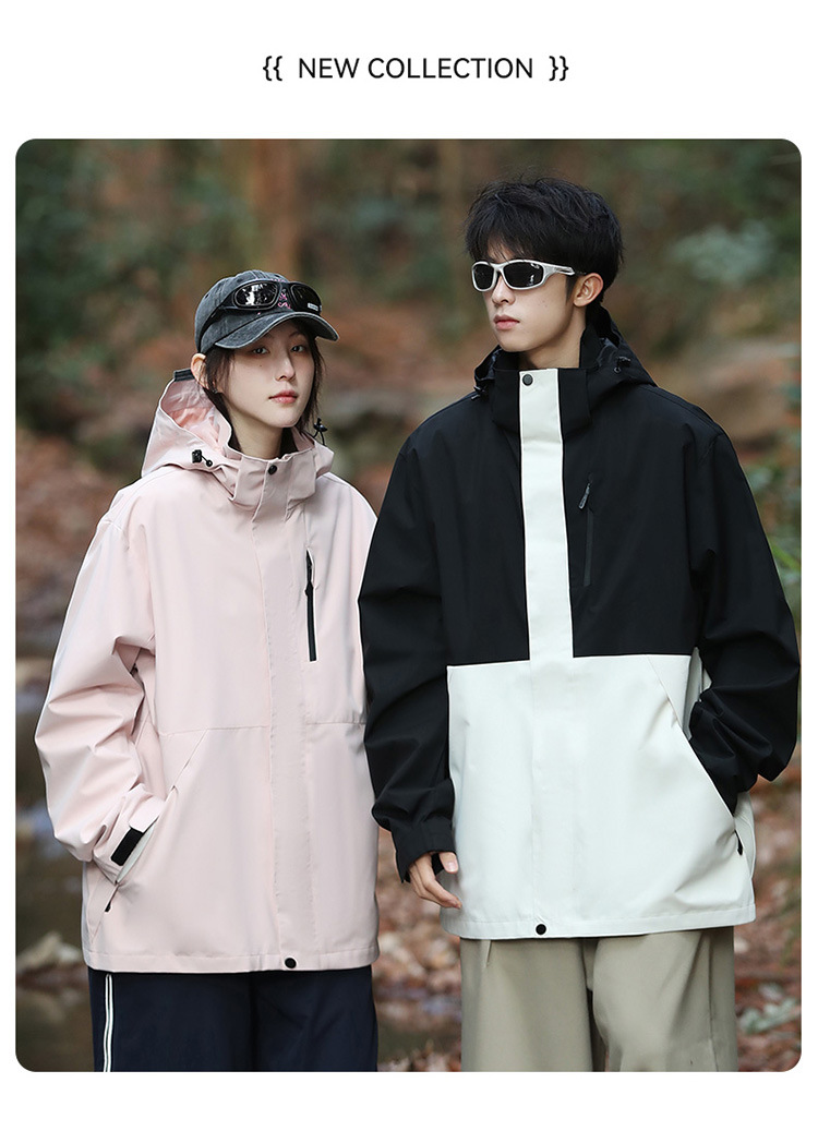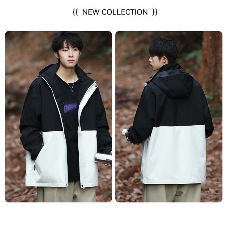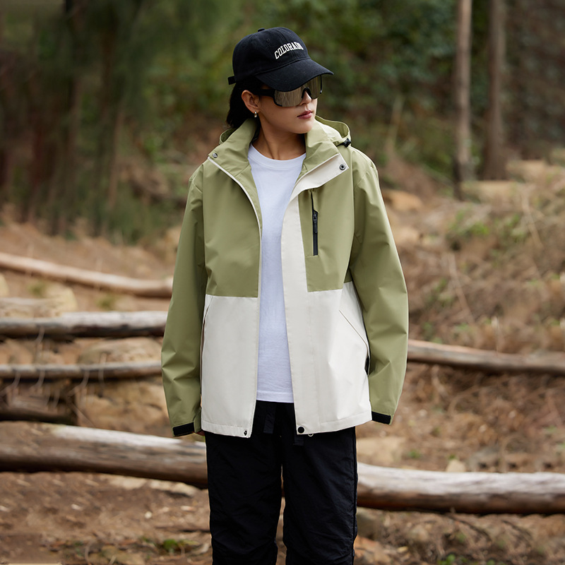 남성과 여성을 위한 봄과 가을 새로운 야외 루즈 커플 재킷, 컬러 블록 방수 재킷, 후드 스포츠 및 레저 재킷