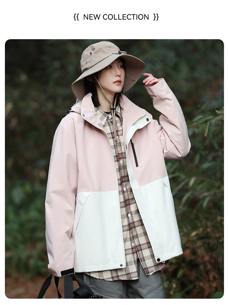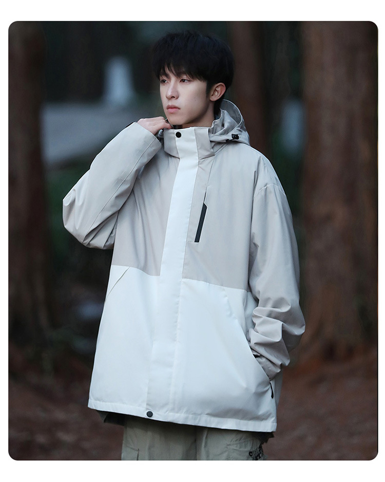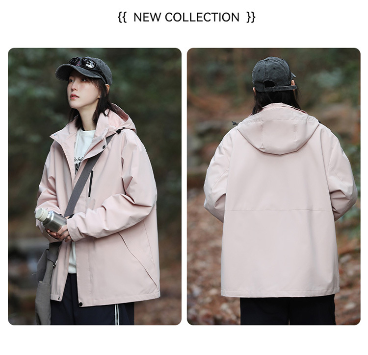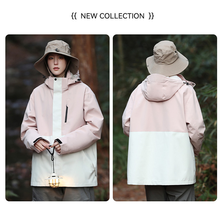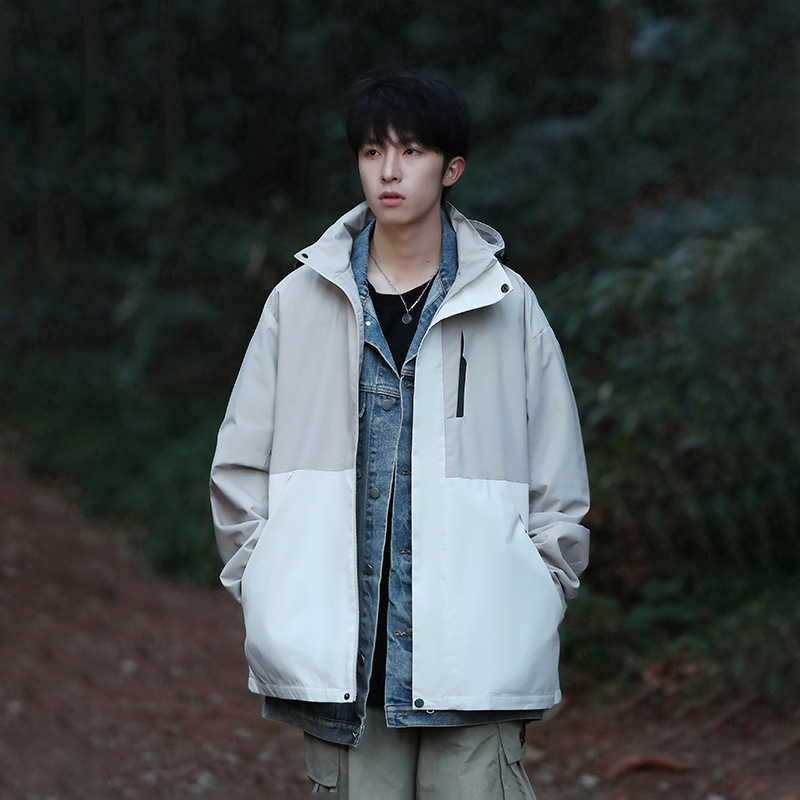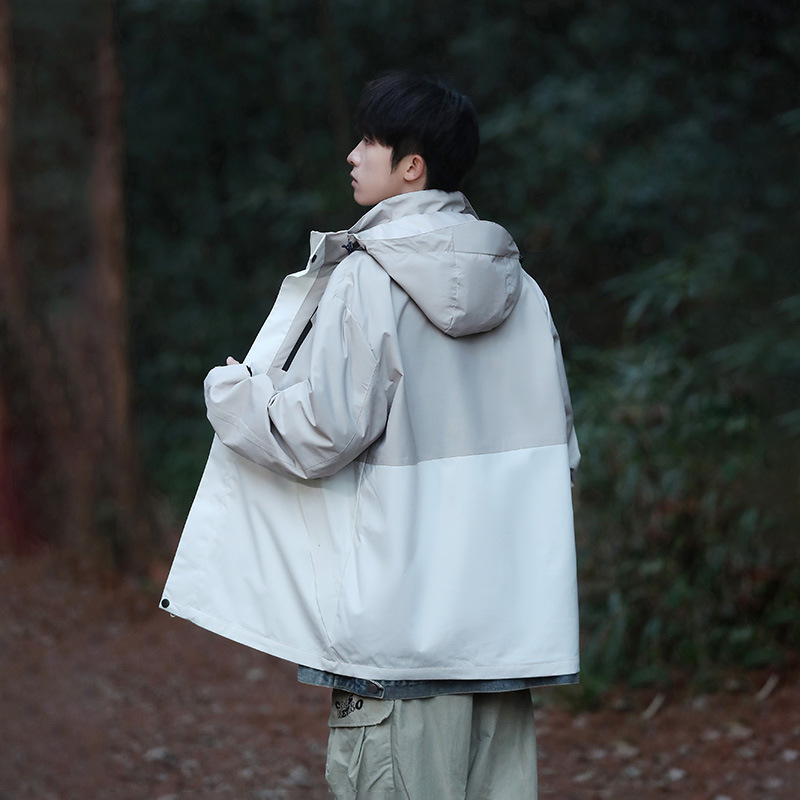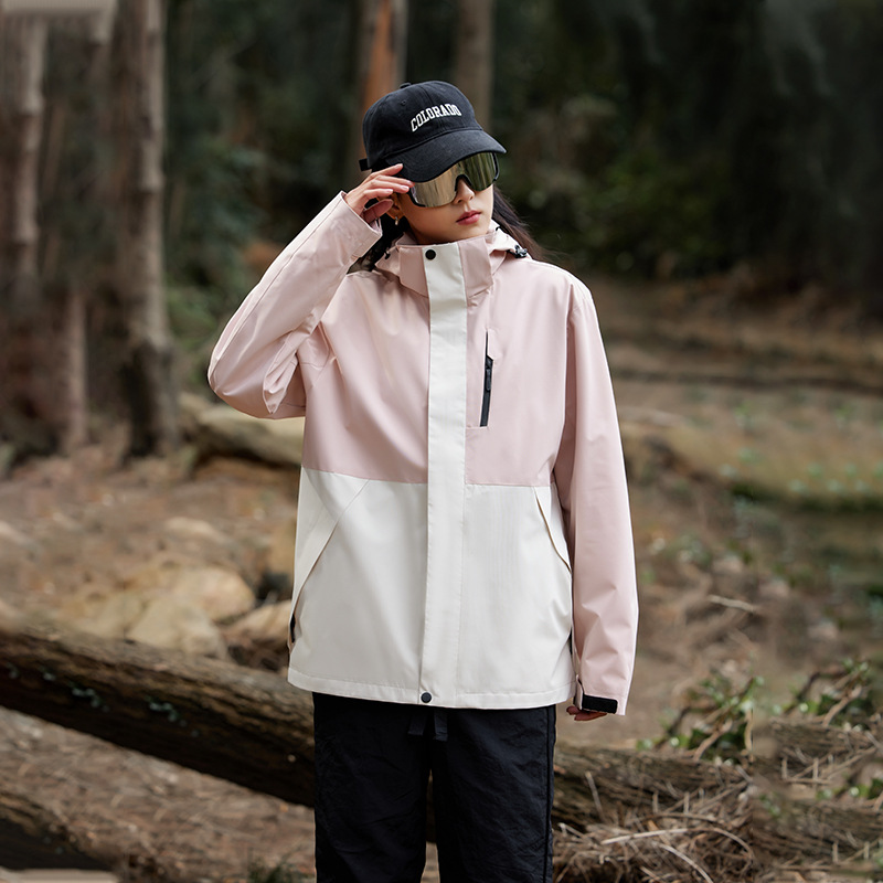 남성과 여성을 위한 봄과 가을 새로운 야외 루즈 커플 재킷, 컬러 블록 방수 재킷, 후드 스포츠 및 레저 재킷