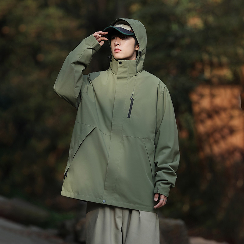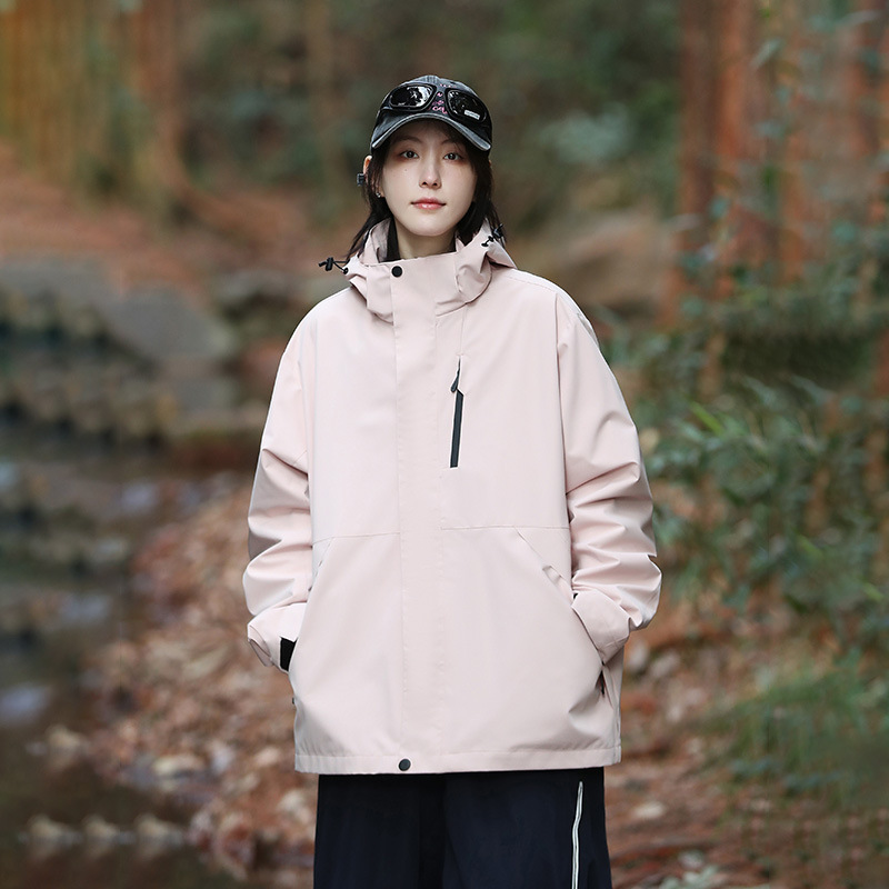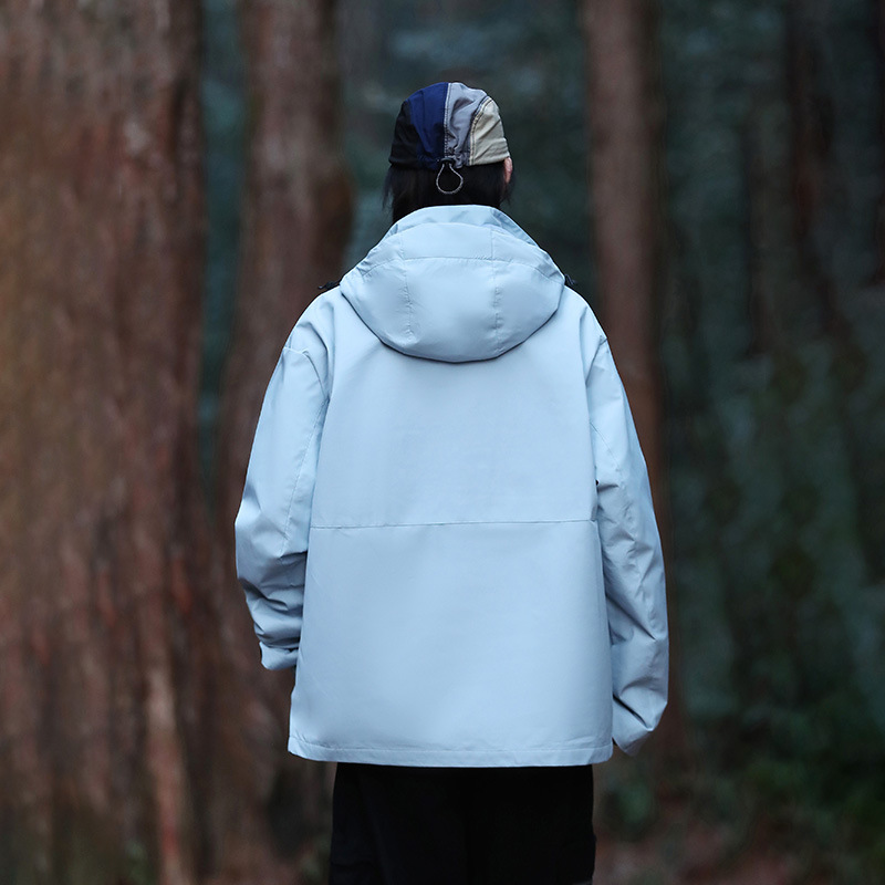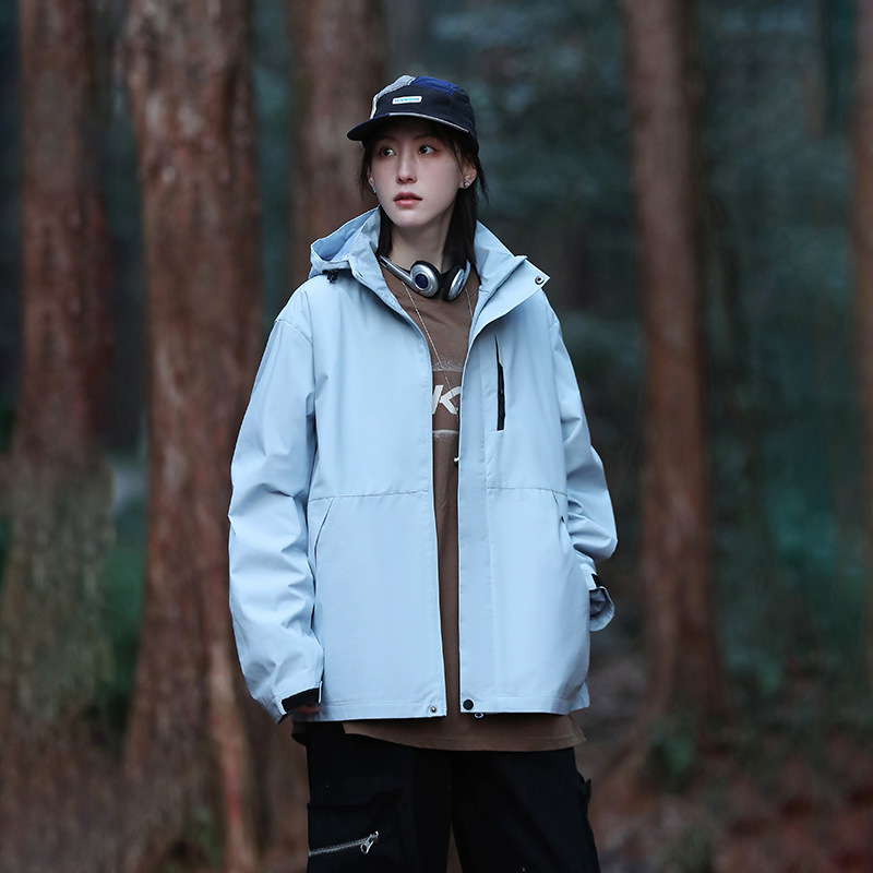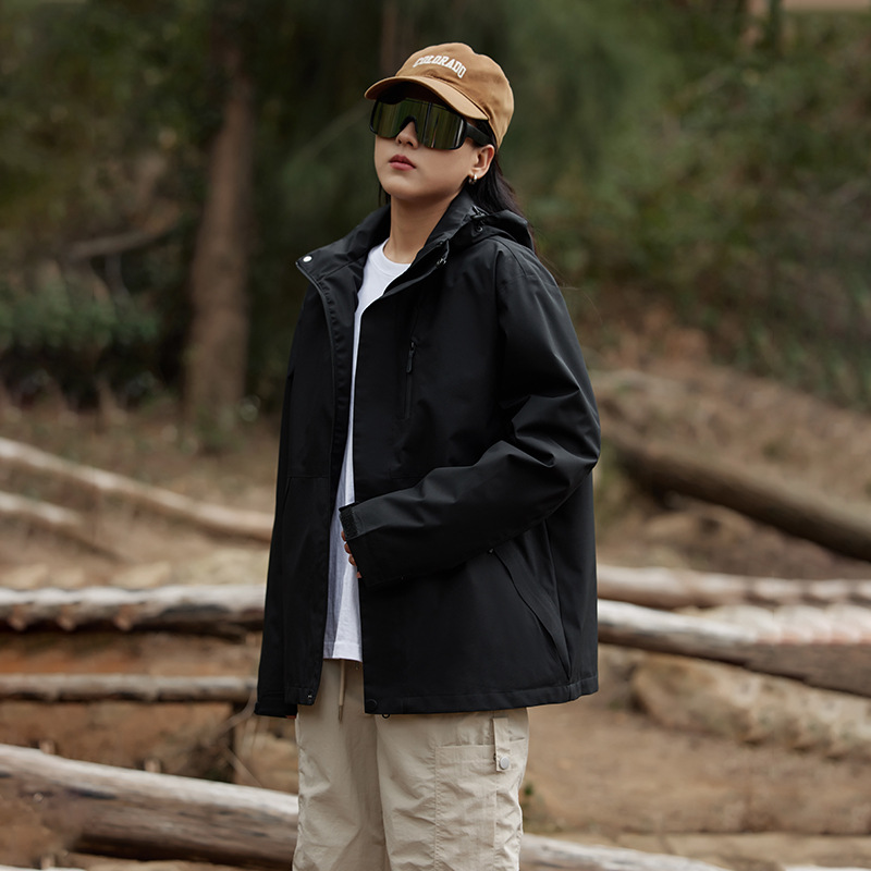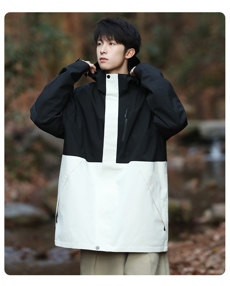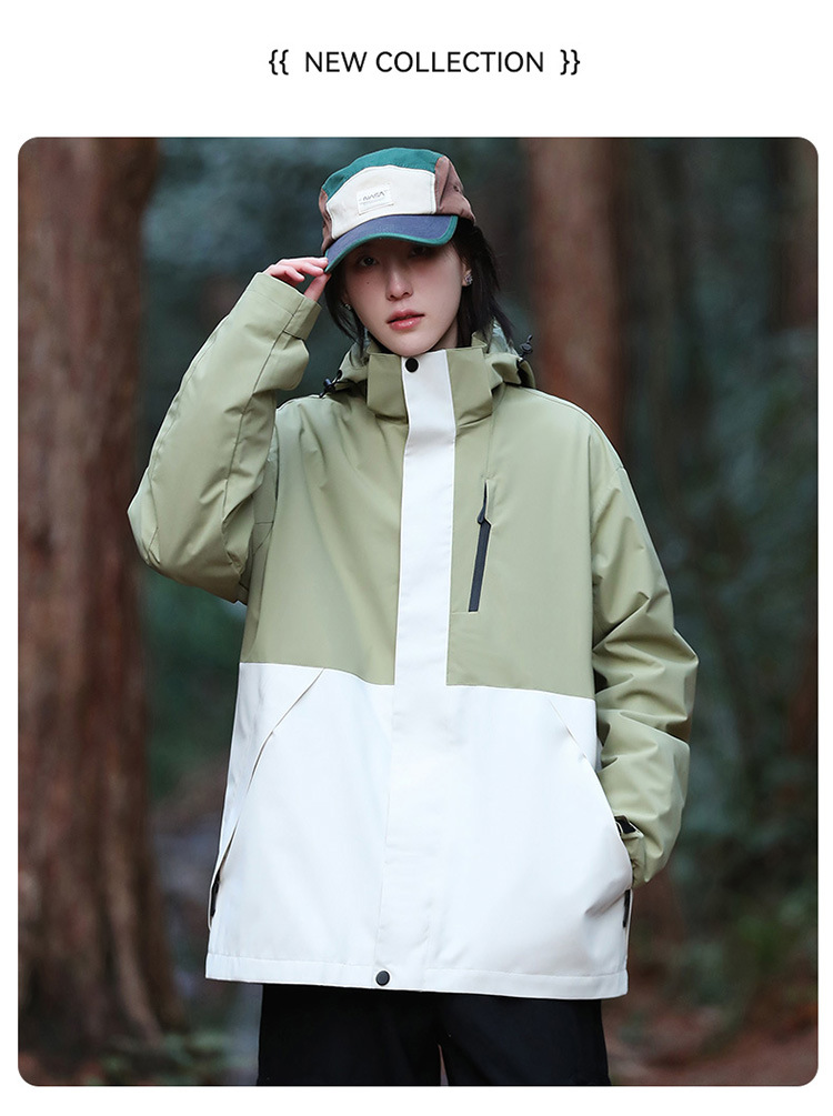 남성과 여성을 위한 봄과 가을 새로운 야외 루즈 커플 재킷, 컬러 블록 방수 재킷, 후드 스포츠 및 레저 재킷