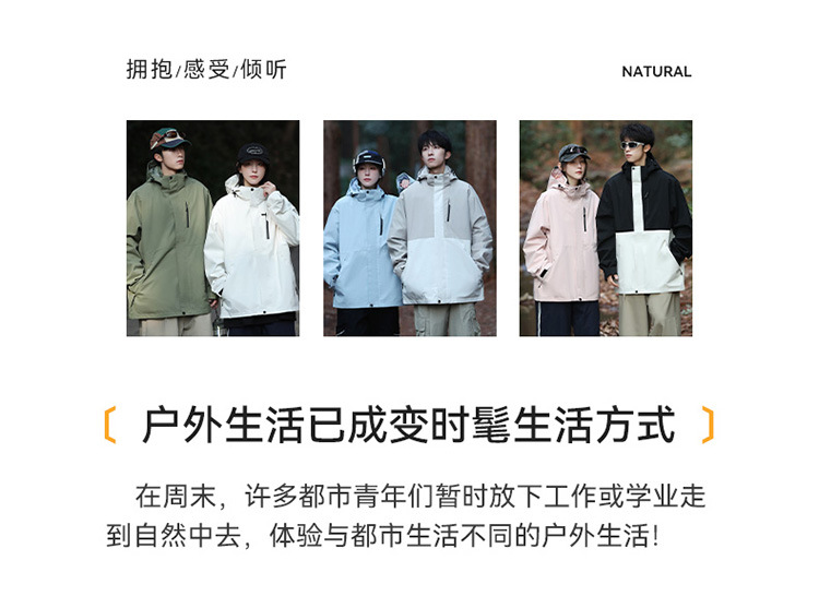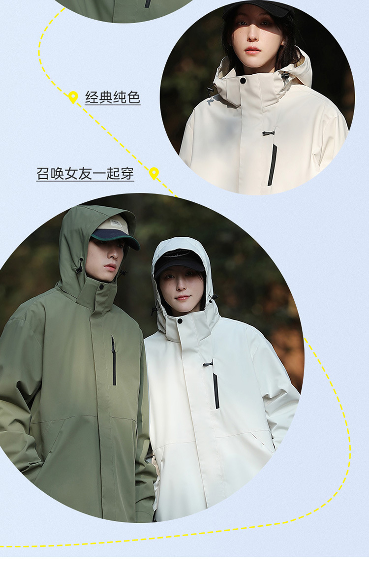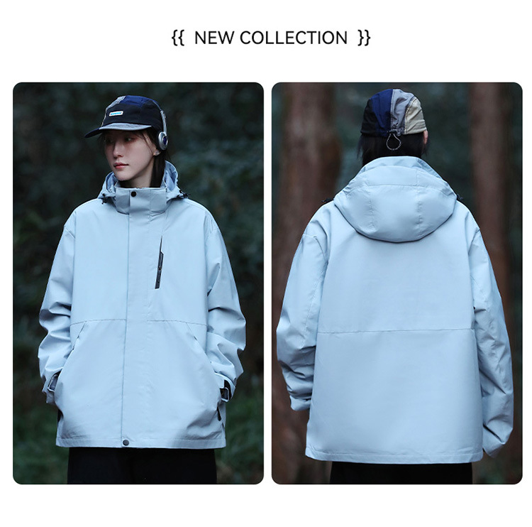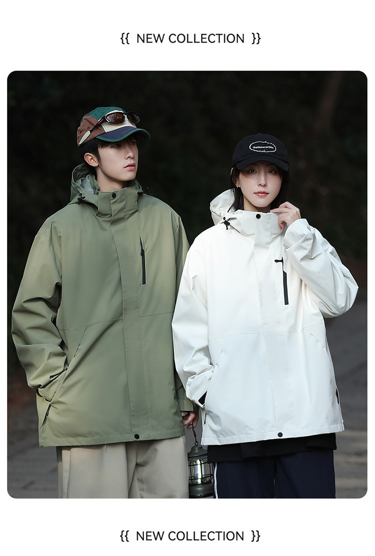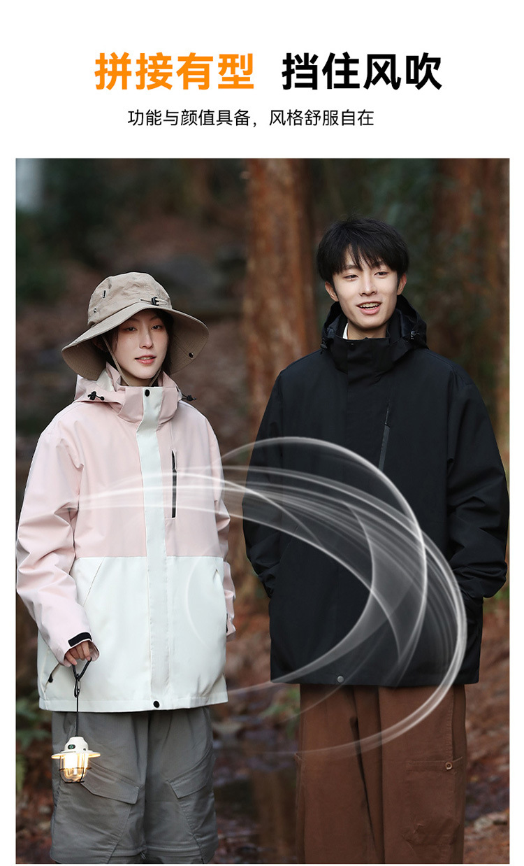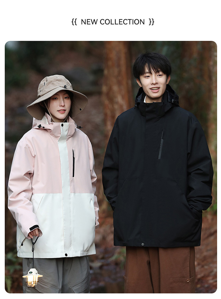 남성과 여성을 위한 봄과 가을 새로운 야외 루즈 커플 재킷, 컬러 블록 방수 재킷, 후드 스포츠 및 레저 재킷스토어 가기