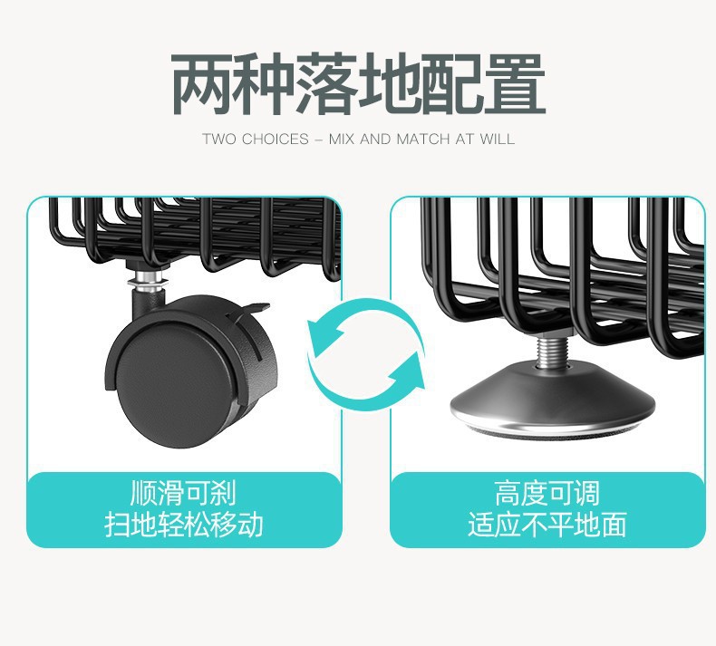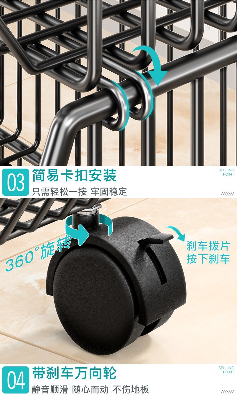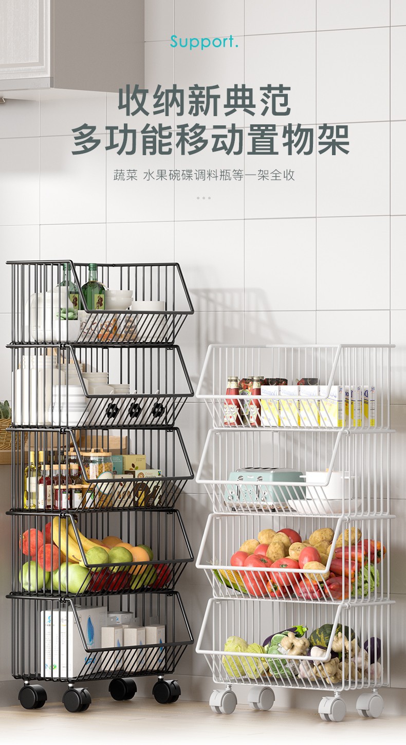 야채 바구니와 야채 바구니를 보관하고 배치할 수 있는 주방 바닥에서부터 바닥까지 다층 트롤리 욕실 보관 선반스토어 가기