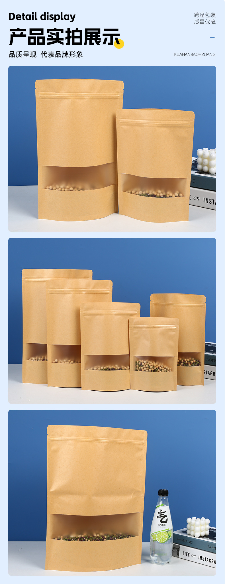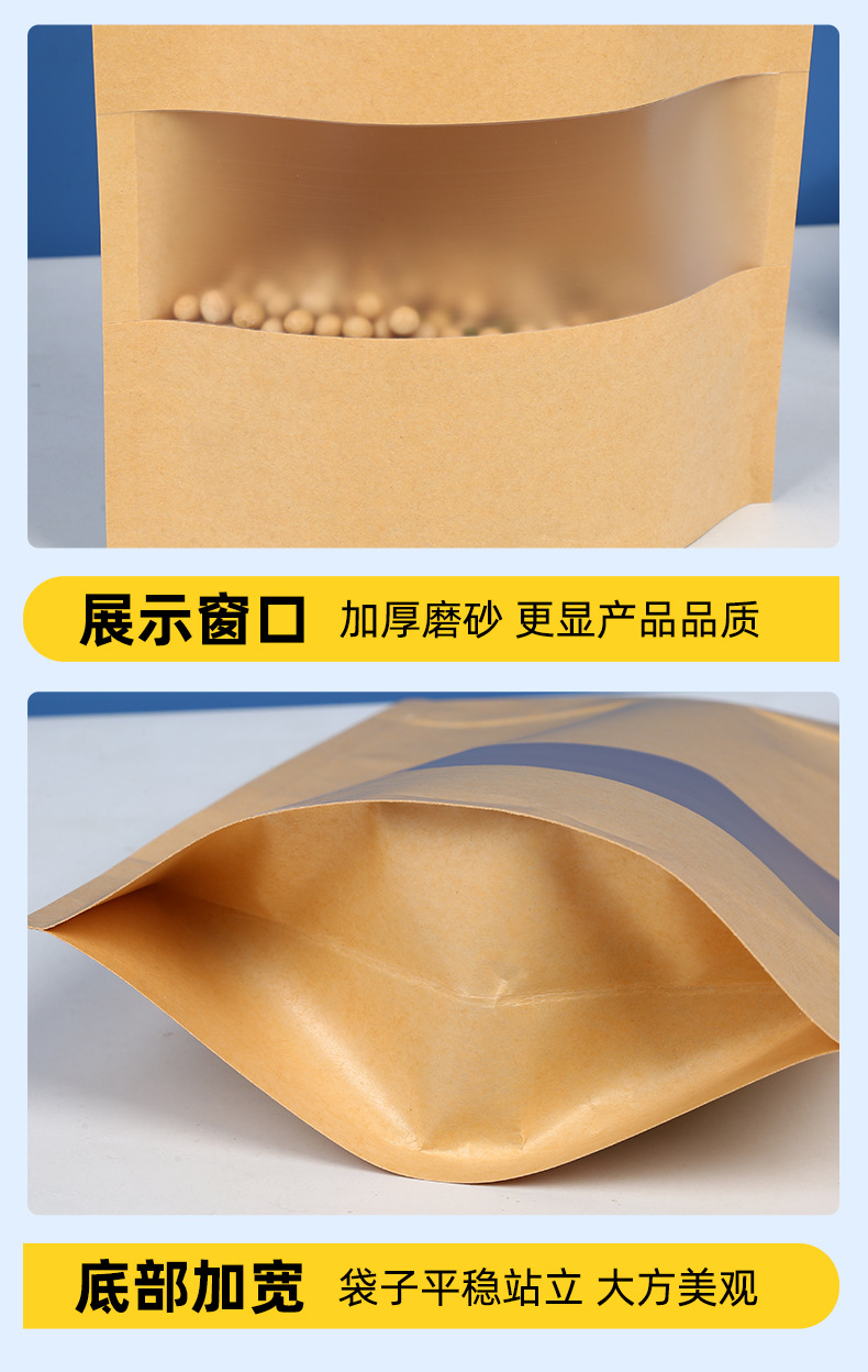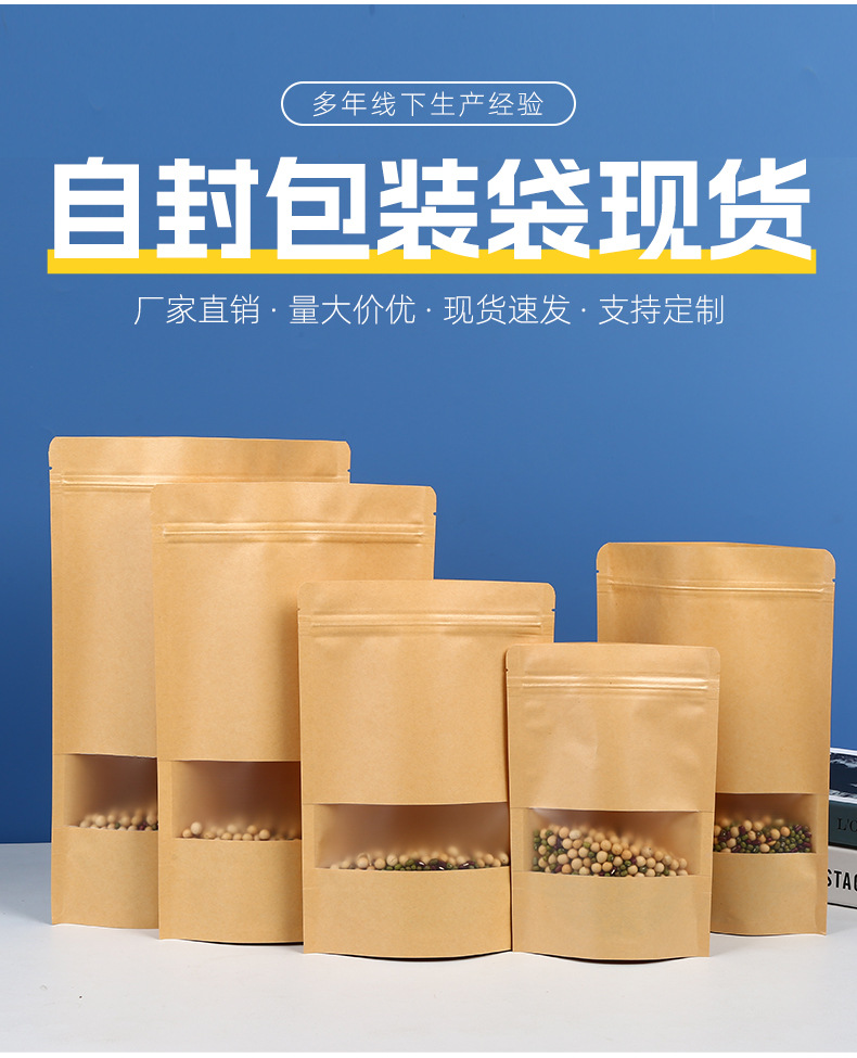 자체 밀봉 크래프트 종이 봉투 보관 가방 두꺼운 투명 젖빛 창 창 차 말린 과일 포장 가방 도매스토어 가기