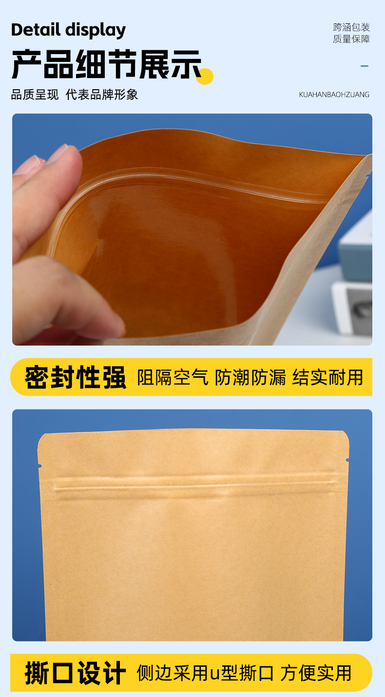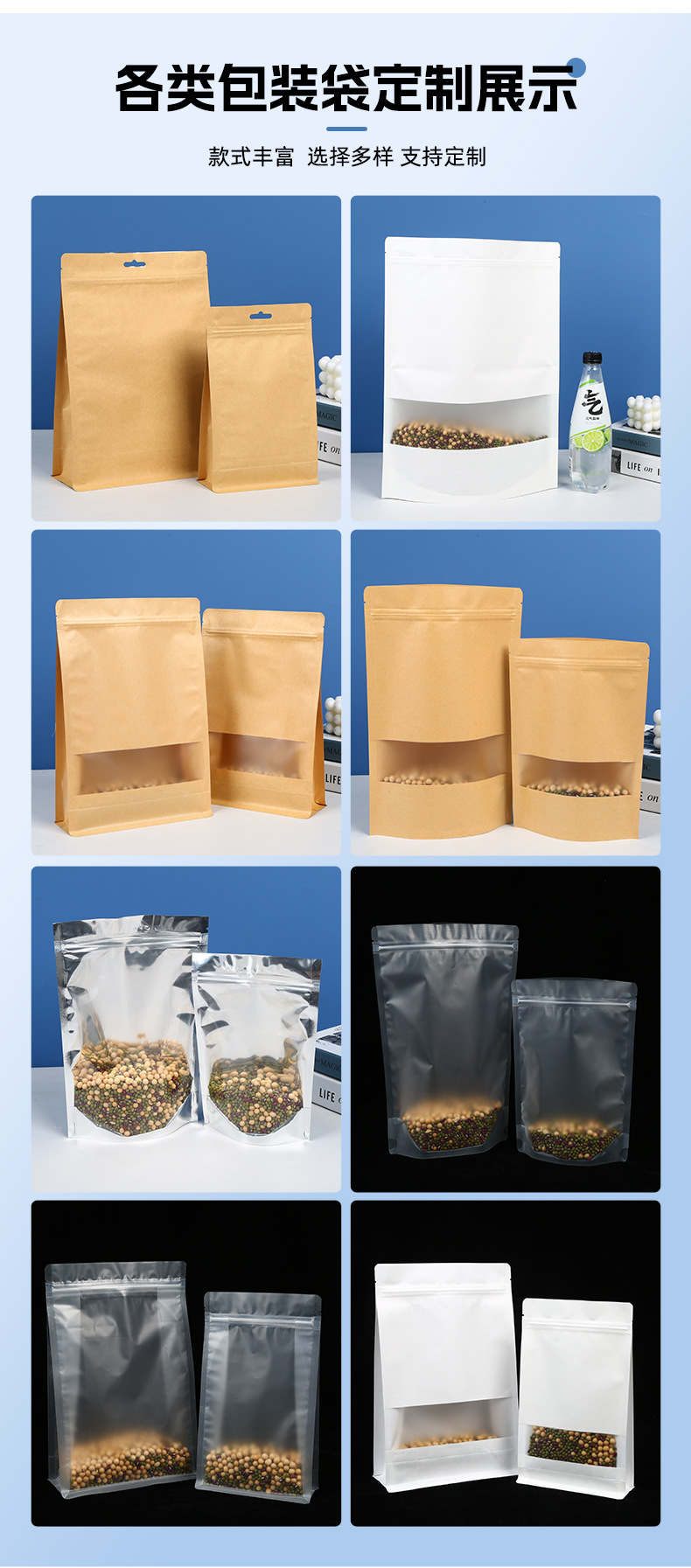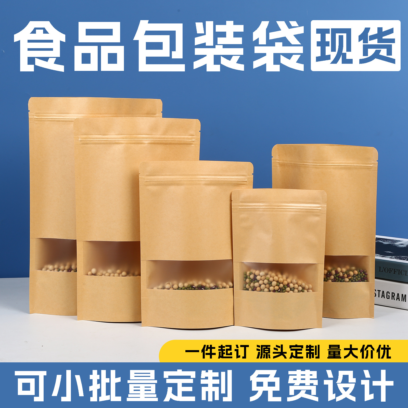 자체 밀봉 크래프트 종이 봉투 보관 가방 두꺼운 투명 젖빛 창 창 차 말린 과일 포장 가방 도매스토어 가기