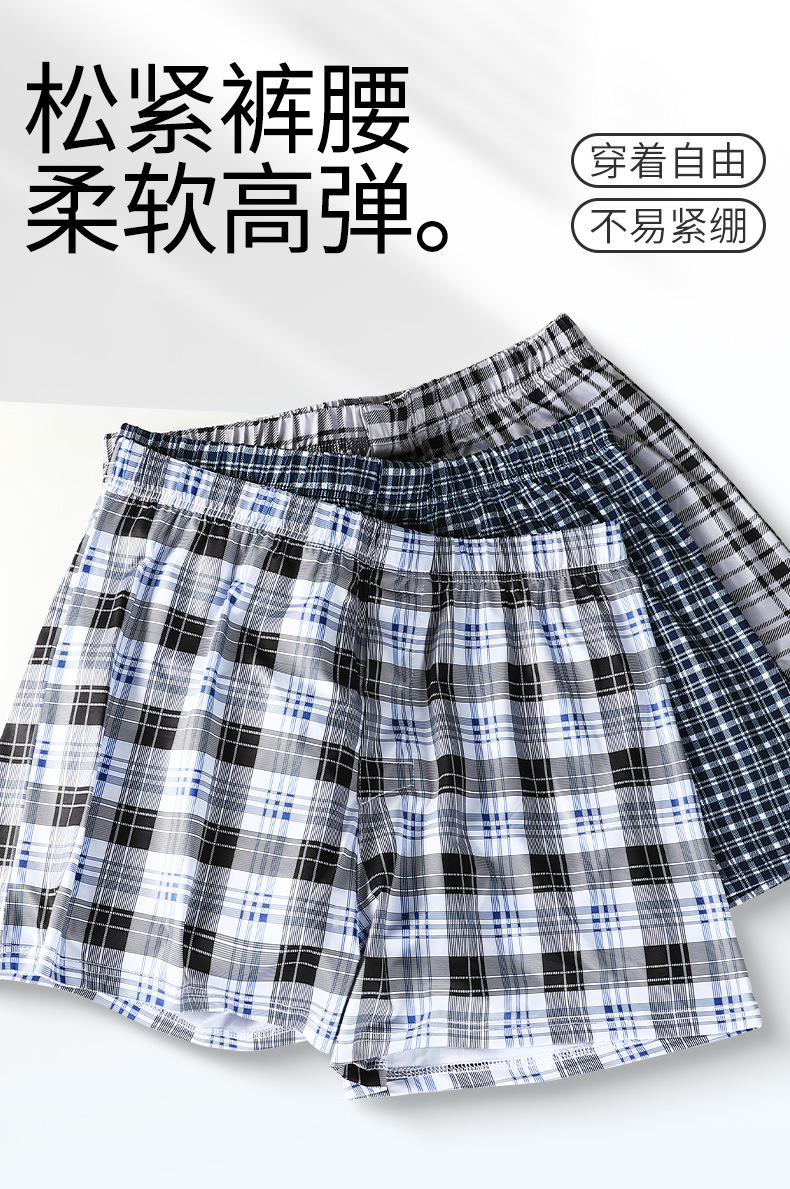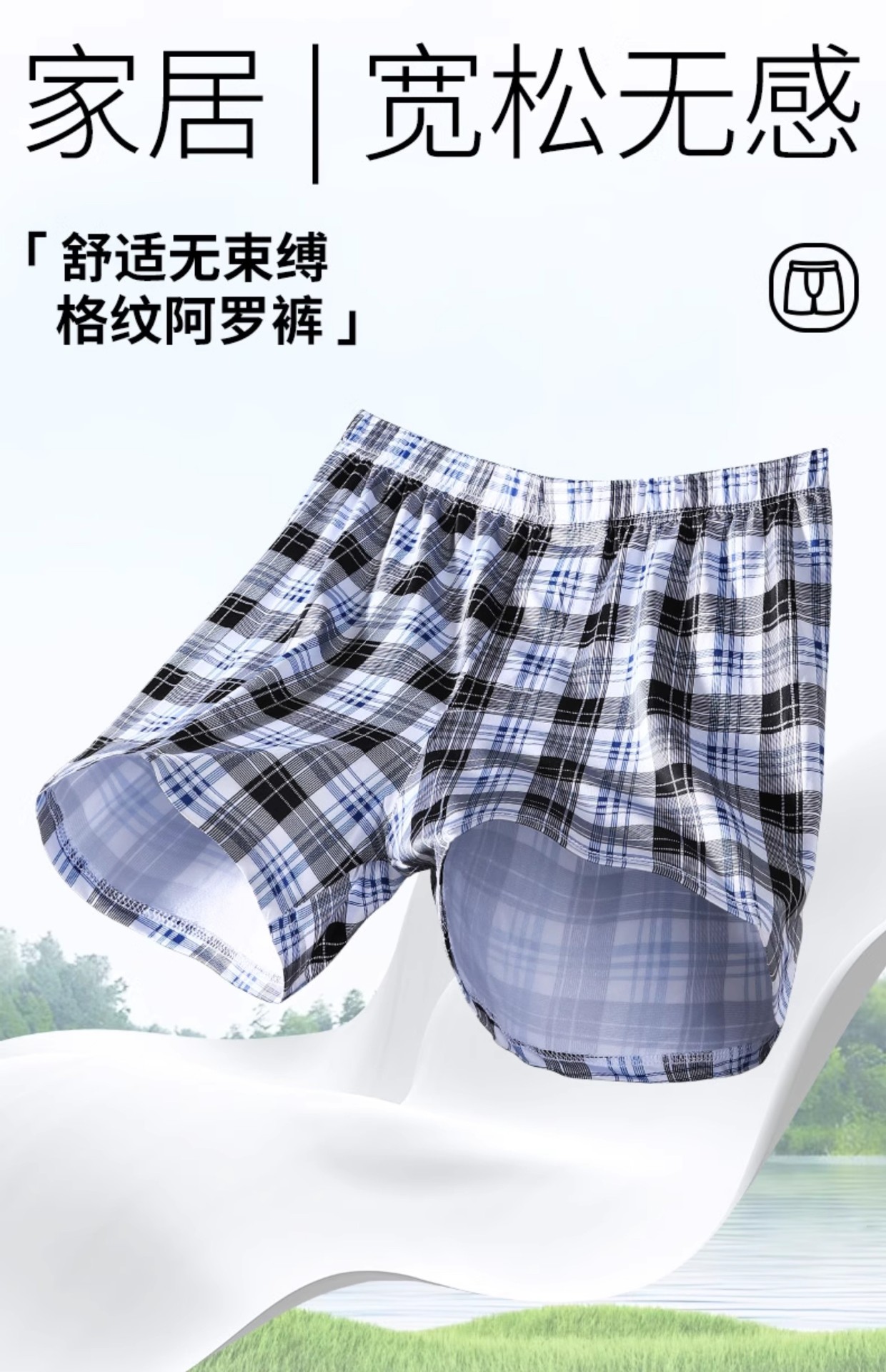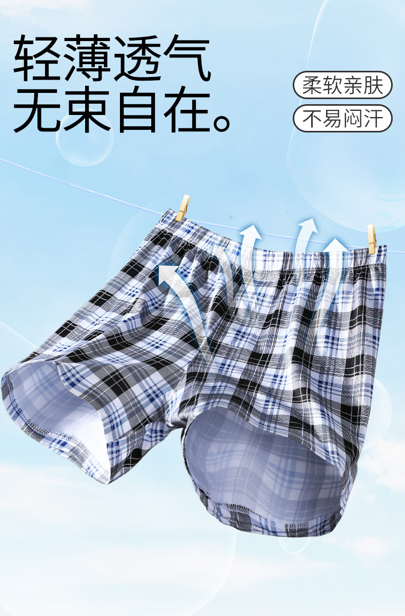 아이스 실크 루즈 남성용 복서 팬티 Arrow Pants 파자마 바지 소년 여름 얇은 격자 무늬 복서 팬티스토어 가기