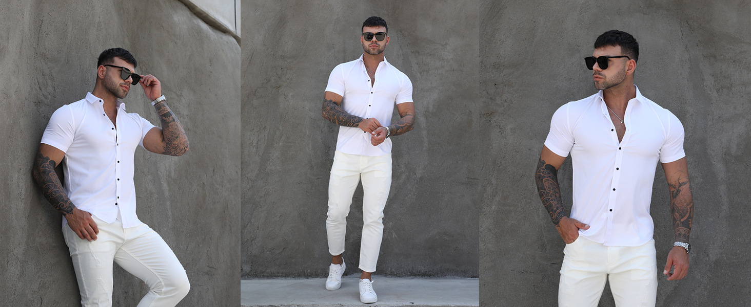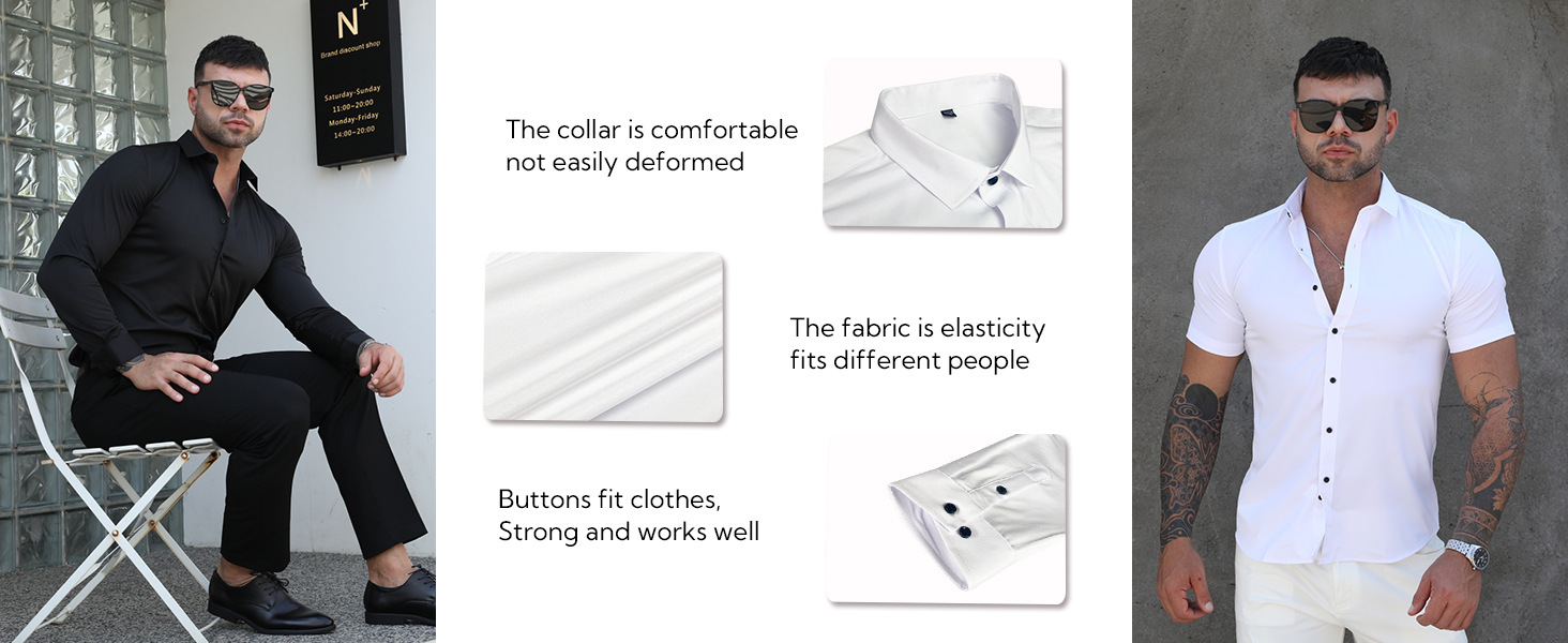 네 방향 스트레치, 다림질 필요 없는 남성용 긴팔 셔츠, 실크 같은 광택과 세로감 있는 유럽 사이즈 남성 셔츠스토어 가기