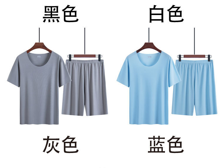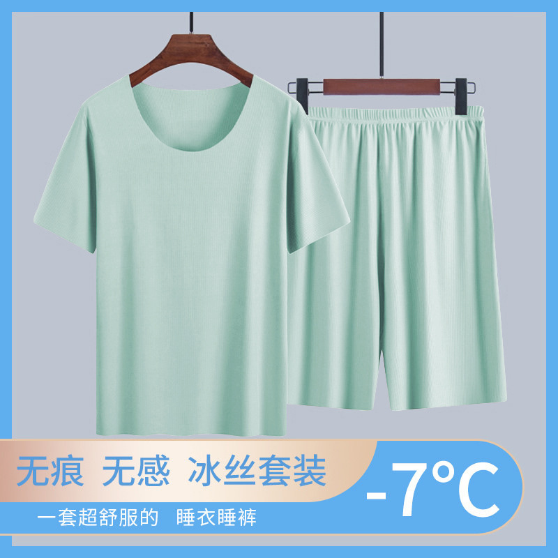 여름 얇은 남성과 여성의 잠옷 세트 얼음 실크 가정 의류 원활한 반팔 반바지 남성 라운드 넥 캐주얼 여름 옷스토어 가기