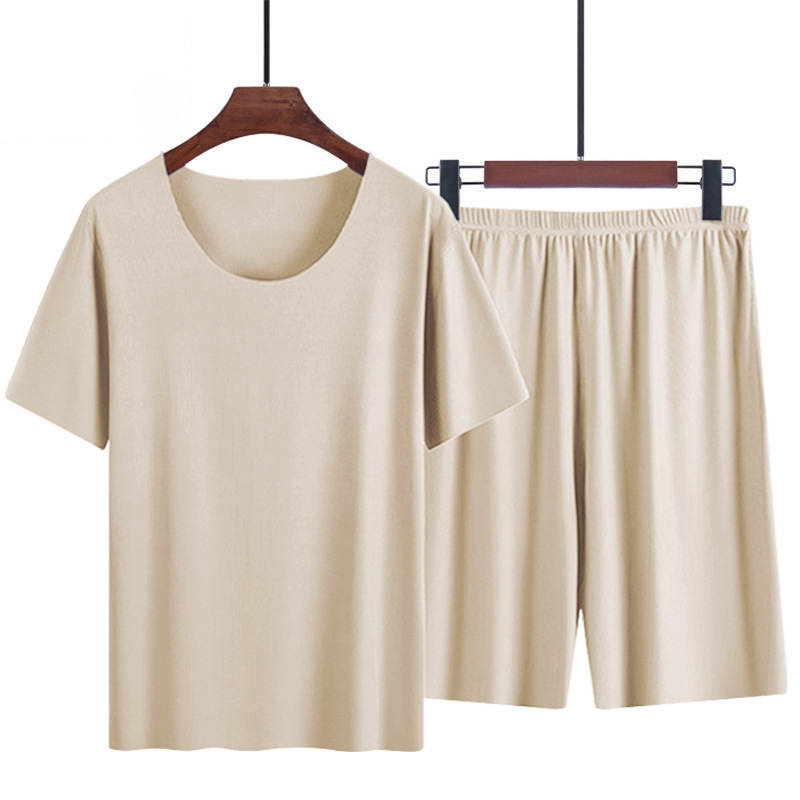 여름 얇은 남성과 여성의 잠옷 세트 얼음 실크 가정 의류 원활한 반팔 반바지 남성 라운드 넥 캐주얼 여름 옷