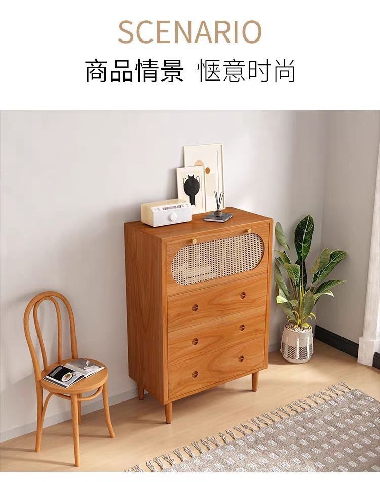 일본식 순수 원목 등나무 캐비닛 현대적인 간단한 작은 아파트 북유럽 입구 캐비닛 침실 수납 수납 서랍 유형