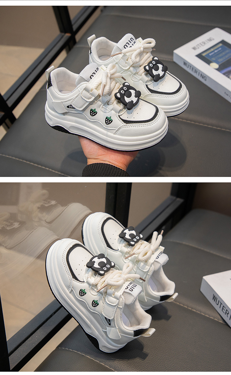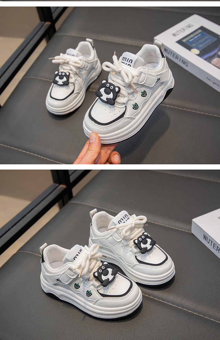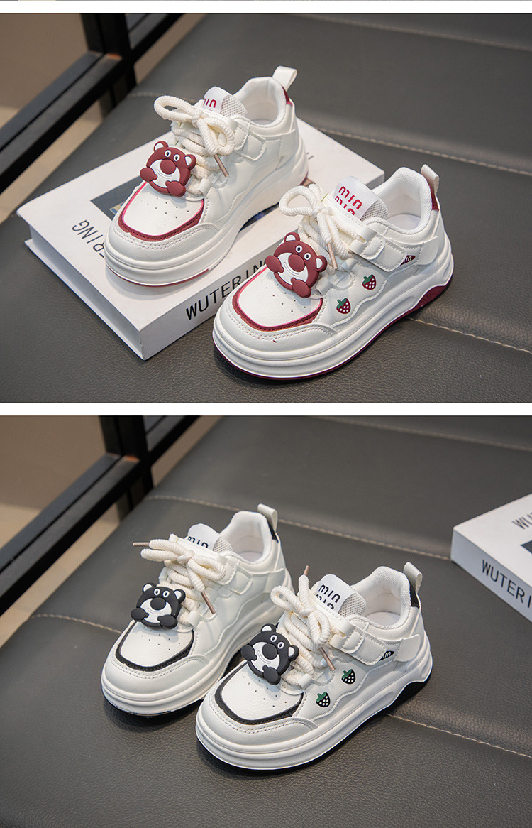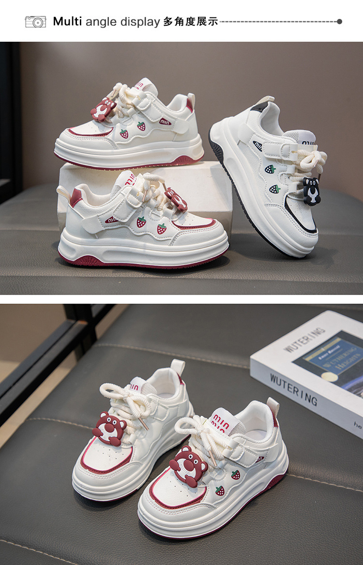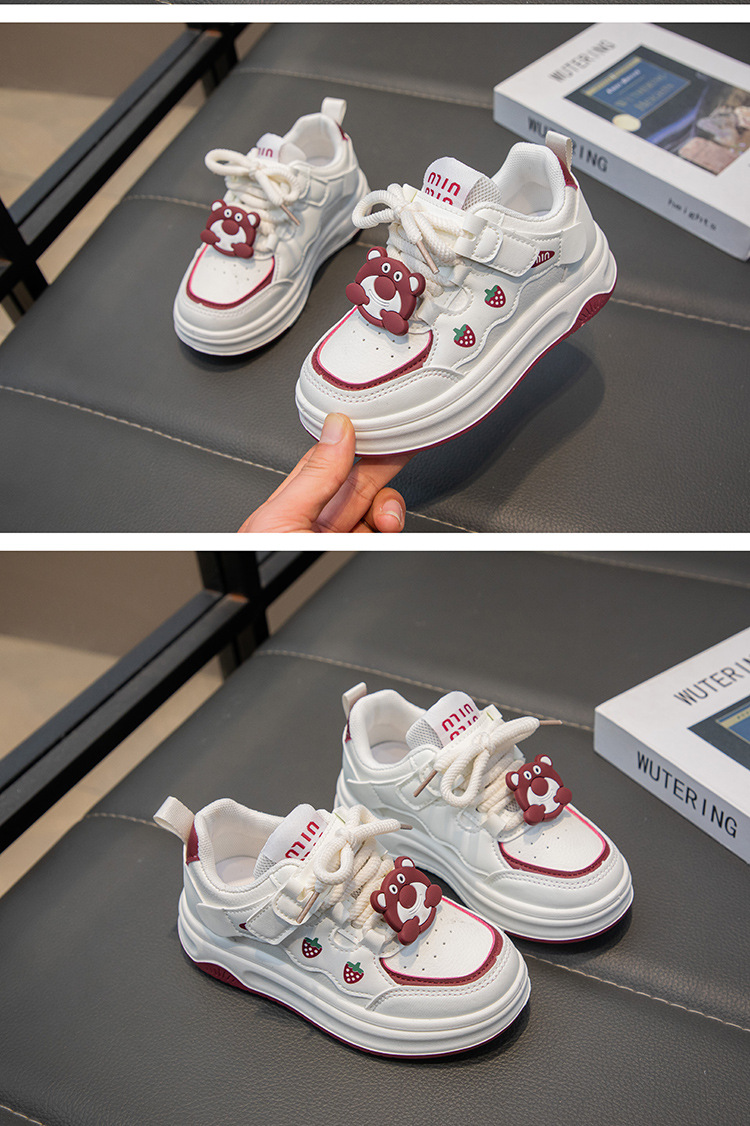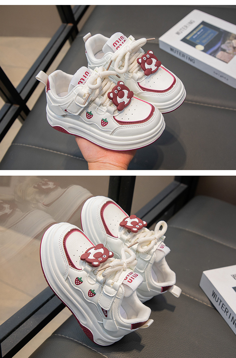 딸기 곰 소녀 운동화 가죽 방수 봄, 가을 새로운 어린이 운동화 중형 및 대형 어린이 남성 캐주얼 운동화