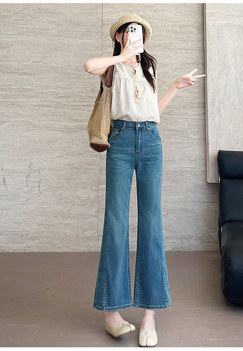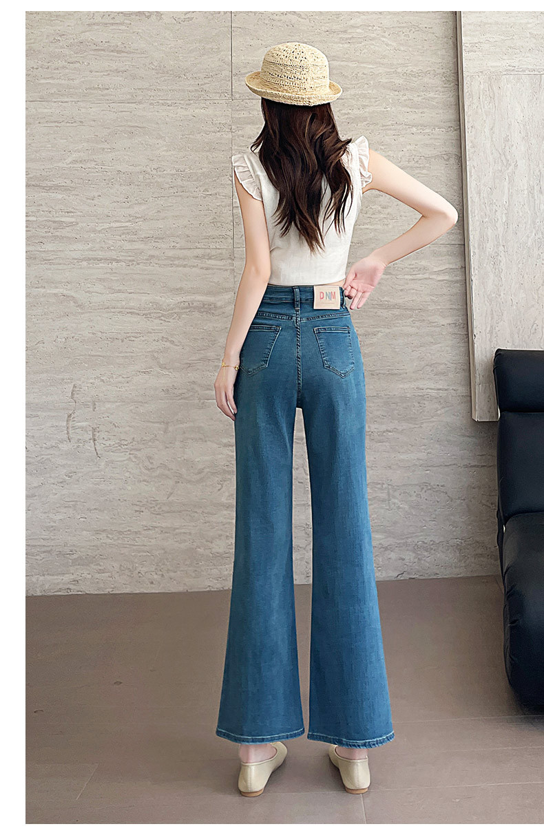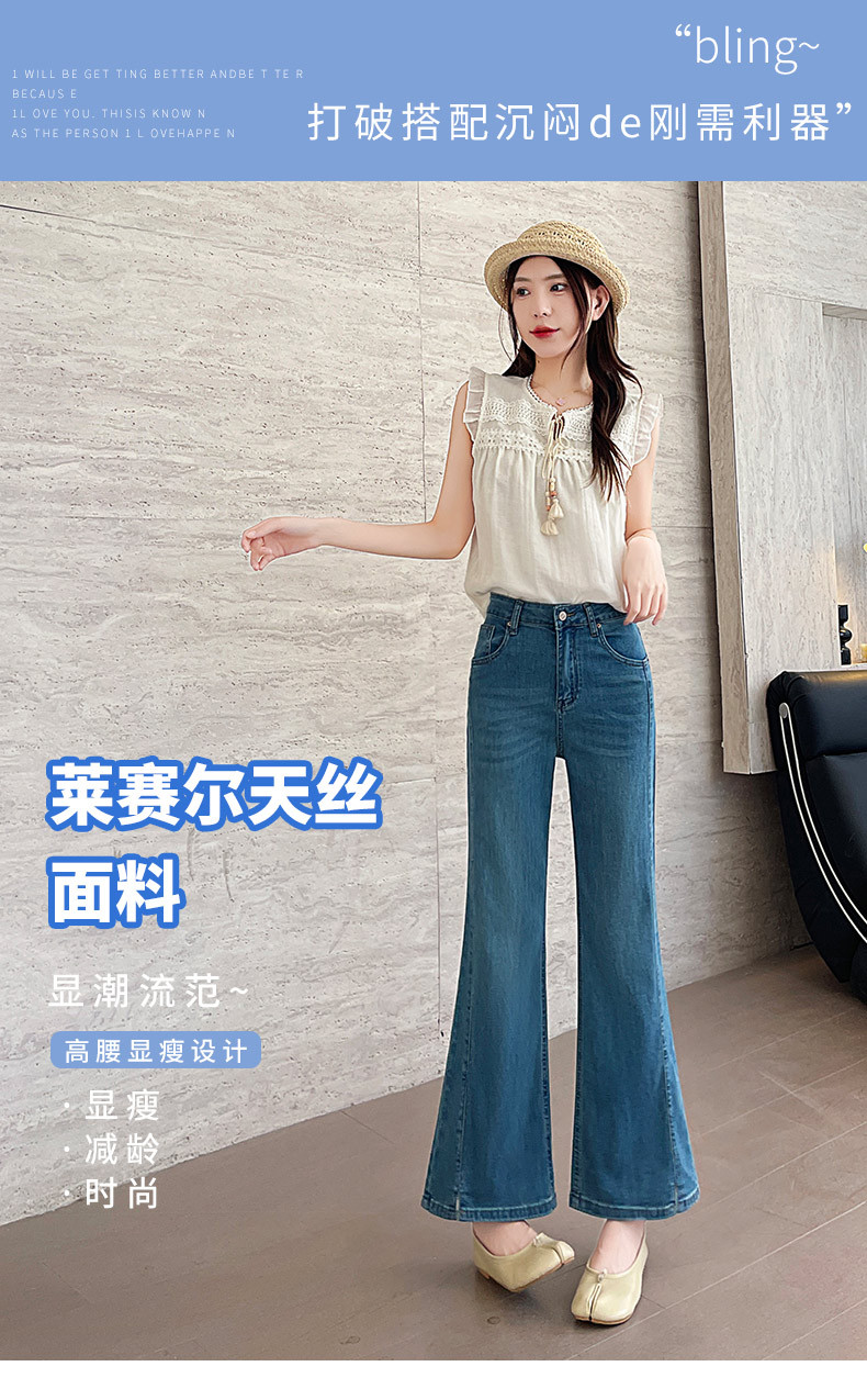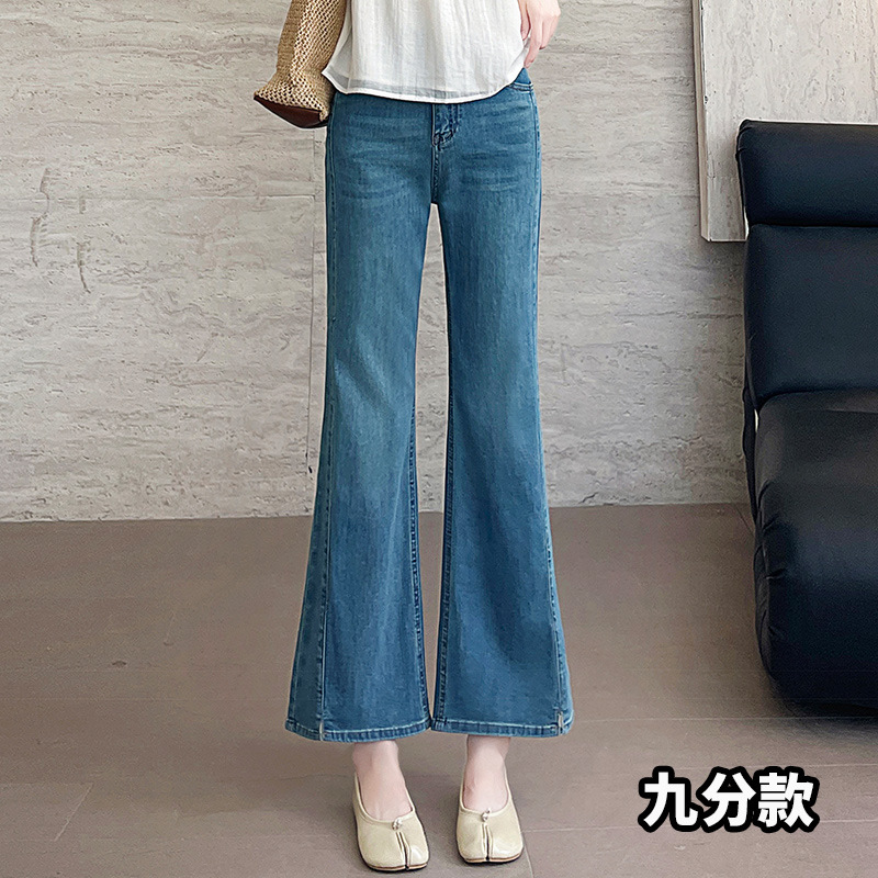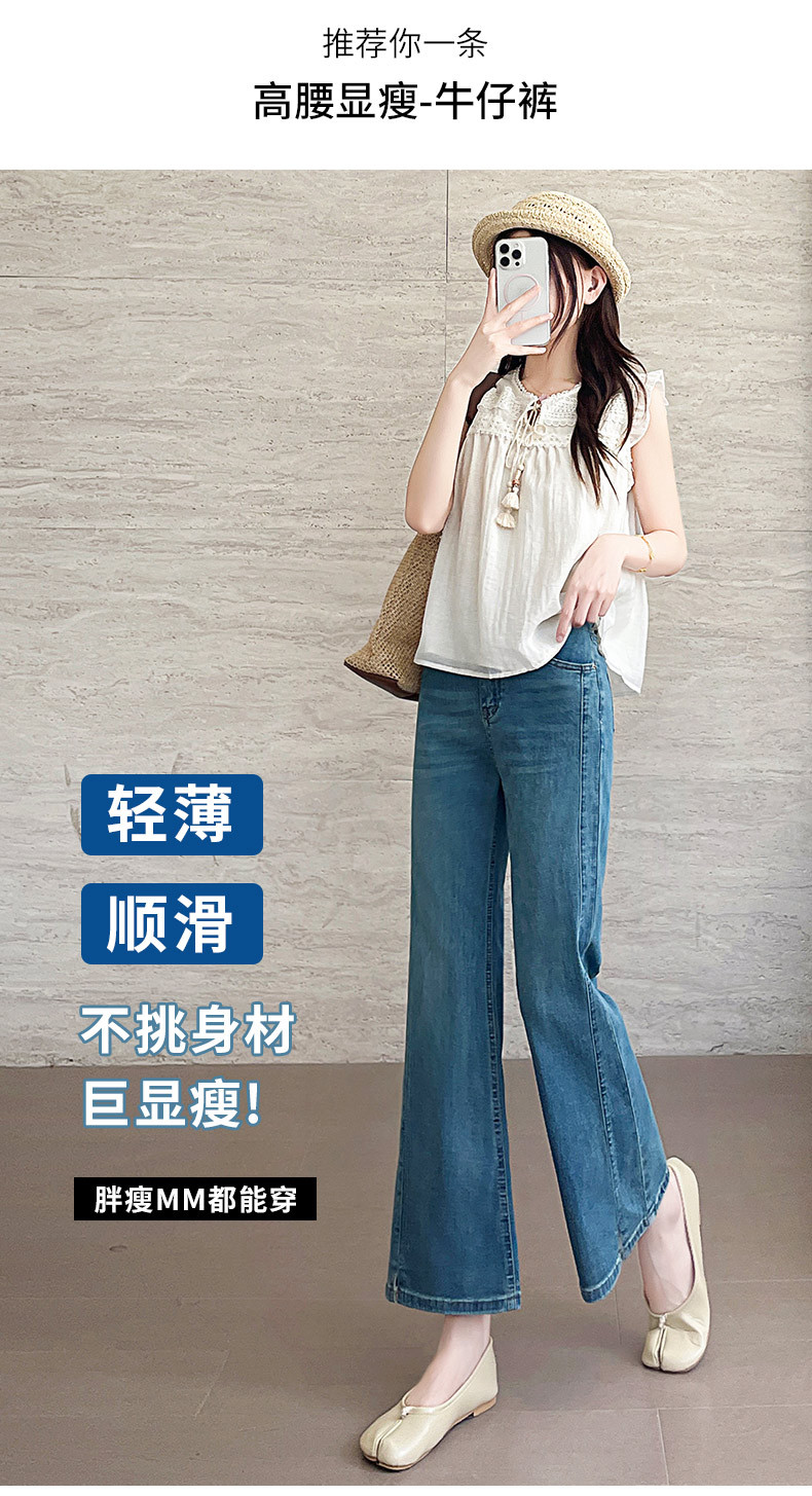 여성용 텐셀 마이크로 플레어 청바지 여름 얇은 2025 새로운 하이 웨이스트 루즈 8 점 작은 얼음 실크 플레어 바지스토어 가기