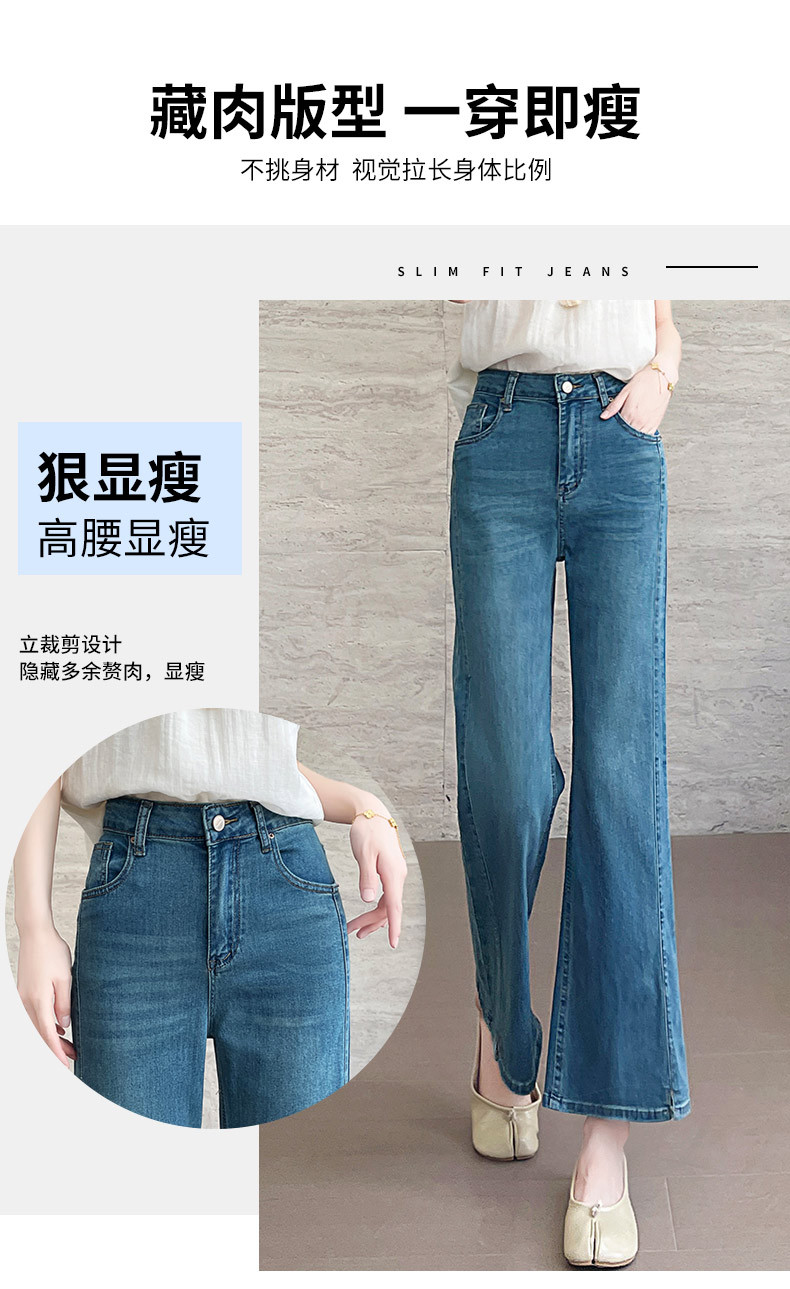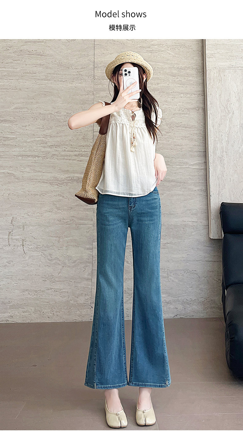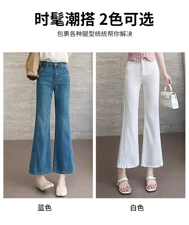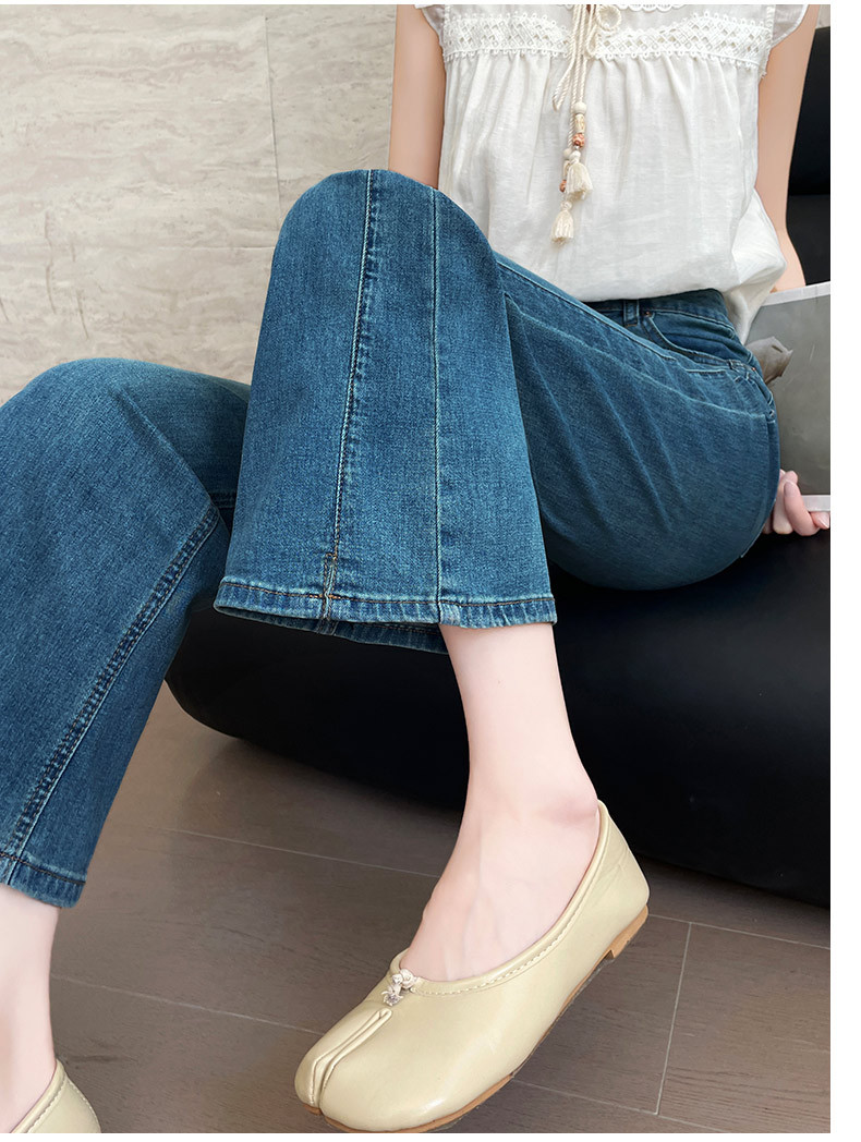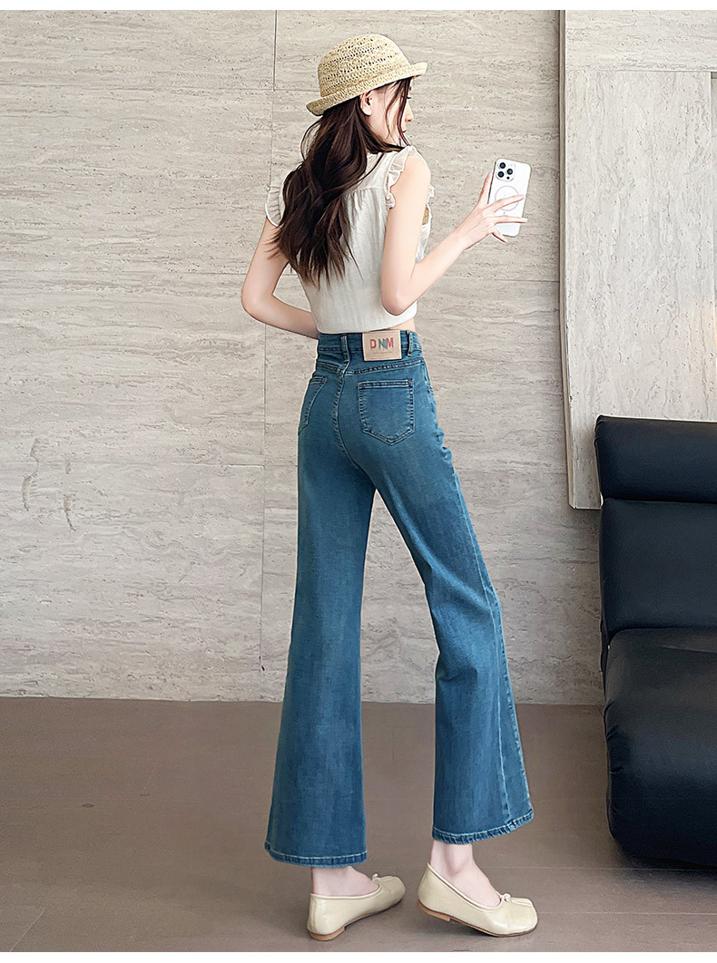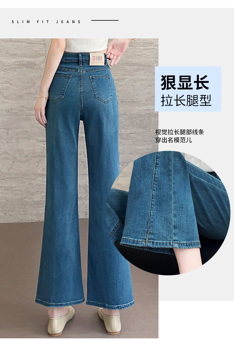 여성용 텐셀 마이크로 플레어 청바지 여름 얇은 2025 새로운 하이 웨이스트 루즈 8 점 작은 얼음 실크 플레어 바지스토어 가기