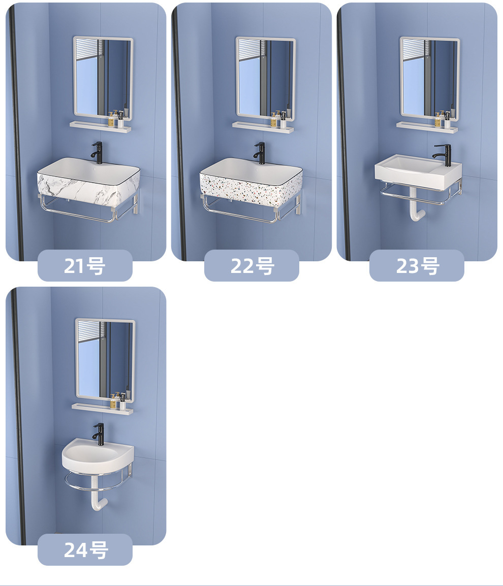 간단한 세면대 캐비닛 조합 벽걸이 형 미니 세면대 작은 아파트 욕실 세면대 화장실 발코니 세라믹