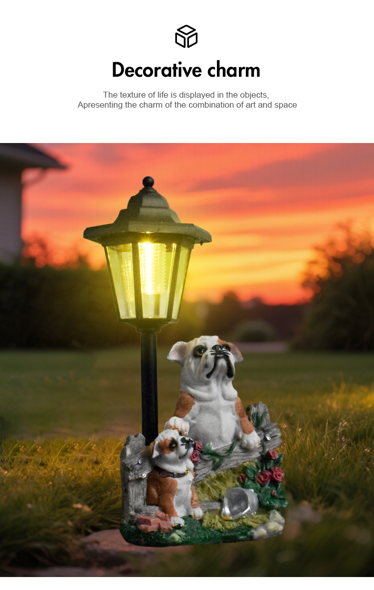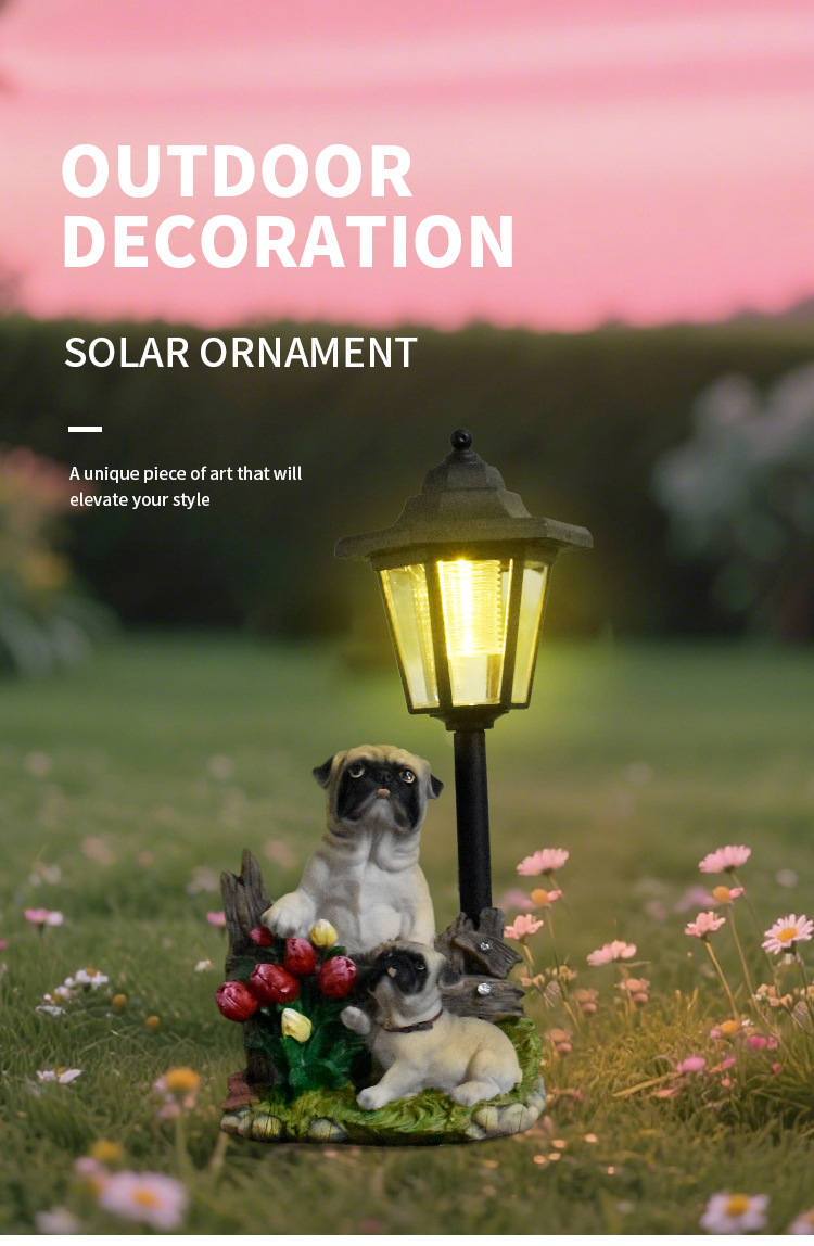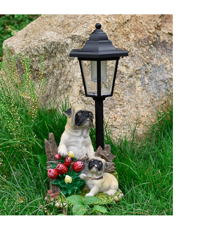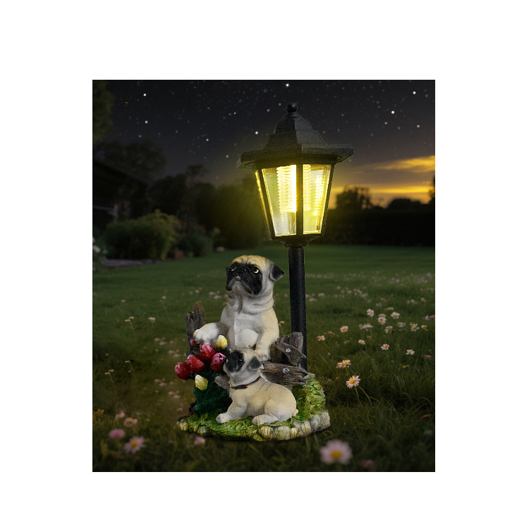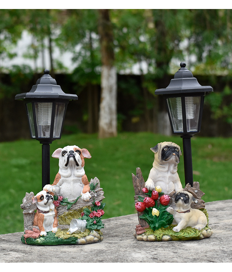 국경 간 안뜰 목가적 인 개 야외 태양 램프 동상 장식품 동물 조각 정원 경로 빌라 장식 램프