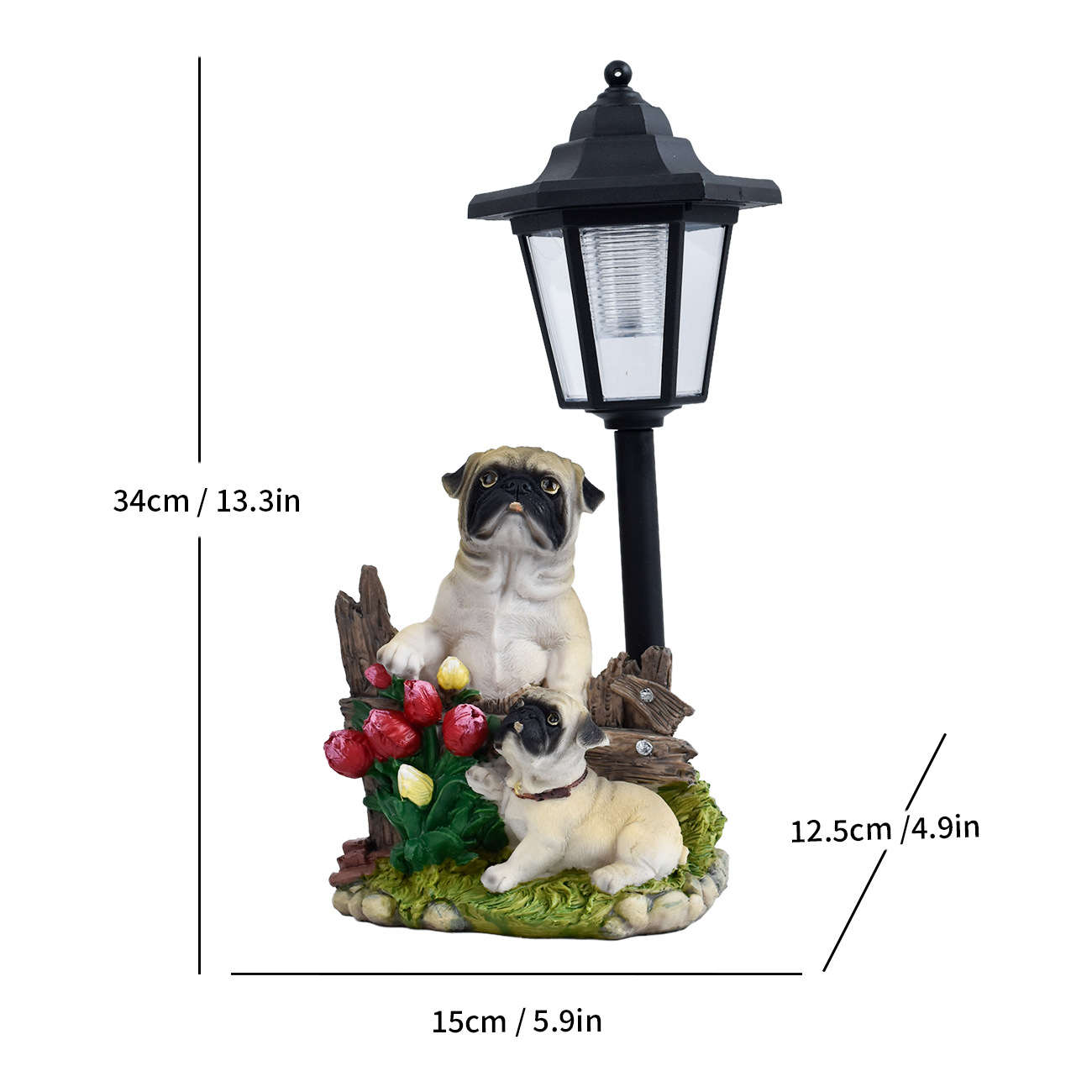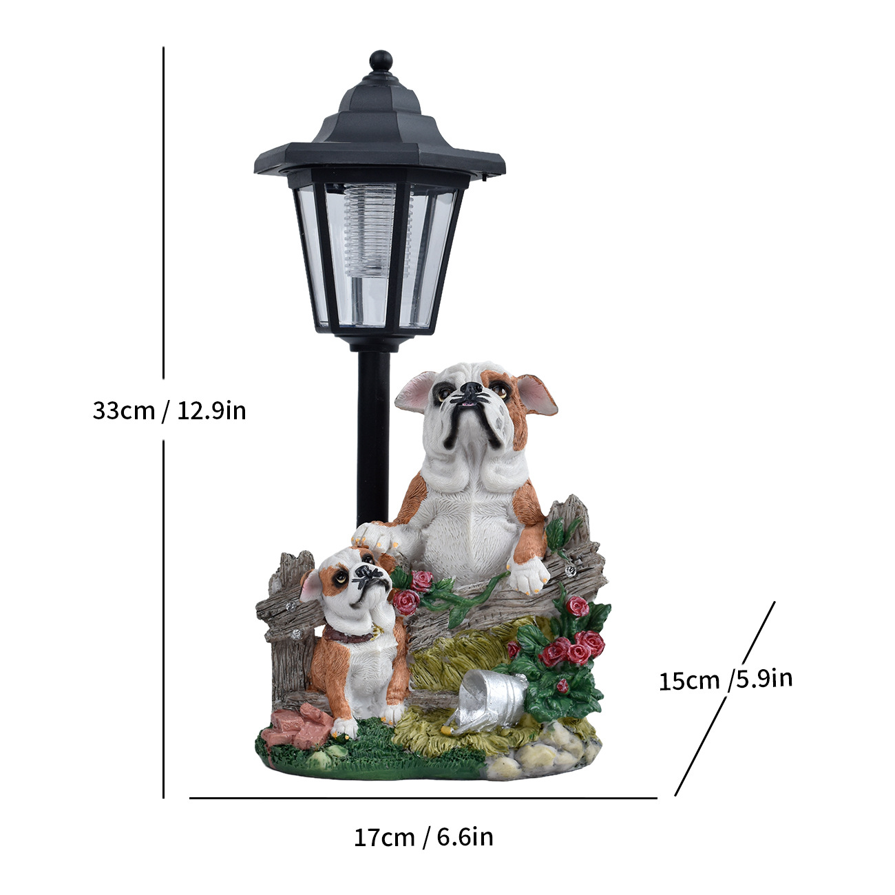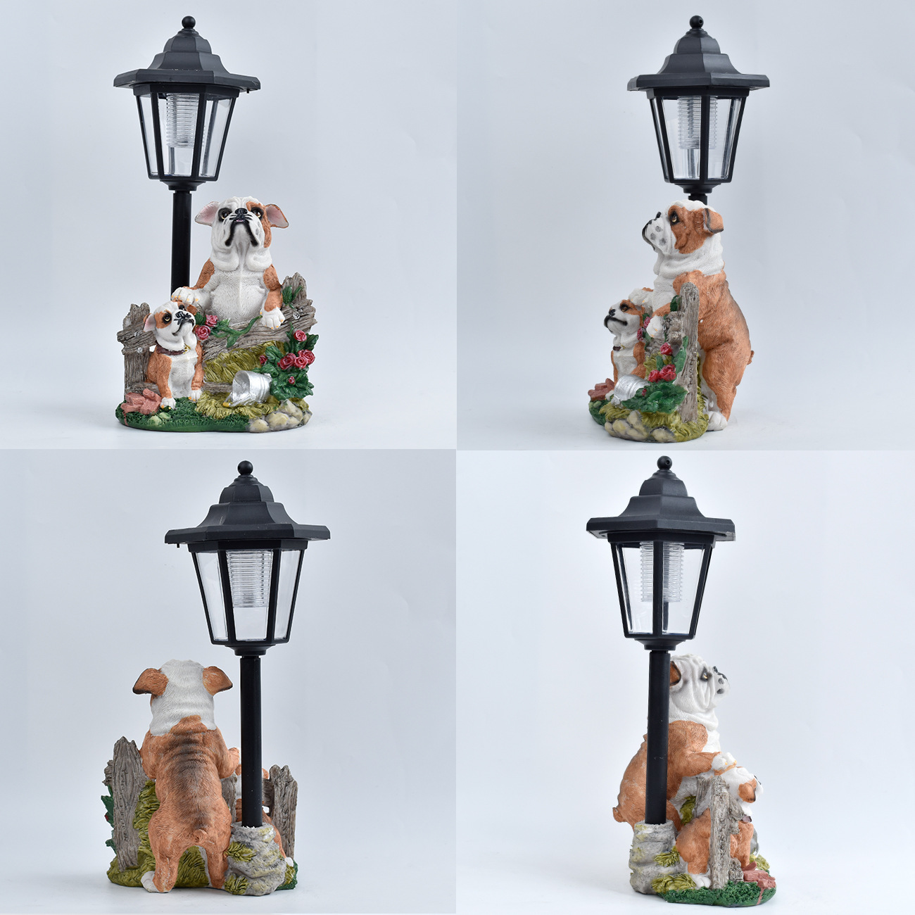 국경 간 안뜰 목가적 인 개 야외 태양 램프 동상 장식품 동물 조각 정원 경로 빌라 장식 램프