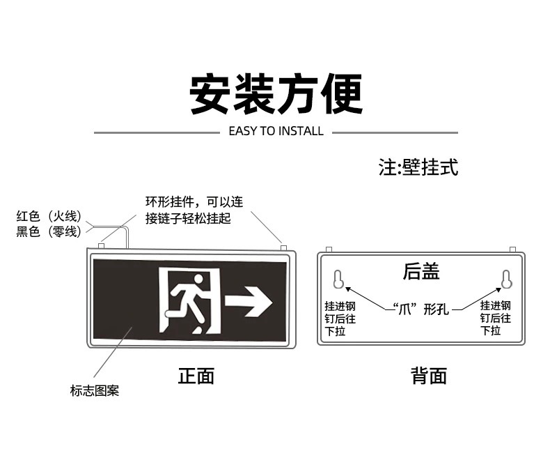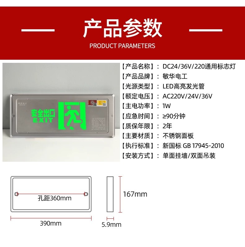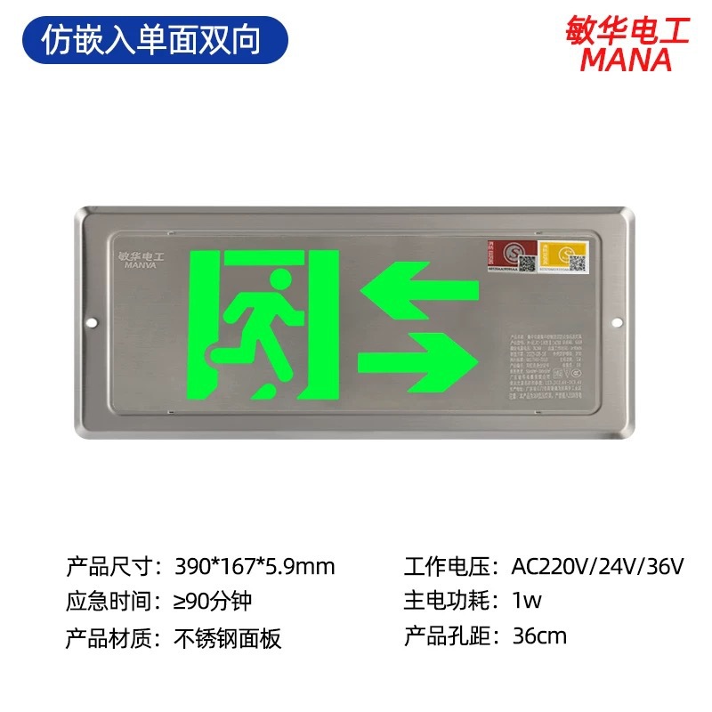 민화 범용형 매립형 화재 대피 표지등 광범위 전압 비상 안전 출구 표시등 LED 램프