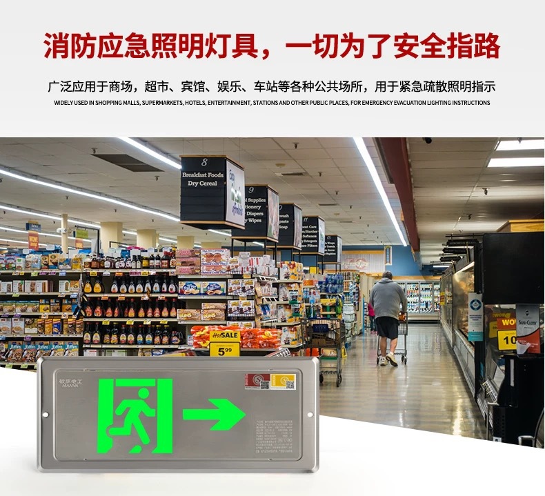민화 범용형 매립형 화재 대피 표지등 광범위 전압 비상 안전 출구 표시등 LED 램프스토어 가기