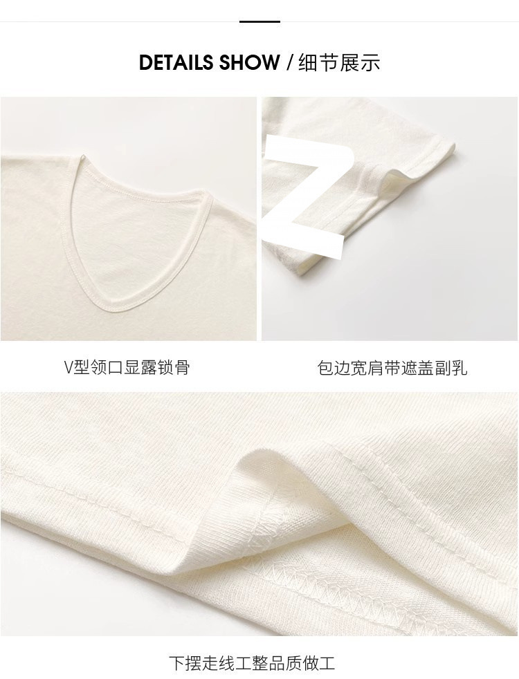 여성용 흰색 반팔 티셔츠 v 넥 2025 여름 새로운 느슨한 대나무 반팔 탑 아이스 실크 얇은 스트레이트 헤어스토어 가기