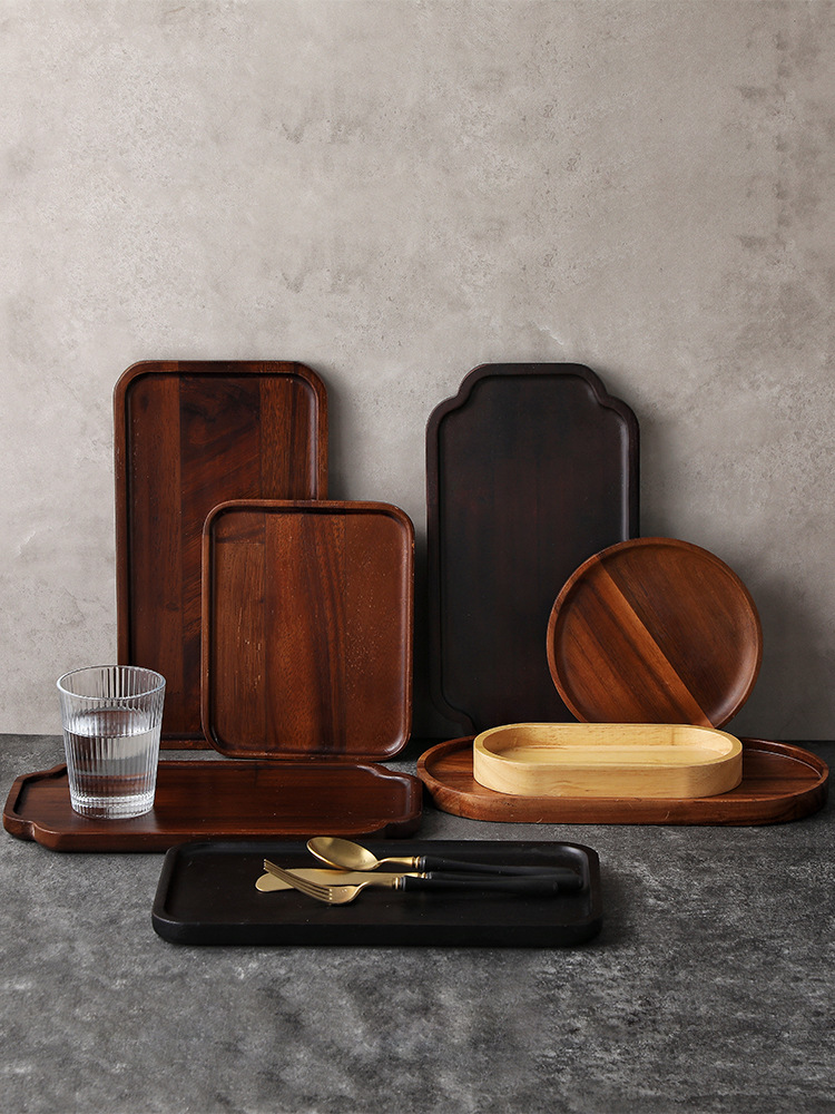새로운 중국 스타일의 차 트레이 아카시아 나무 단단한 나무 트레이 호두 나무 디너 플레이트 스낵 플레이트 차 세트 보관 골동품 바베큐스토어 가기
