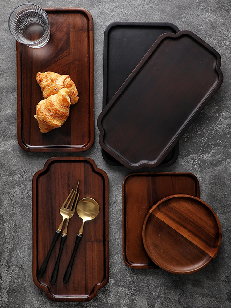 새로운 중국 스타일의 차 트레이 아카시아 나무 단단한 나무 트레이 호두 나무 디너 플레이트 스낵 플레이트 차 세트 보관 골동품 바베큐