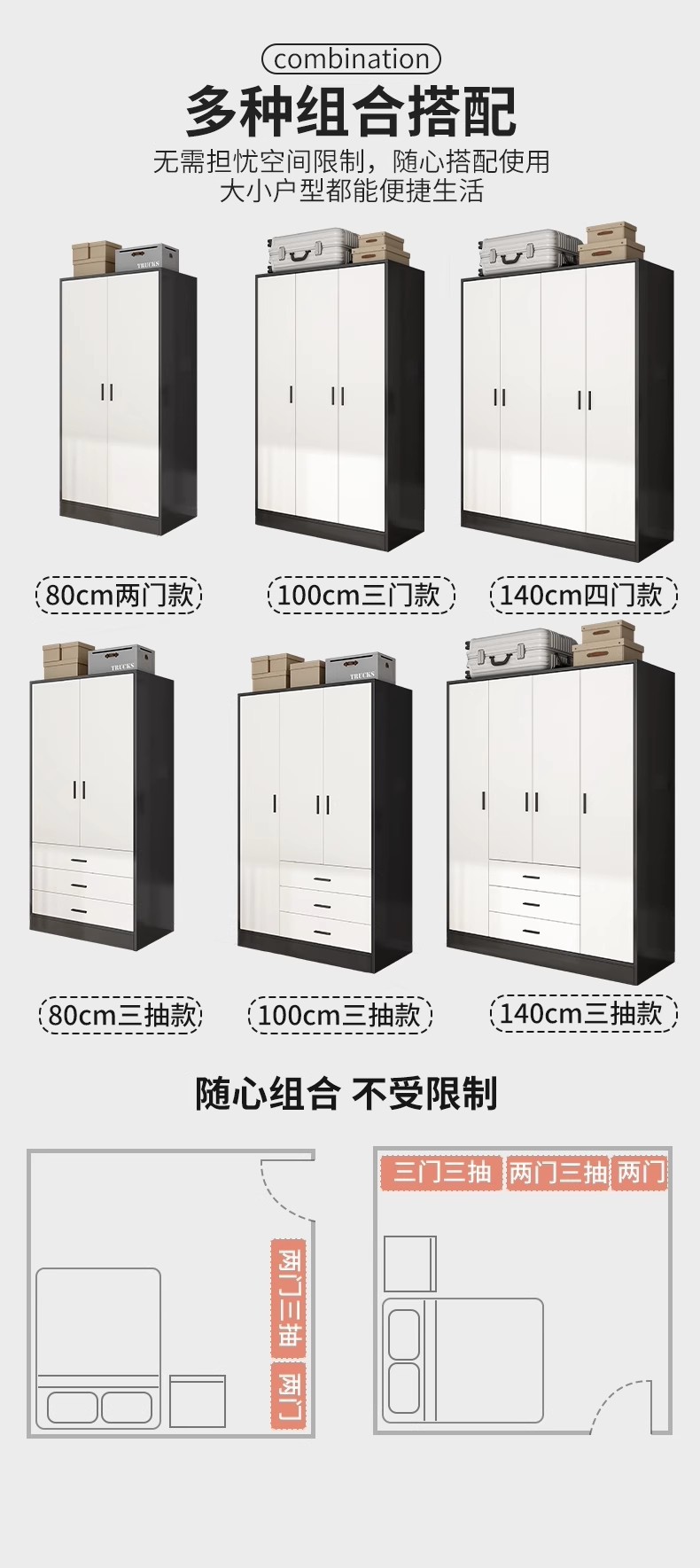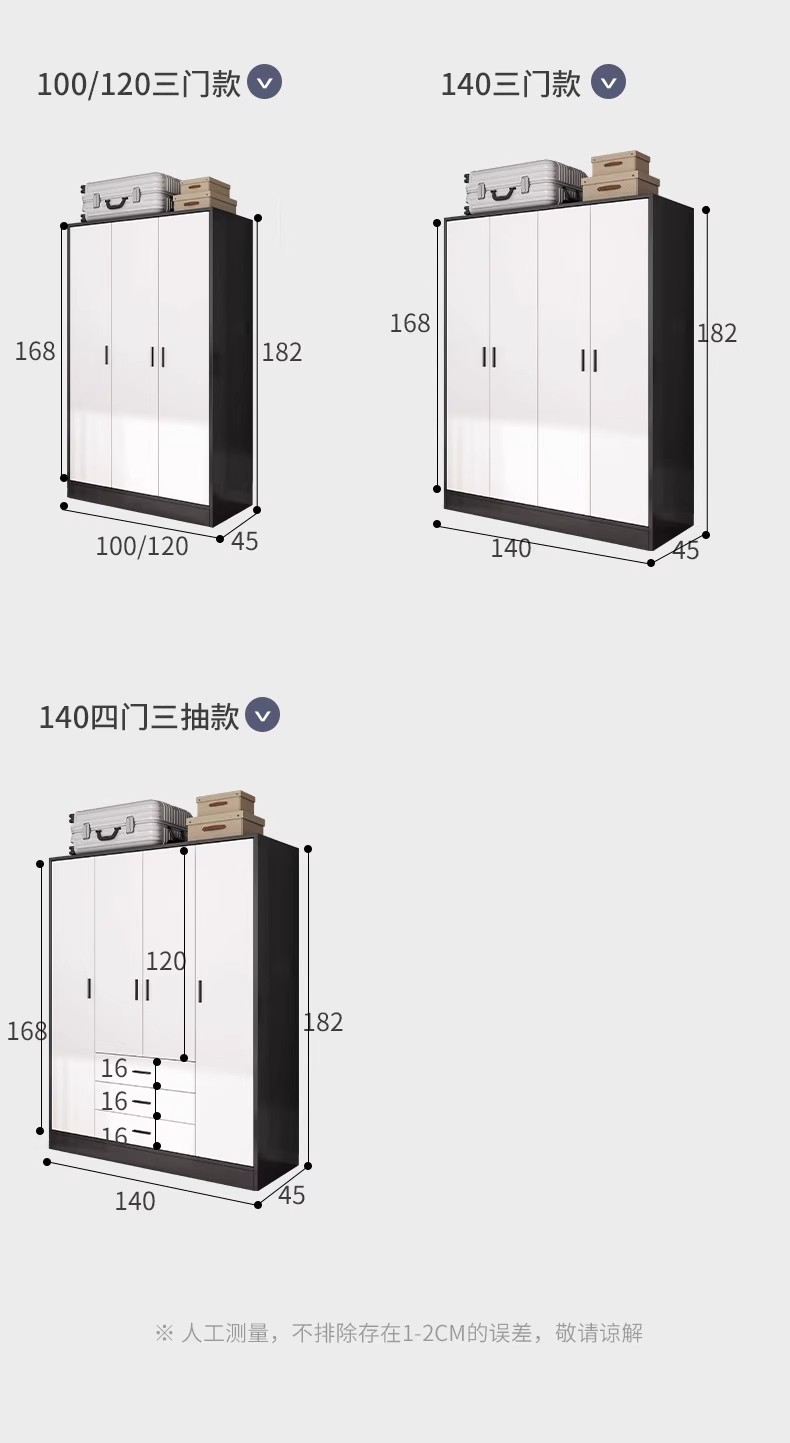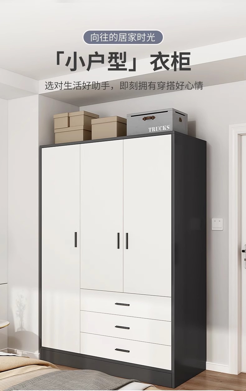 3도어 옷장 임대 주택 가정용 침실 보관 캐비닛 경제적 인 보관 캐비닛 간단한 현대 작은 아파트 옷장스토어 가기