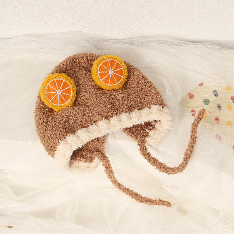 달콤한 스타일 플러시 귀여운 과일 어린이 귀 보호 모자 플러스 벨벳 두꺼운 소년과 소녀 아기 모자 도매 국경 간 모자스토어 가기