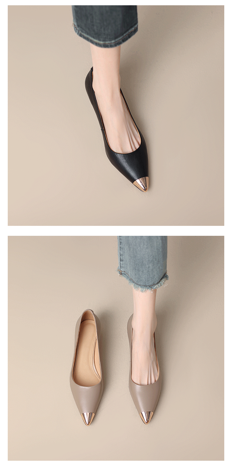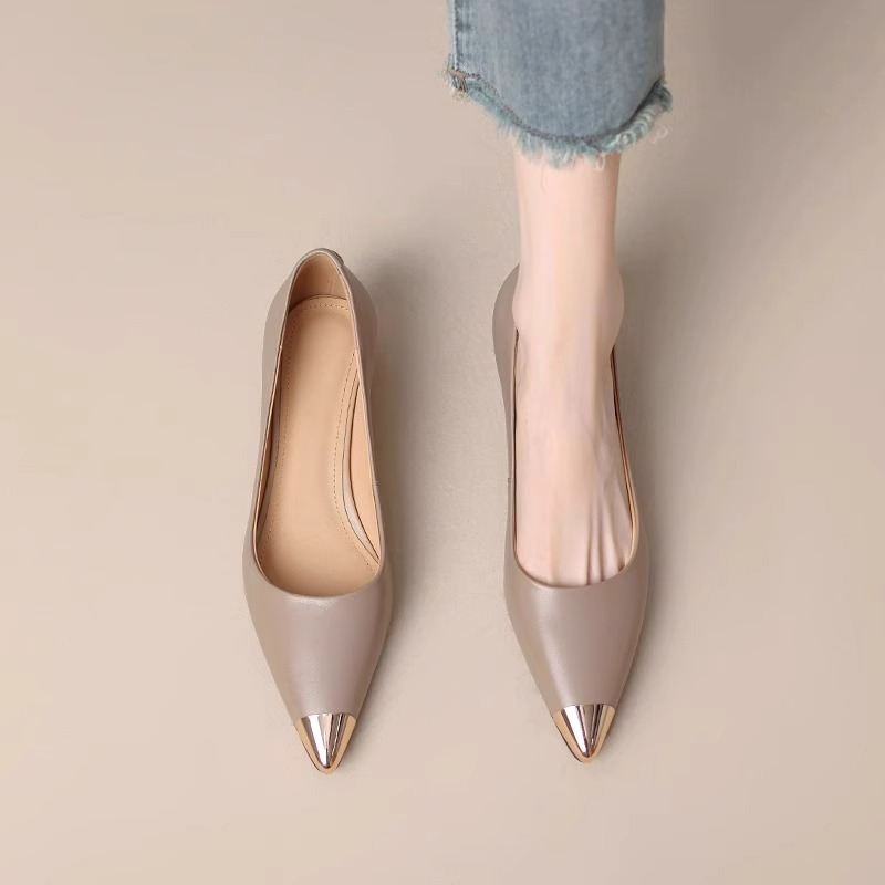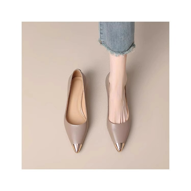재고 있음~ 양가죽 프렌치 스타일 뾰족코 메탈 샌들 여성용 2025 여름 신상 굽이 두꺼운 스커트와 어울리는 이브닝 슈즈