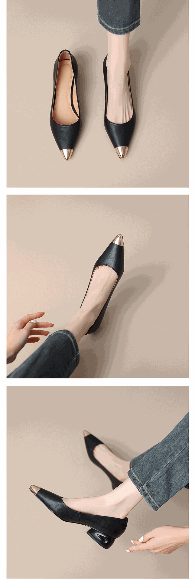 재고 있음~ 양가죽 프렌치 스타일 뾰족코 메탈 샌들 여성용 2025 여름 신상 굽이 두꺼운 스커트와 어울리는 이브닝 슈즈스토어 가기