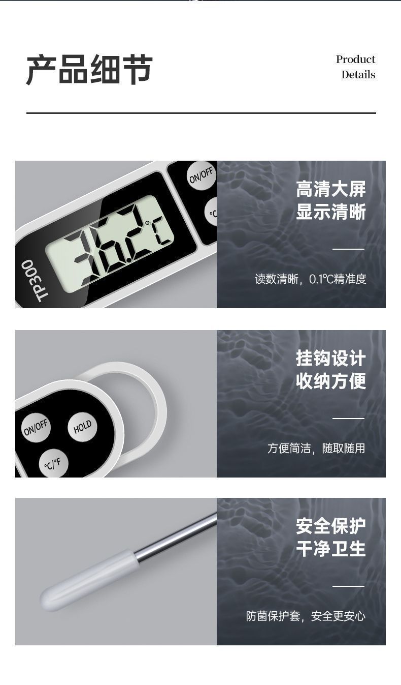 식품 온도계 주방 상업용 튀김 커피 온도계 물 온도 우유 온도 고정밀 프로브 유형 오일 온도계