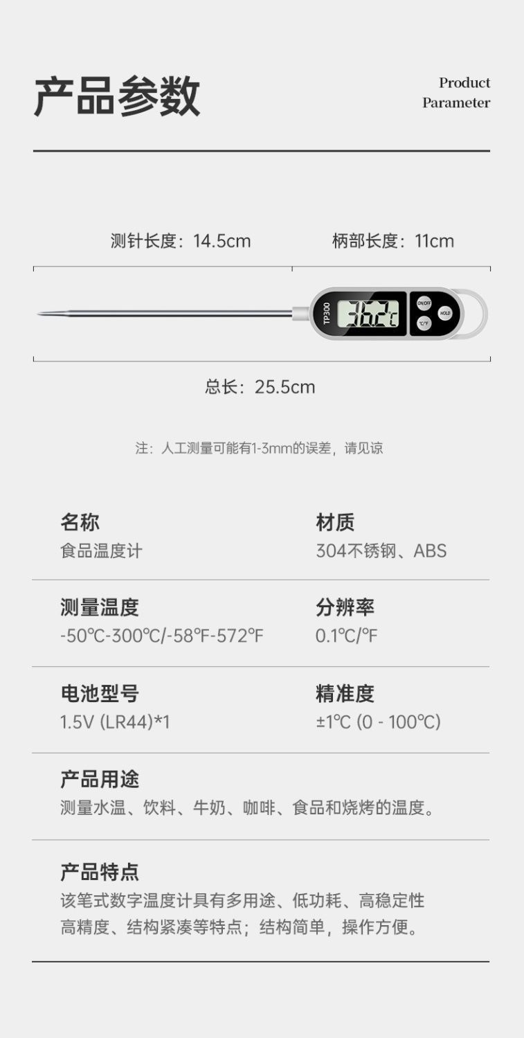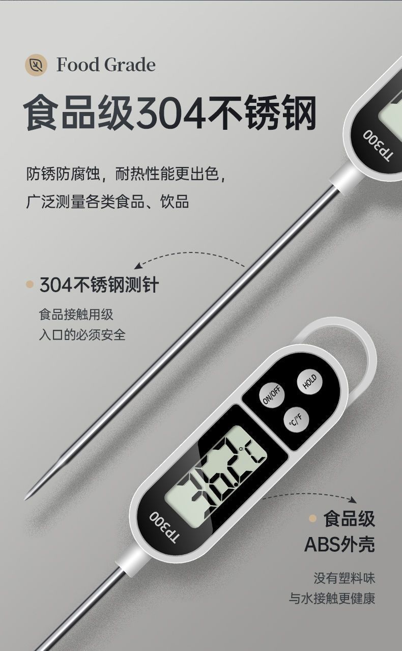 식품 온도계 주방 상업용 튀김 커피 온도계 물 온도 우유 온도 고정밀 프로브 유형 오일 온도계스토어 가기