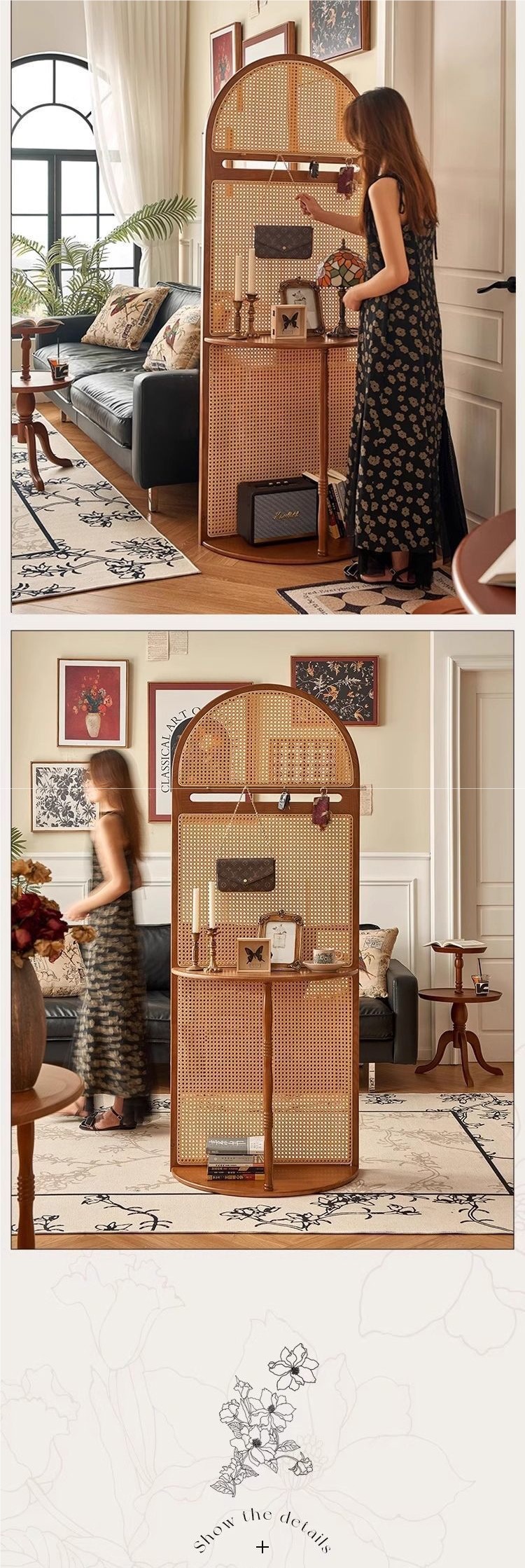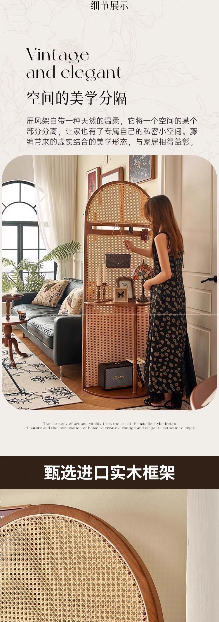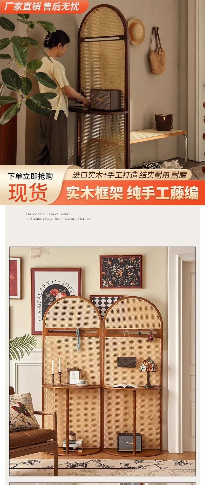프랑스 복고풍 단단한 나무 등나무 스크린 파티션 거실 입구 문 차단 현관 캐비닛 현대적인 간단한 스토리지 랙