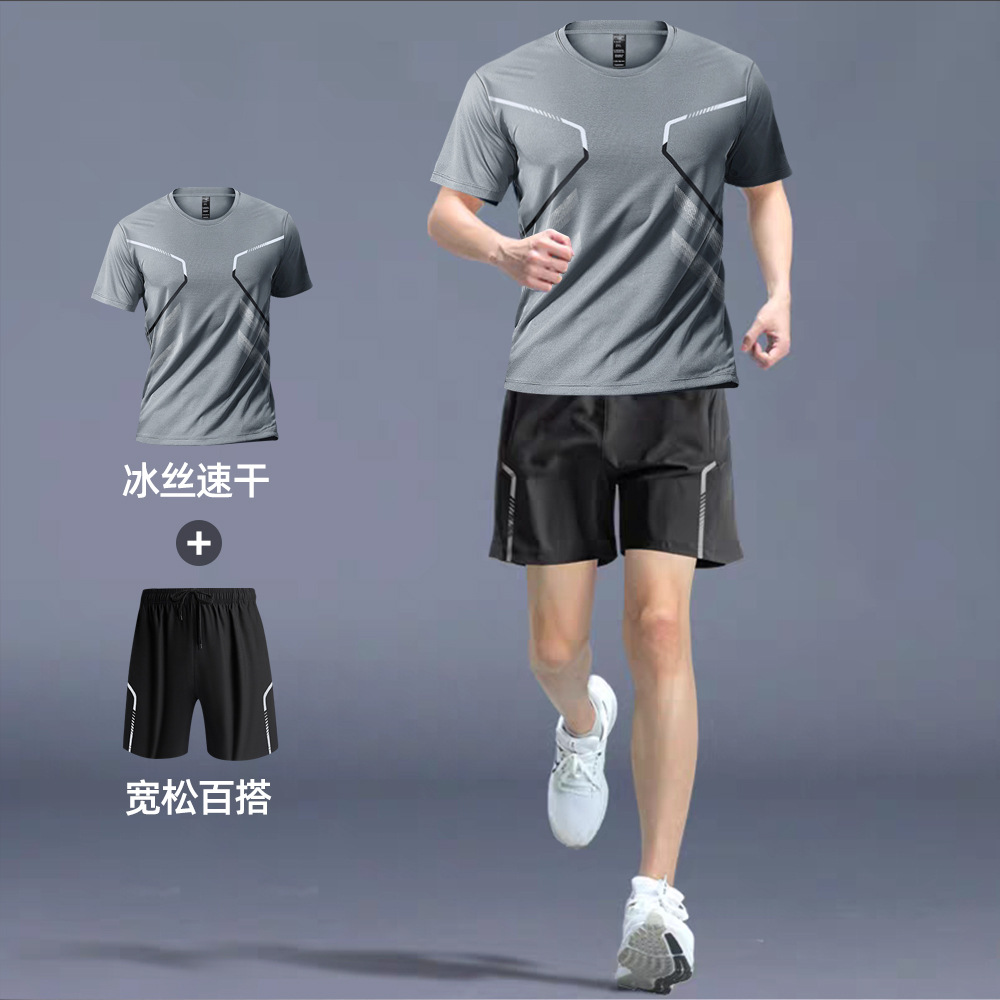 빠른 건조 티셔츠 남자 스포츠 정장 느슨한 얼음 실크 러닝 슈트 커플 여름 야외 피트니스 슈트 반팔 슈트스토어 가기