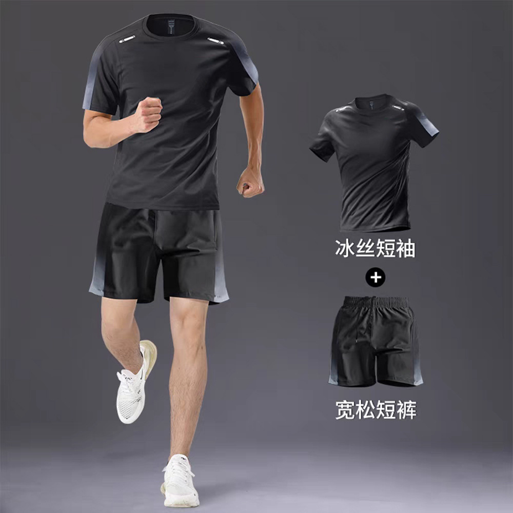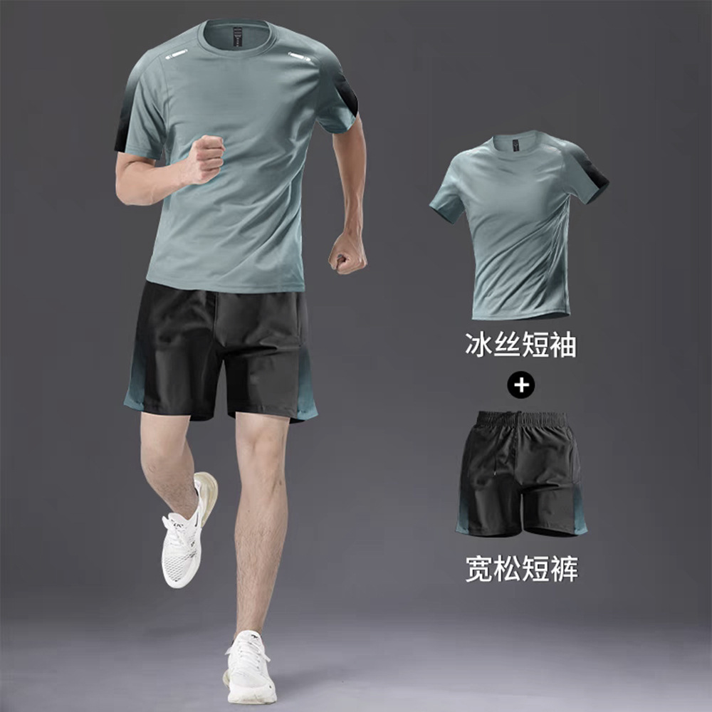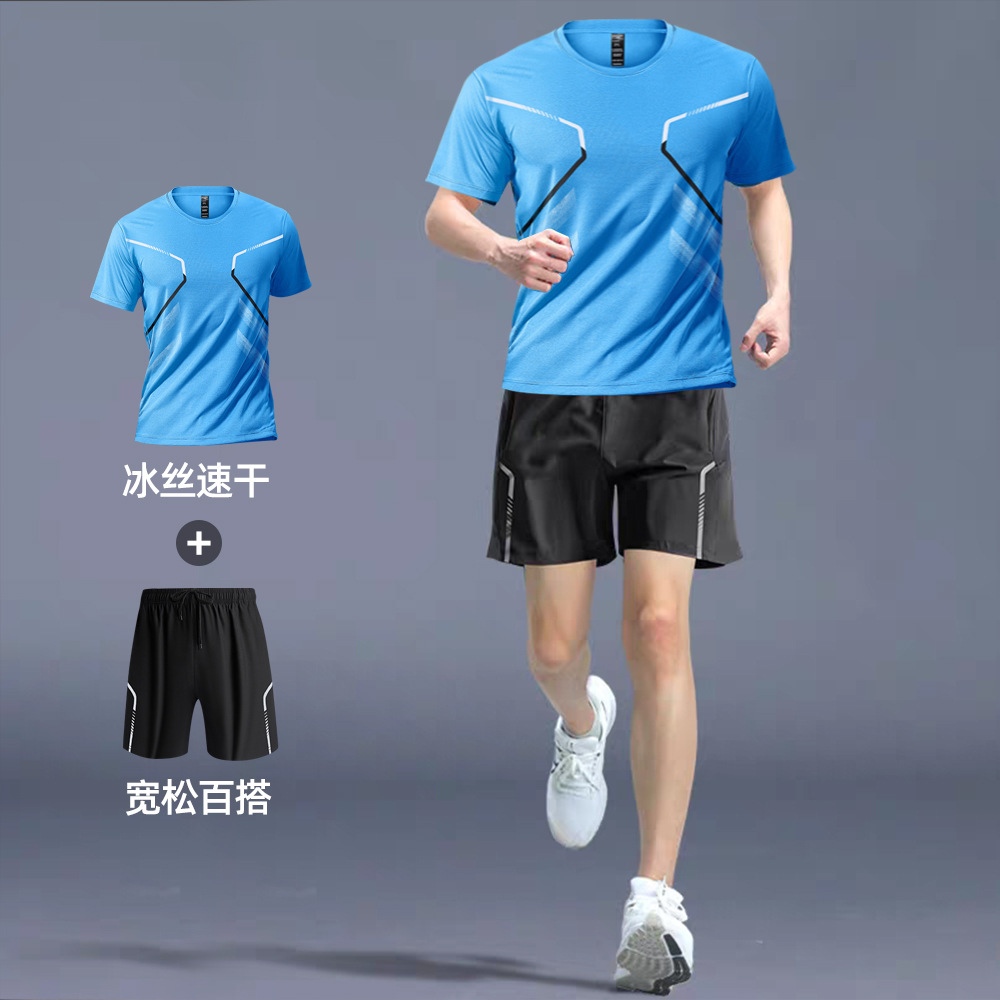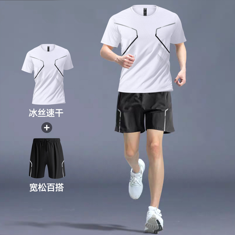 빠른 건조 티셔츠 남자 스포츠 정장 느슨한 얼음 실크 러닝 슈트 커플 여름 야외 피트니스 슈트 반팔 슈트