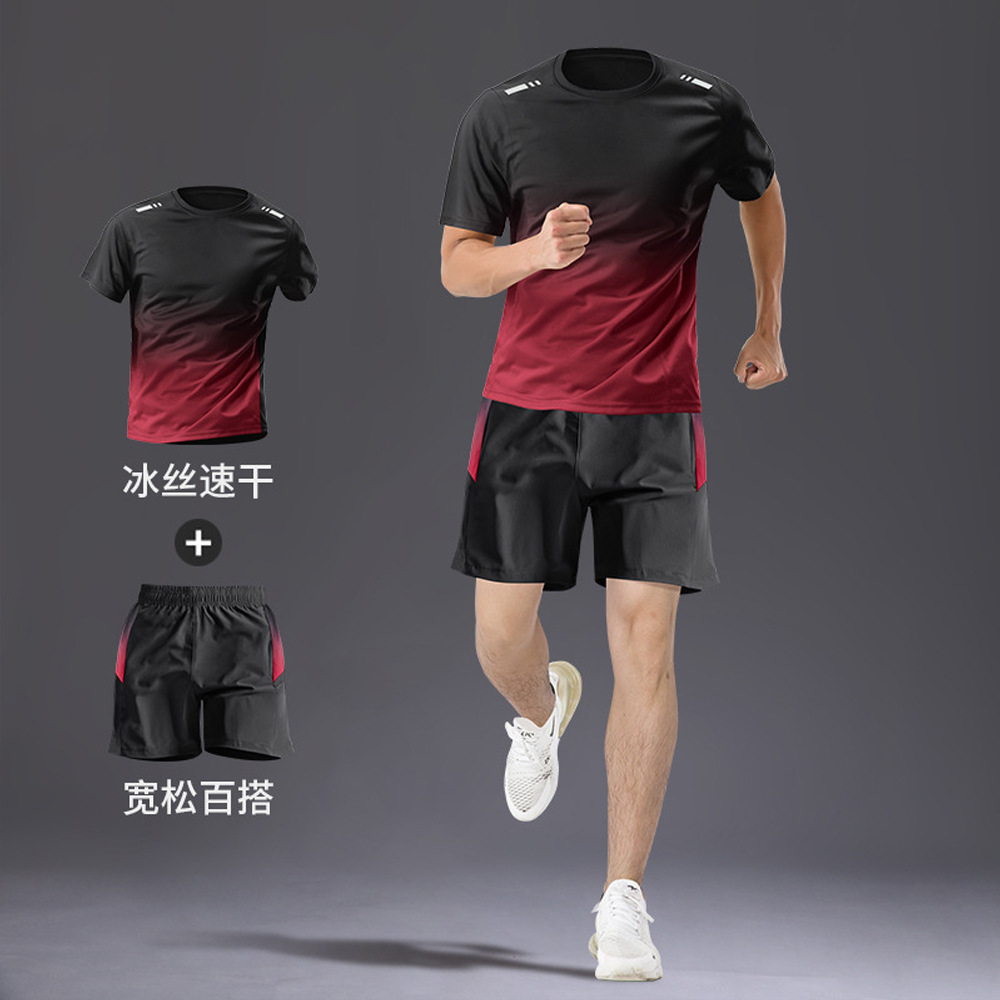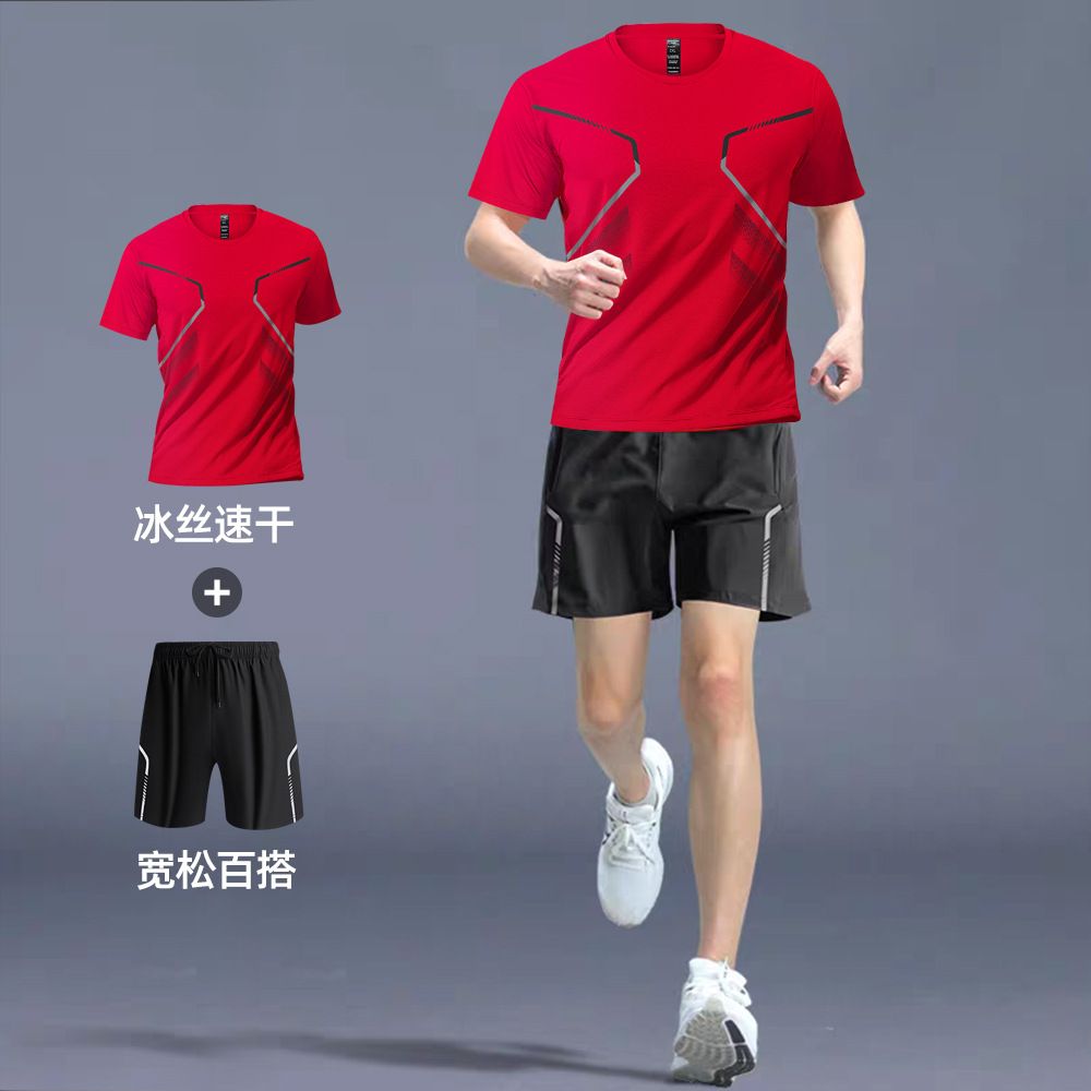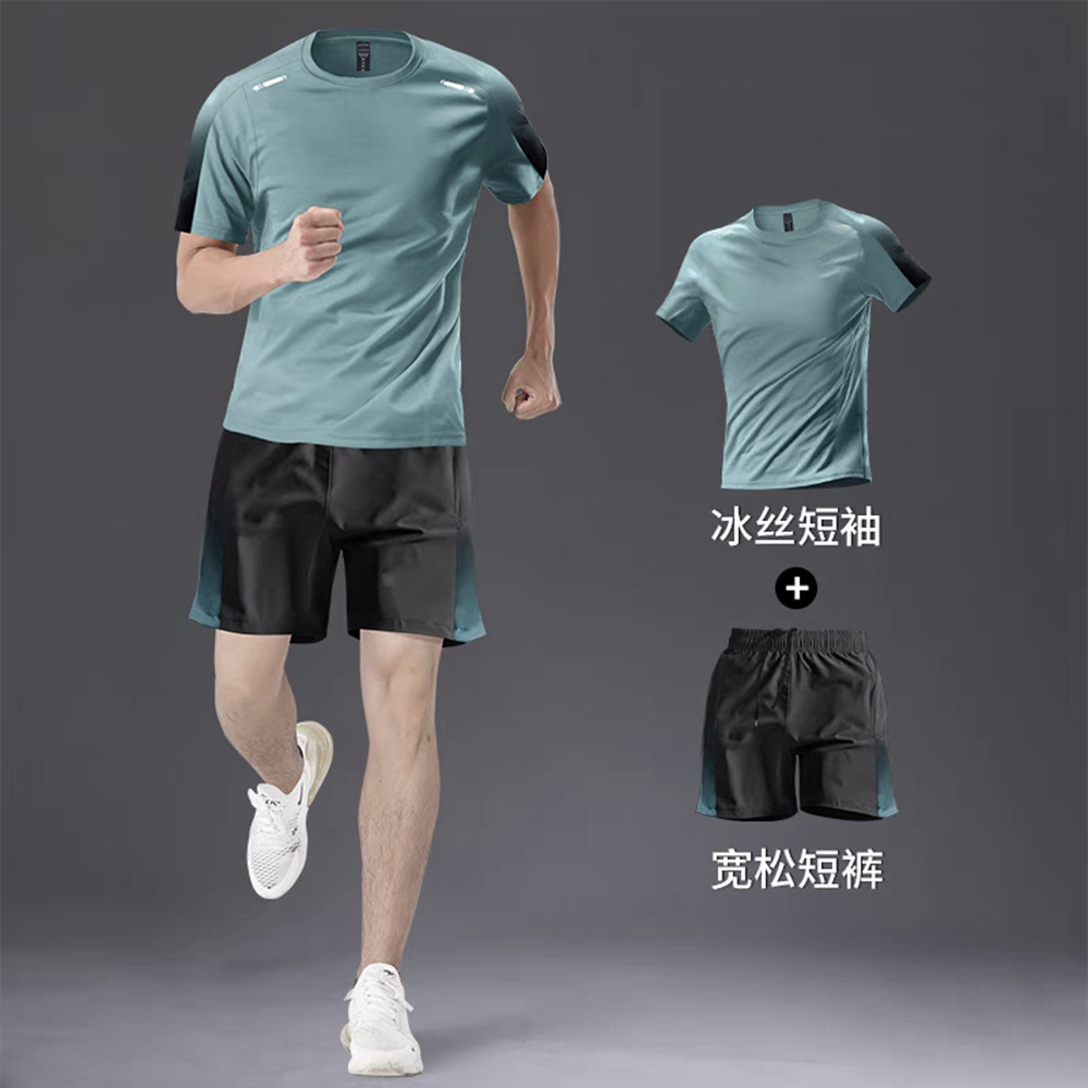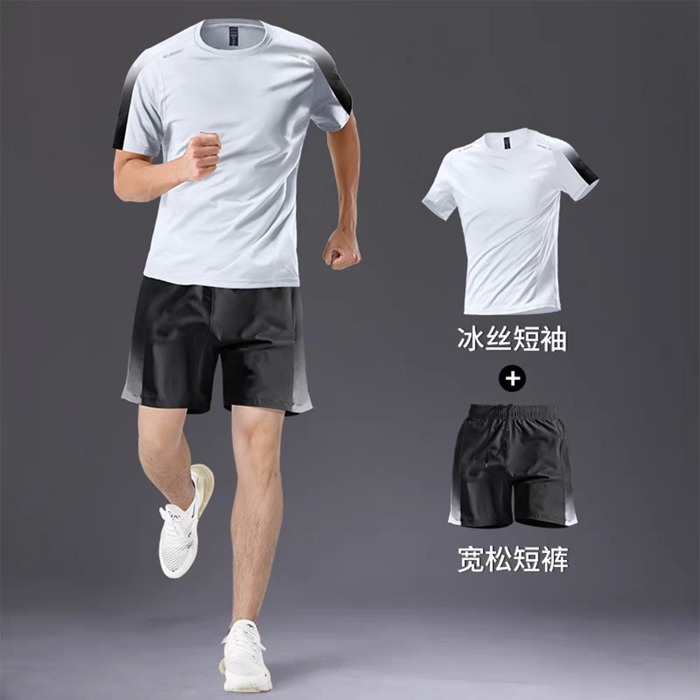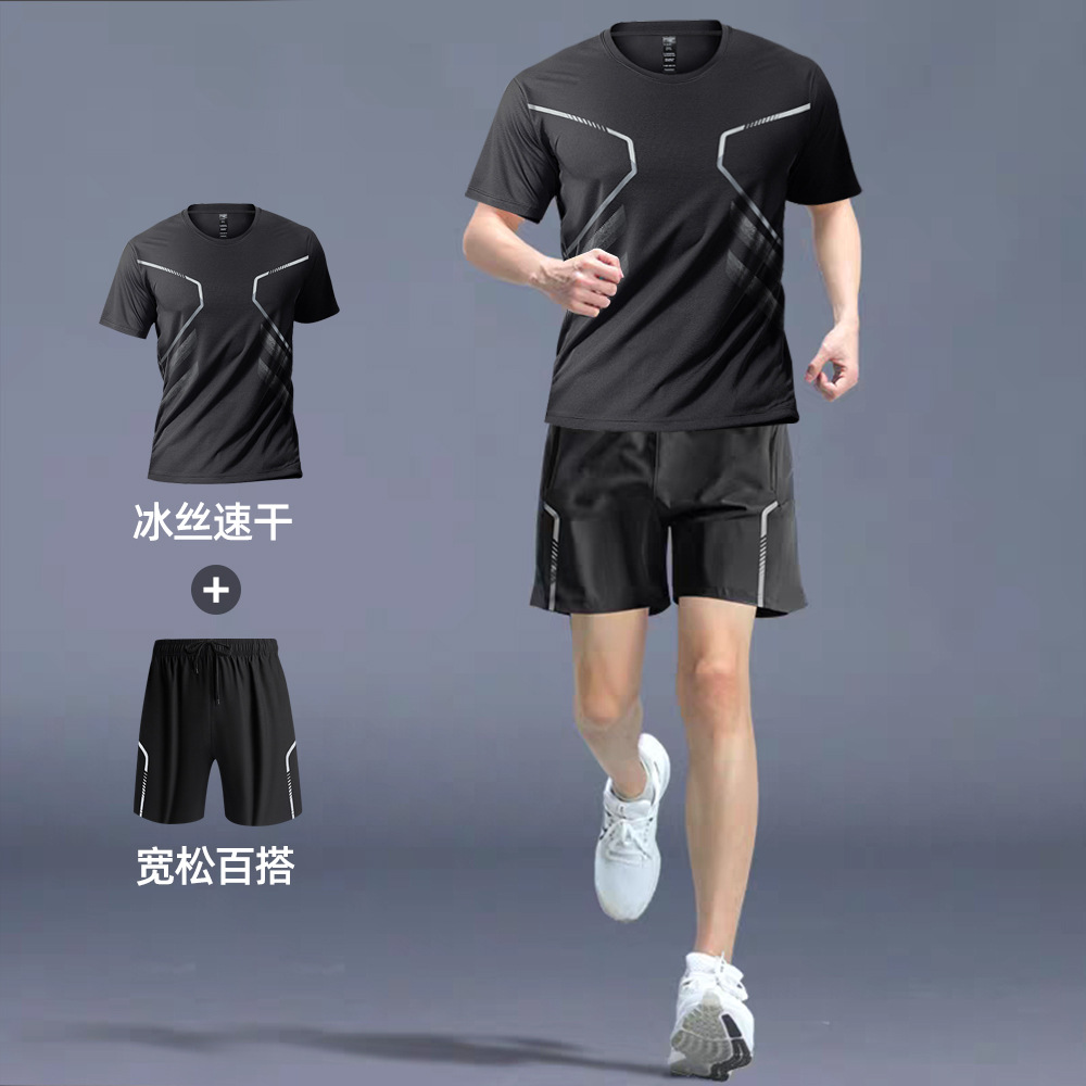 빠른 건조 티셔츠 남자 스포츠 정장 느슨한 얼음 실크 러닝 슈트 커플 여름 야외 피트니스 슈트 반팔 슈트