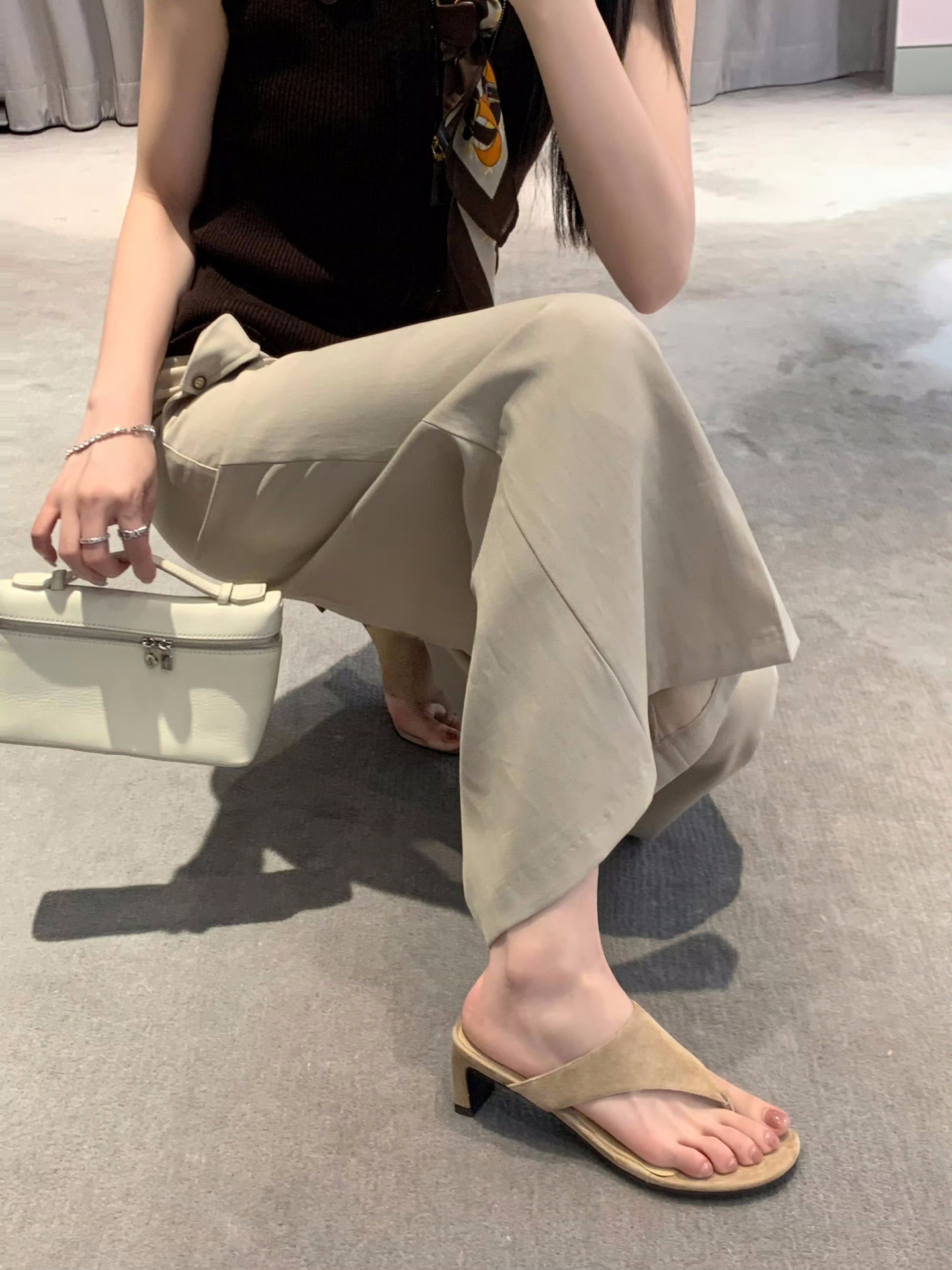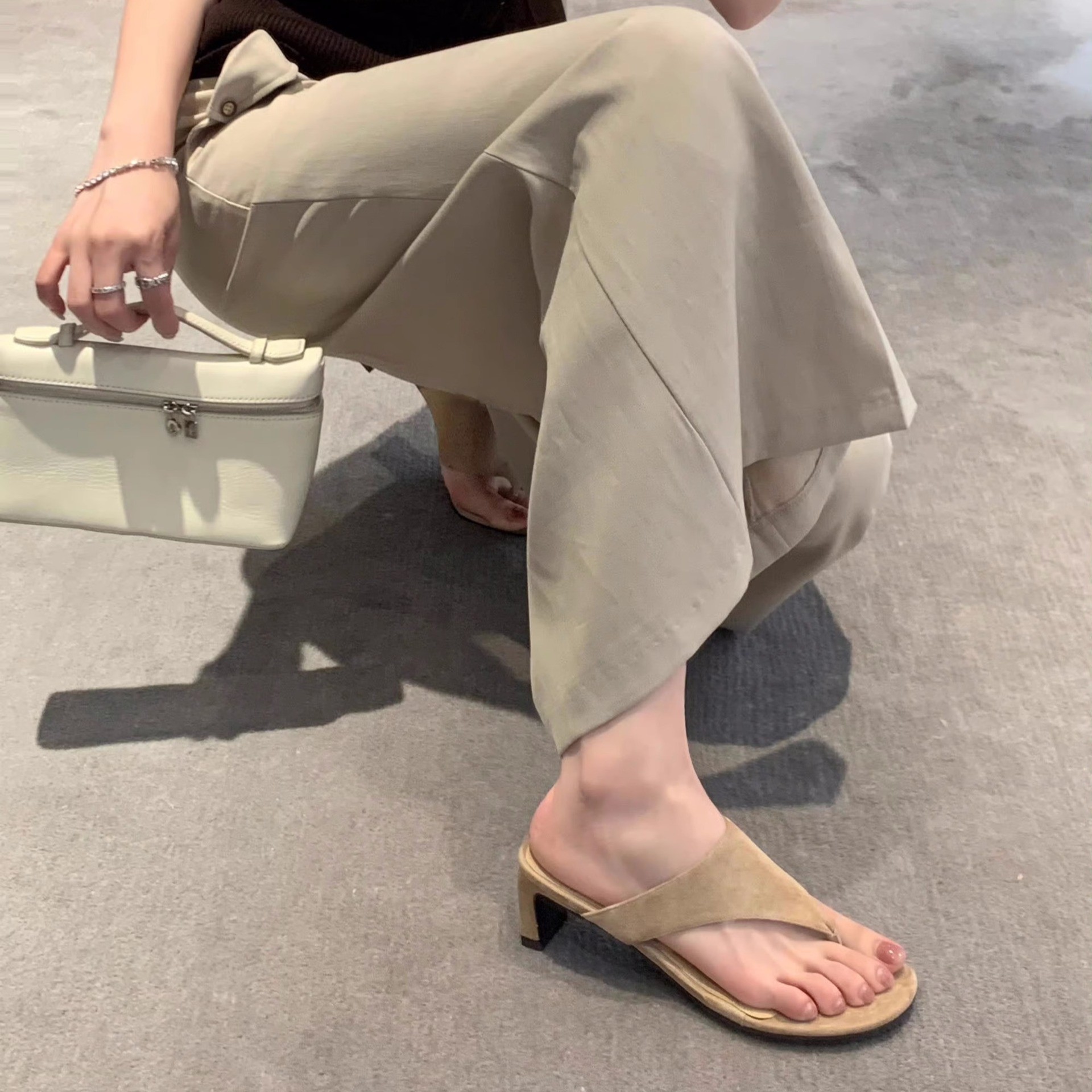 소가죽 버전~심플한 천연가죽 두꺼운 굽 하이힐 슬리퍼 여성 여름 프렌치 슬리퍼 아우터 샌들 하프 슬리퍼스토어 가기