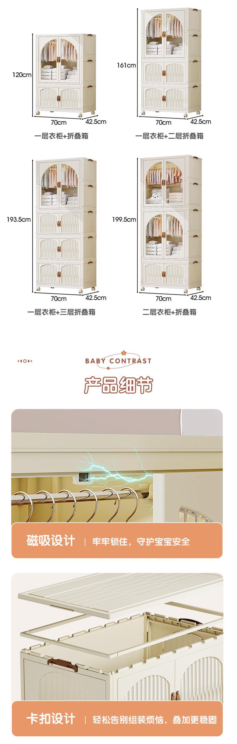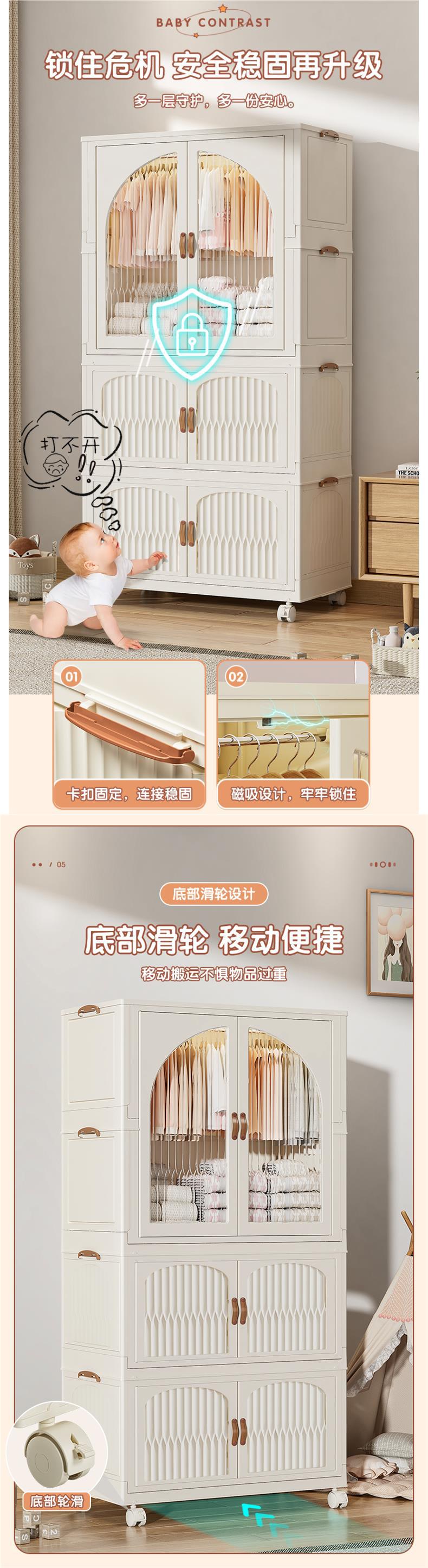 아기 옷 보관 캐비닛 설치가 필요없는 아기 옷장 어린이 옷장 다층 가정용 접이식 침실 보관 Ouyue스토어 가기