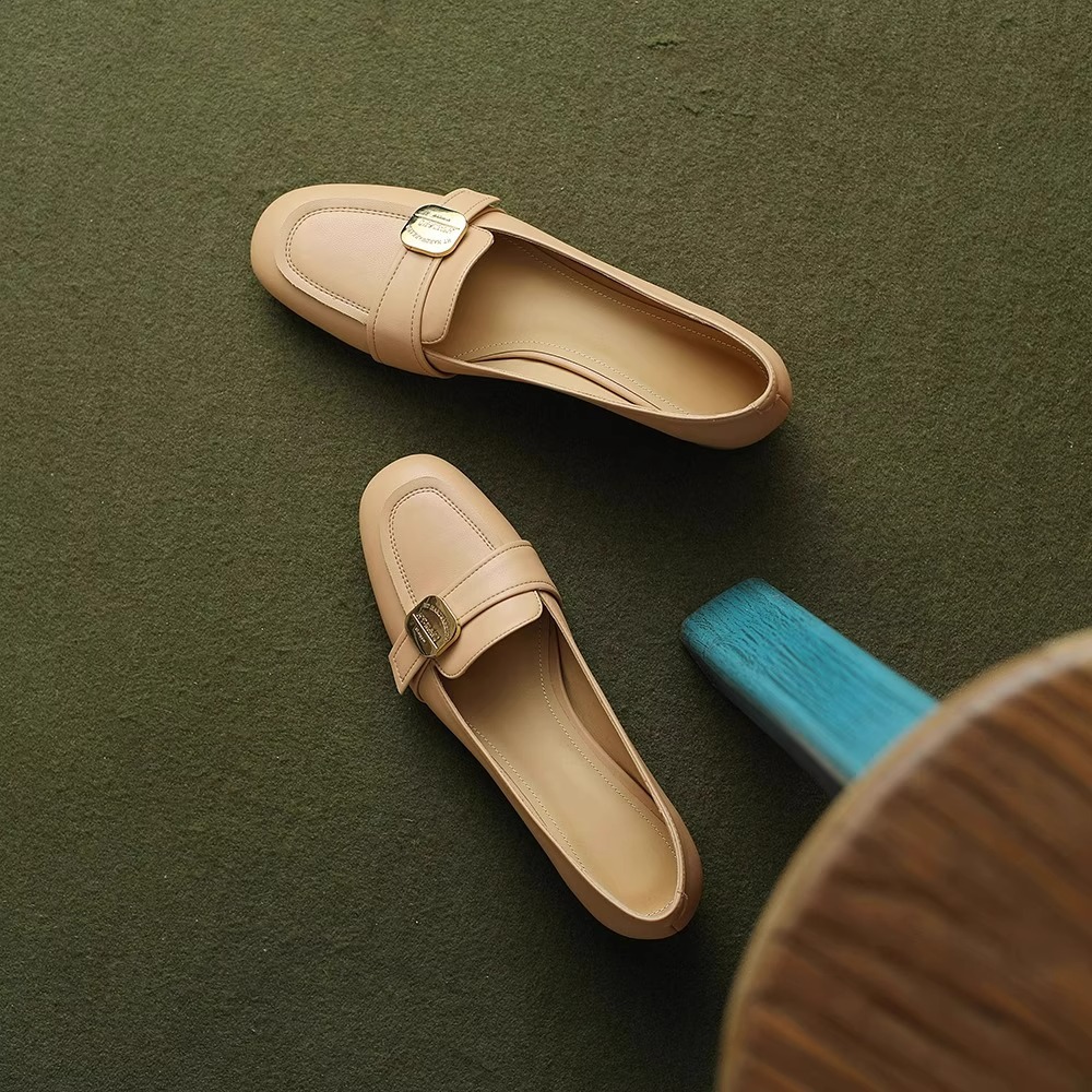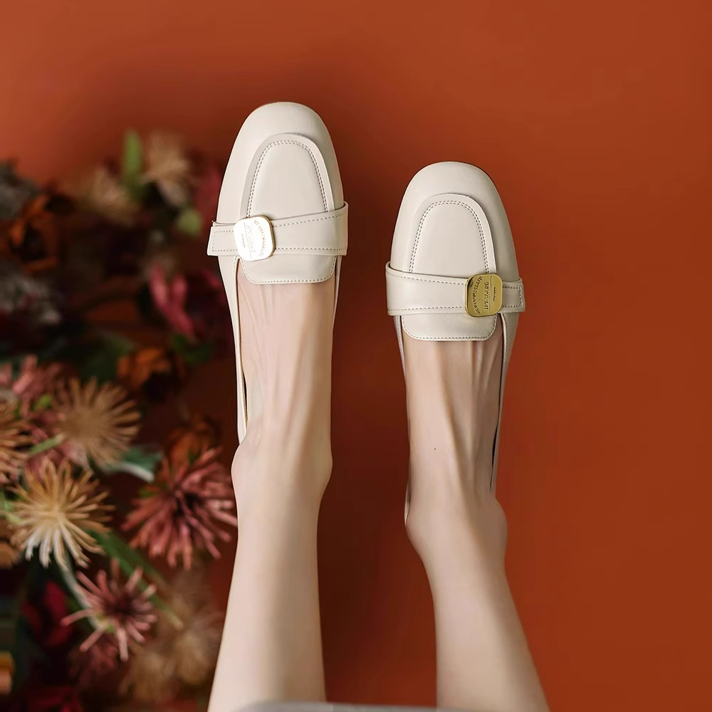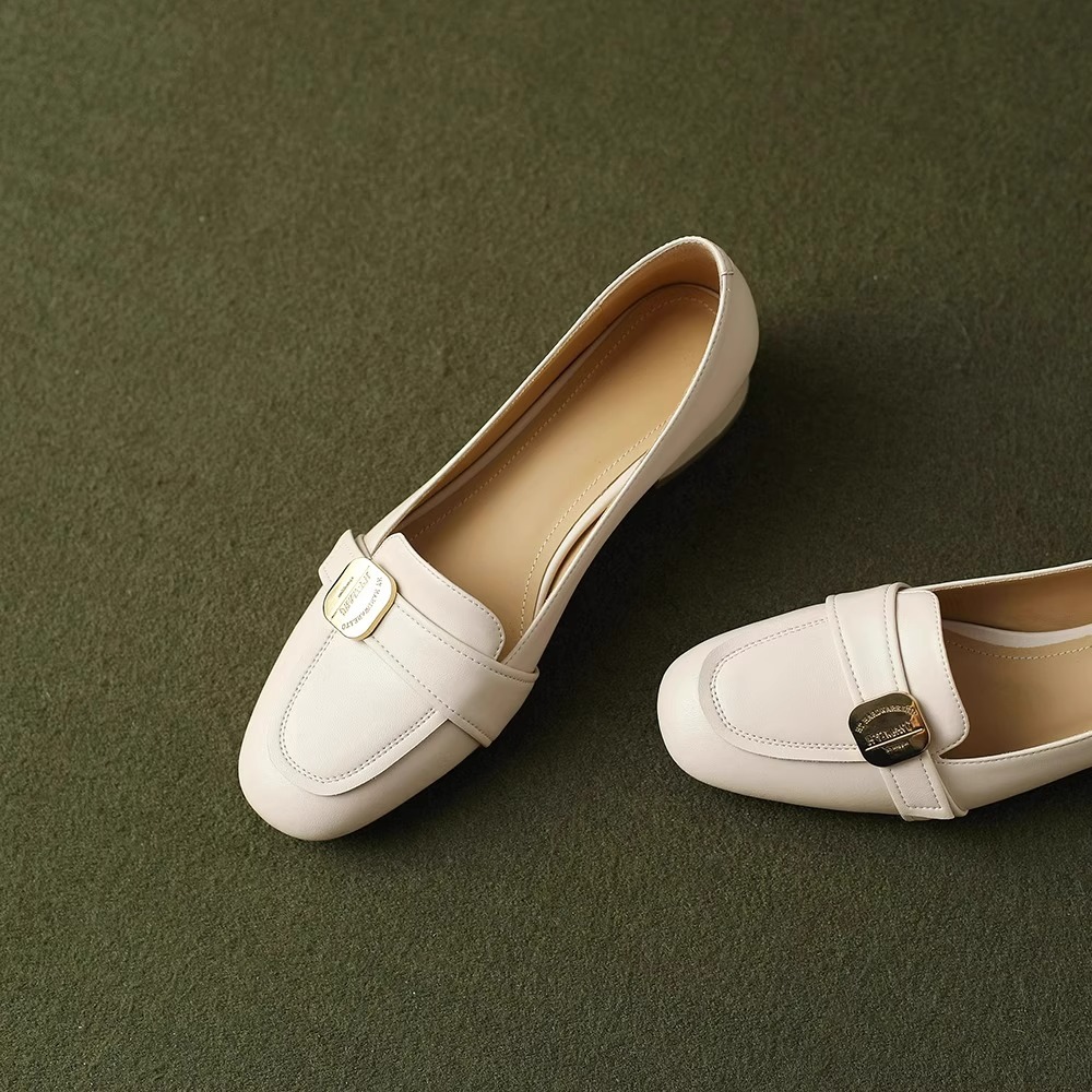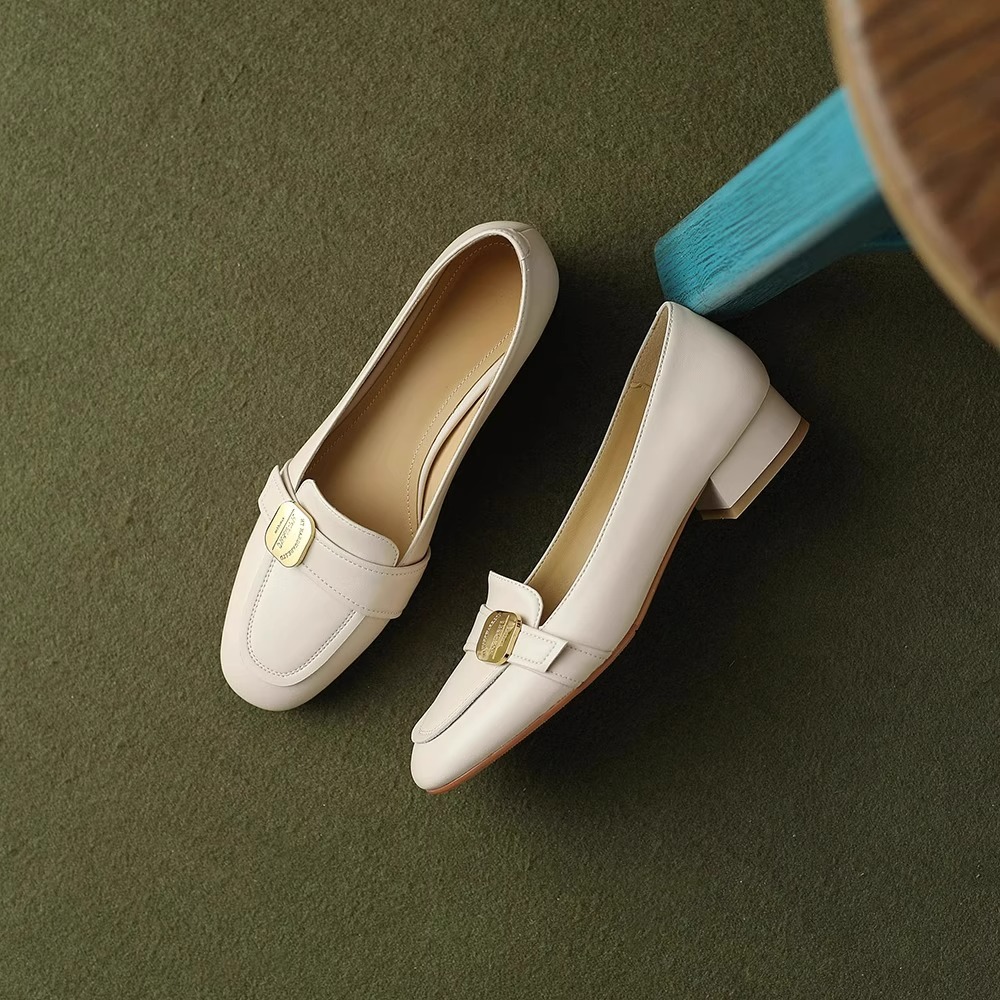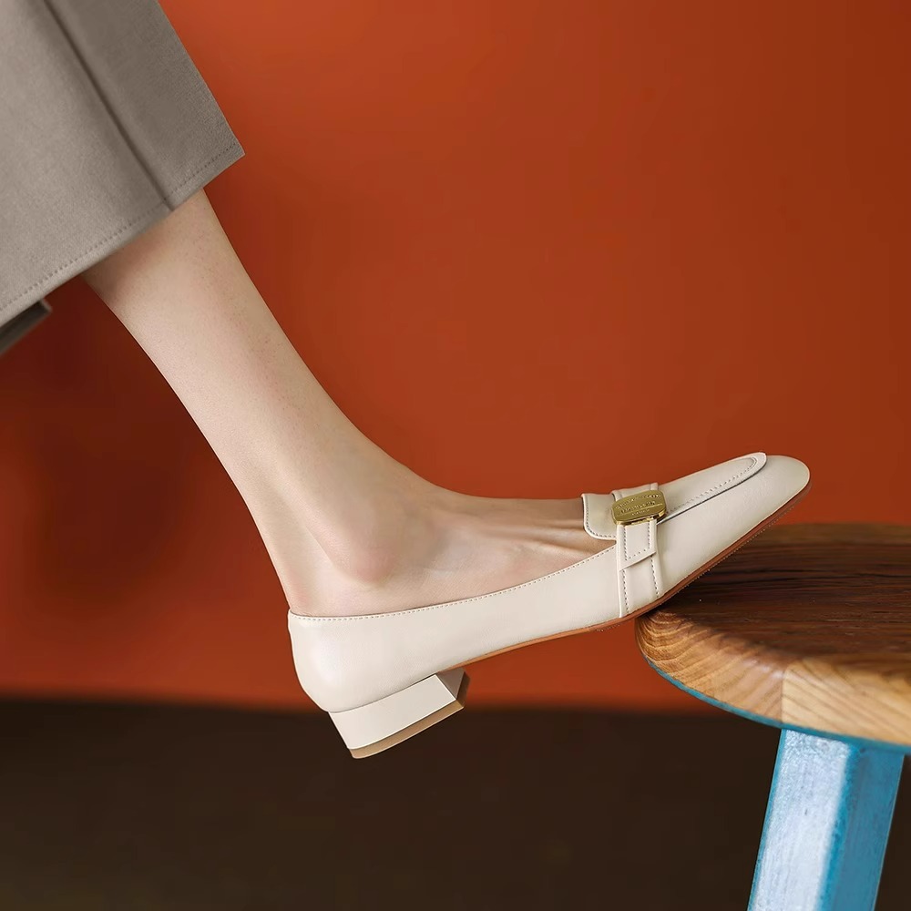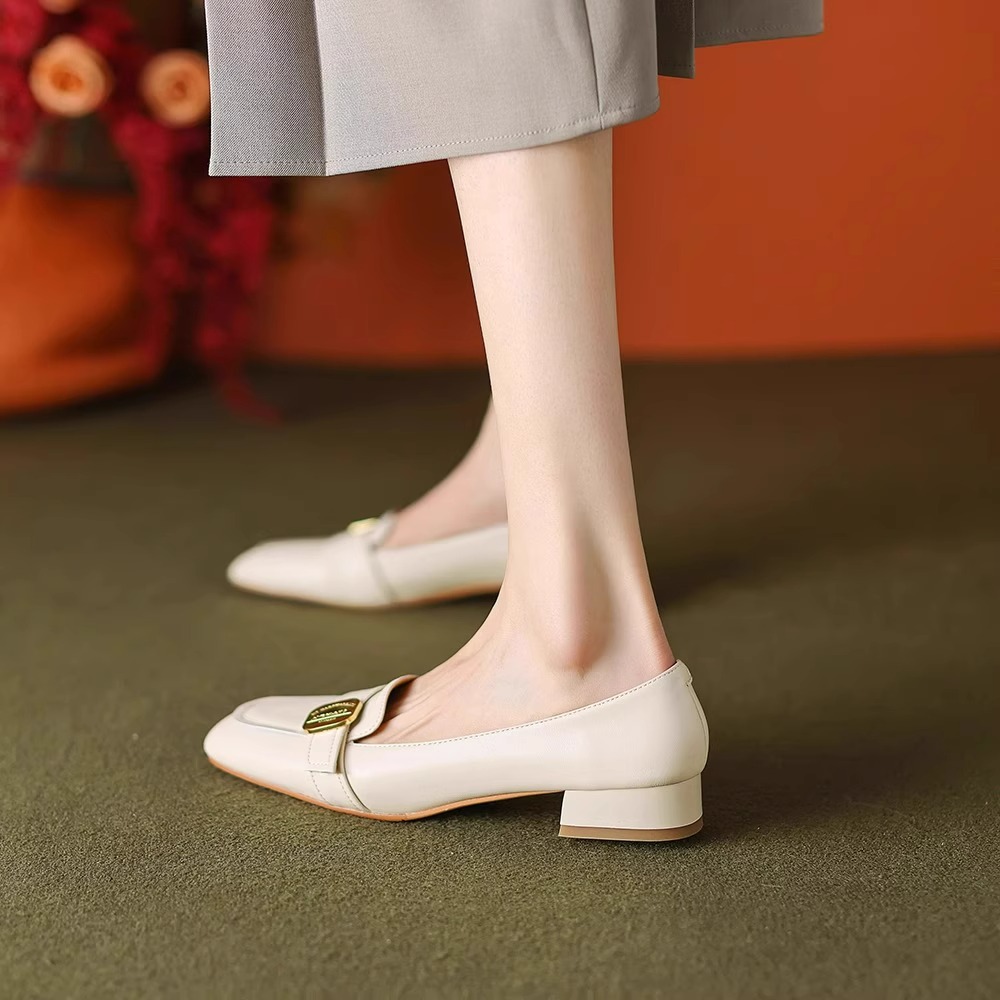재고 있음 ~ 양가죽 버전 프랑스 스타일 아름다운 금속 버클 두꺼운 굽 여성용 펌프스 2025 여름 신작 다용도 비니 슈즈
