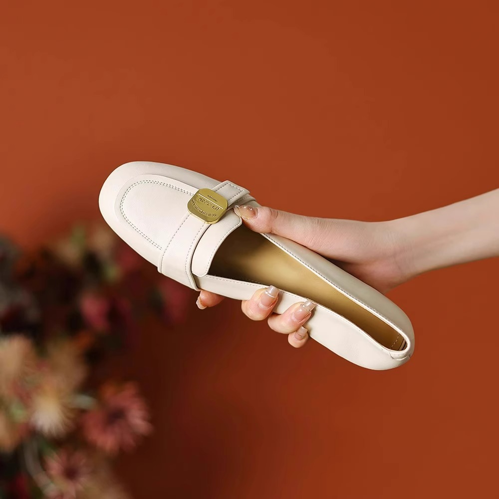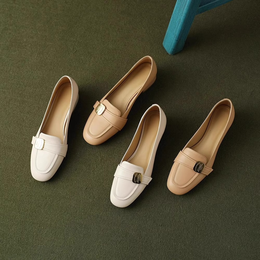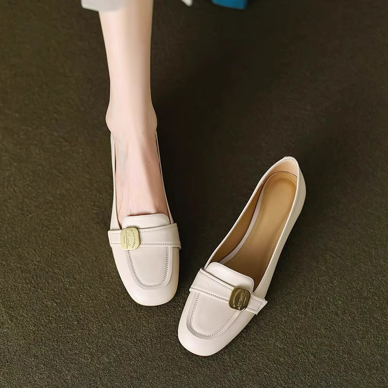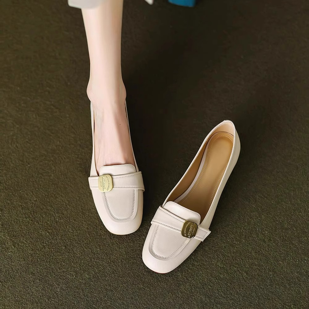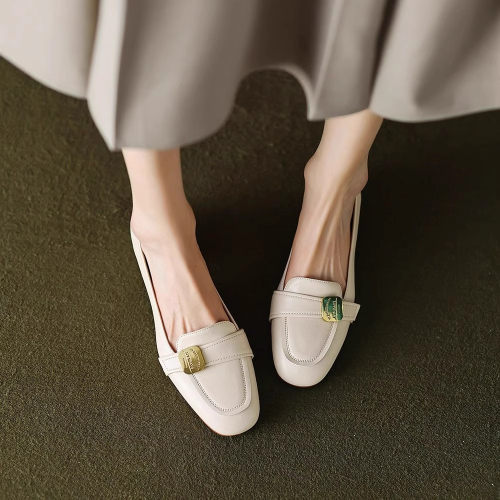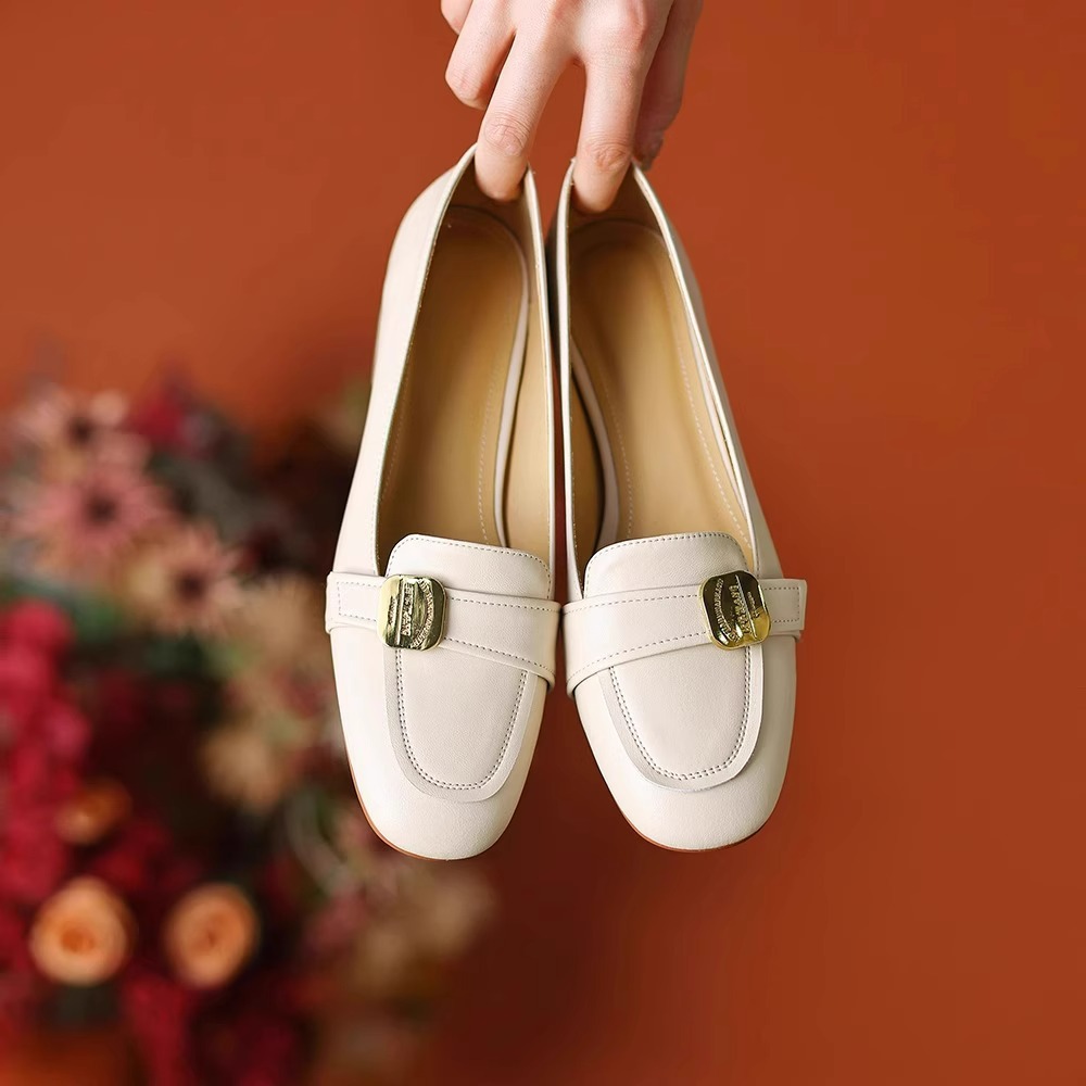 재고 있음 ~ 양가죽 버전 프랑스 스타일 아름다운 금속 버클 두꺼운 굽 여성용 펌프스 2025 여름 신작 다용도 비니 슈즈