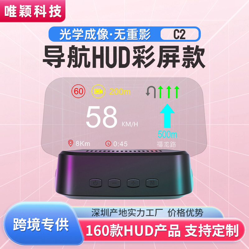 唯颖车载显示器汽车通用obd导航投影仪跨境热销便携hud抬头显示器