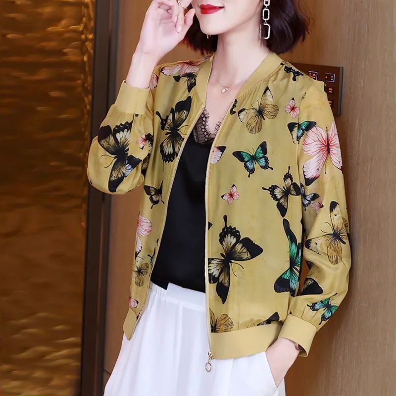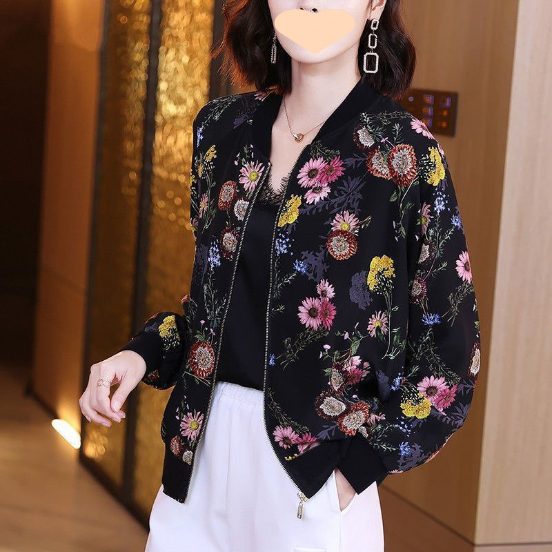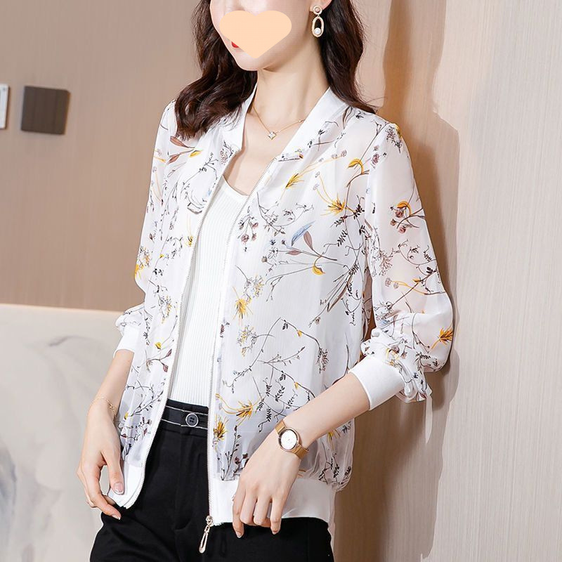 플러스 사이즈 쉬폰 의류 여성 여름 새로운 느슨한 긴팔 인쇄 재킷 야구 유니폼 카디건 통기성 얇은 코트스토어 가기