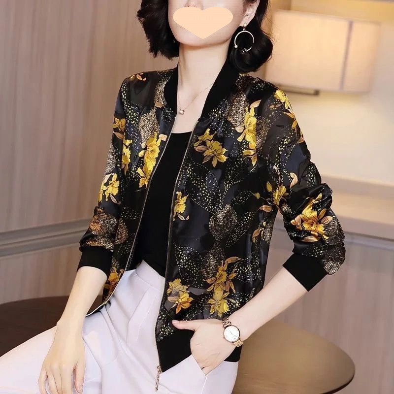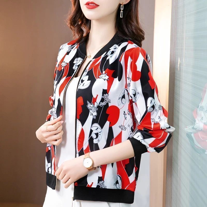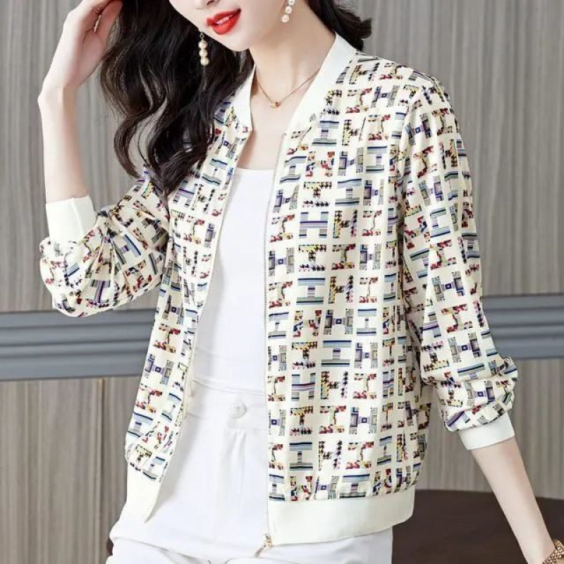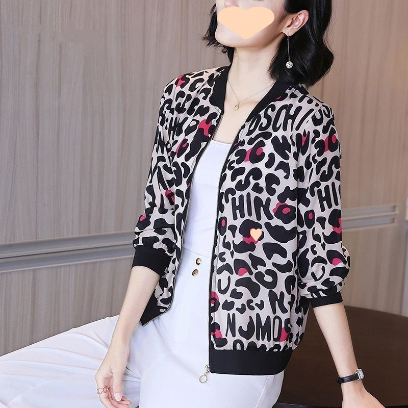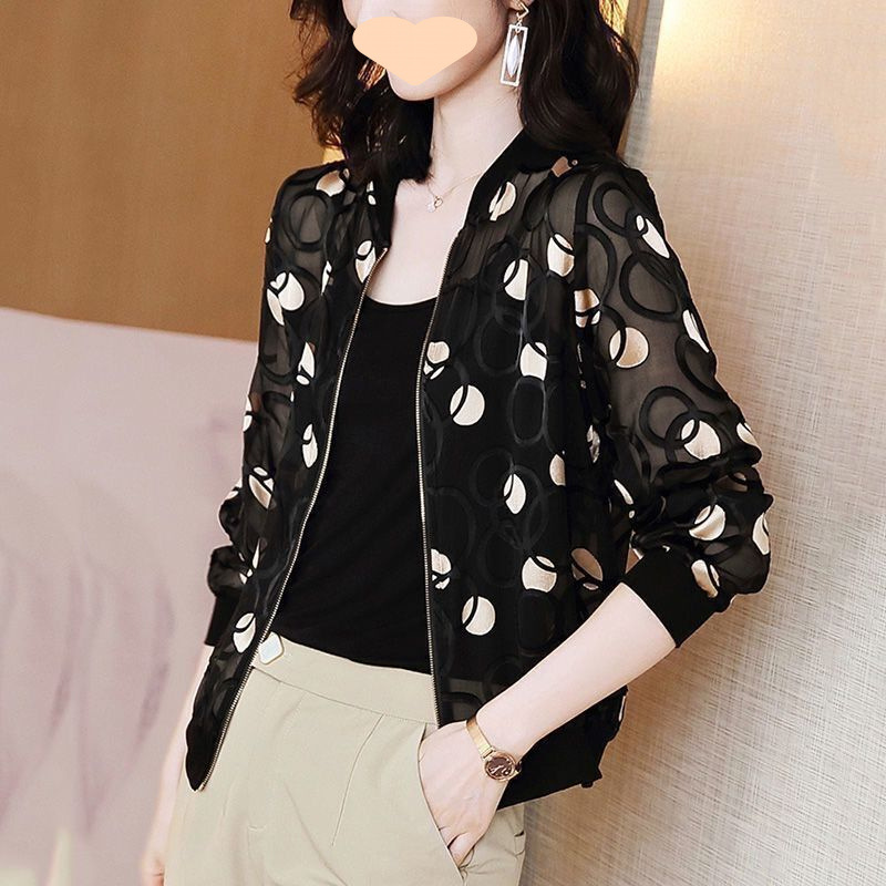 플러스 사이즈 쉬폰 의류 여성 여름 새로운 느슨한 긴팔 인쇄 재킷 야구 유니폼 카디건 통기성 얇은 코트