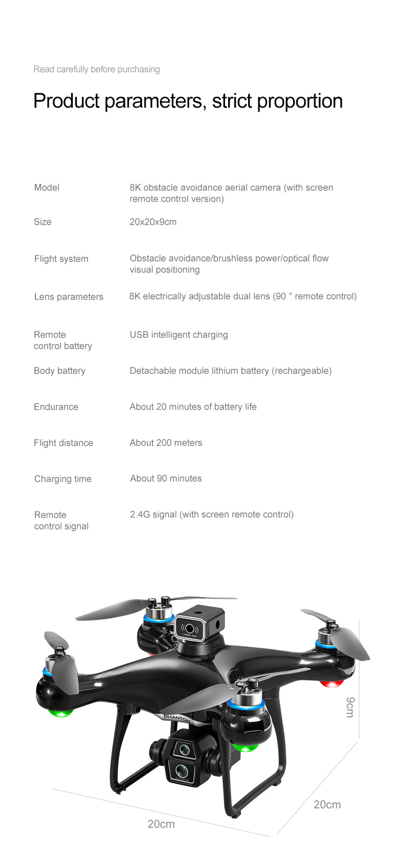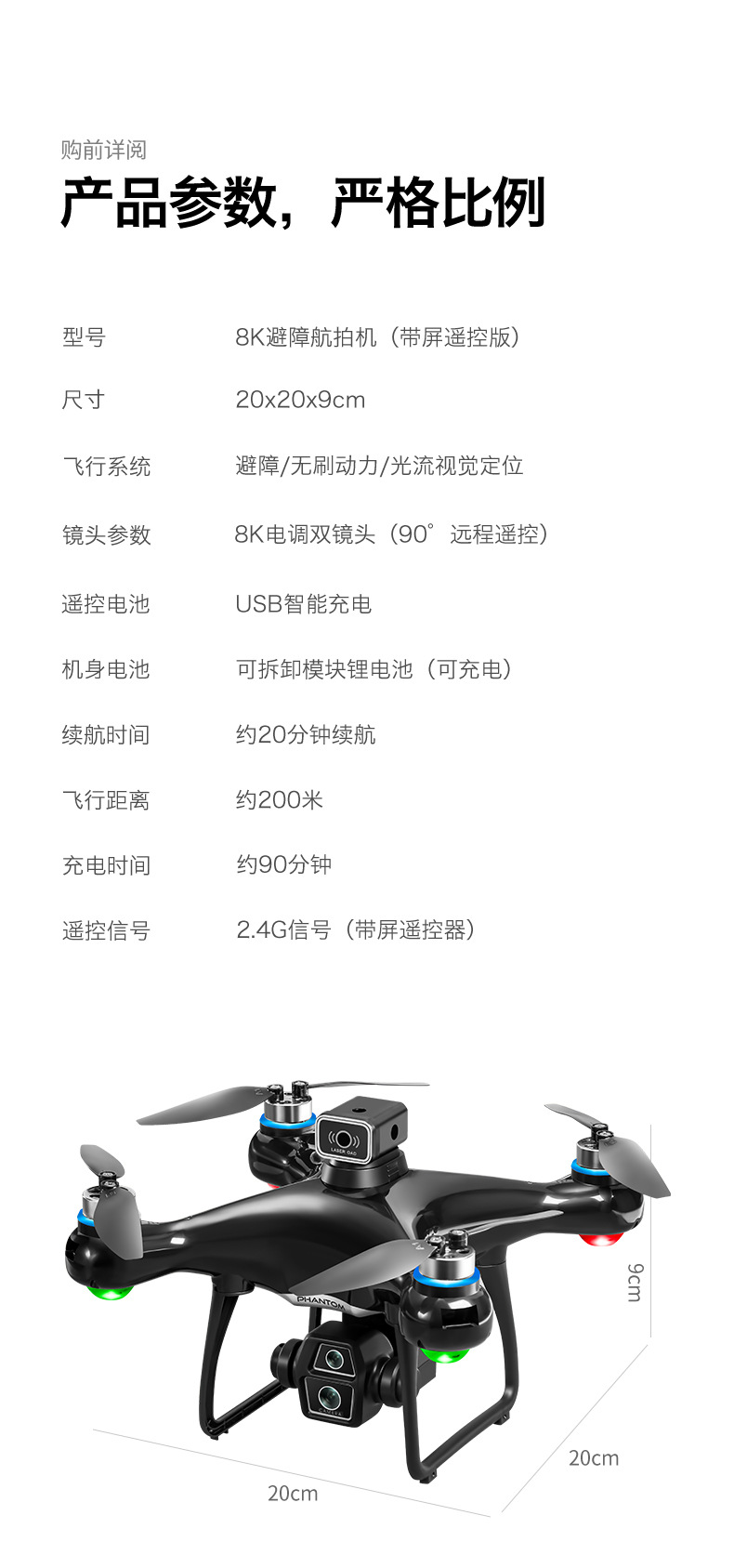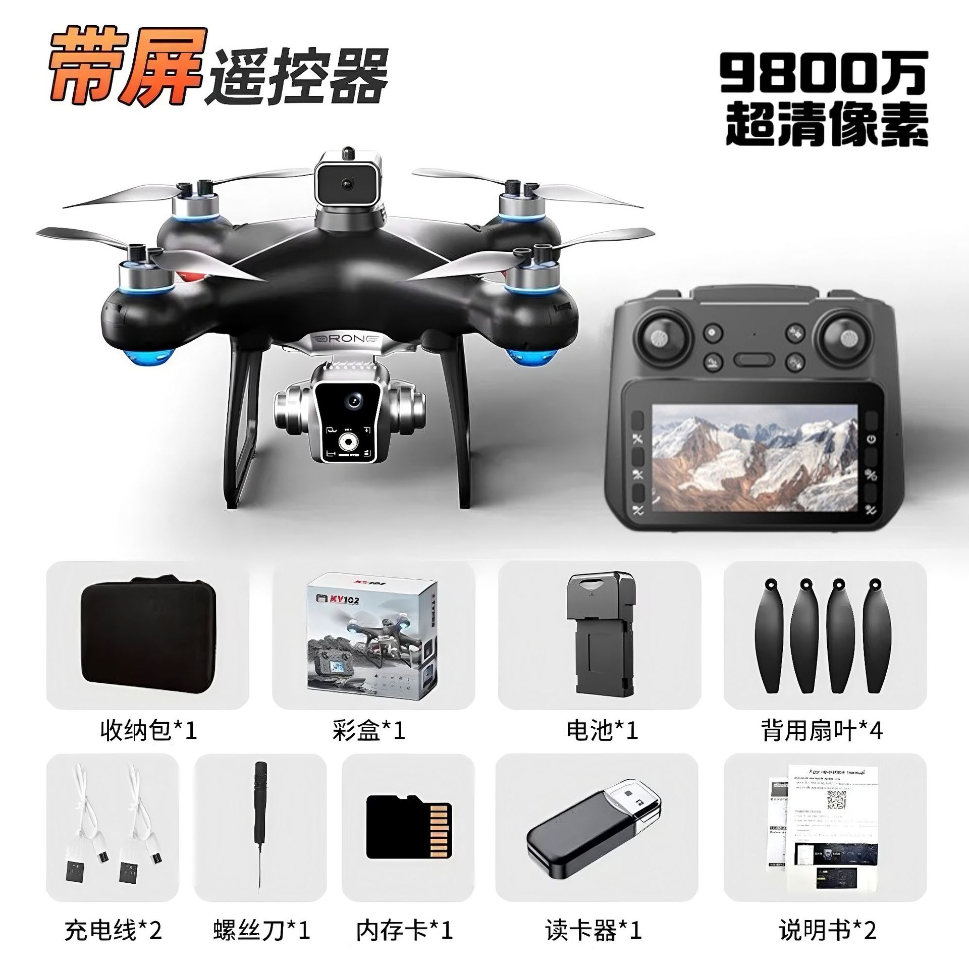 • 블랙 브러시리스 대형 스크린 ESC 듀얼 카메라-1 배터리