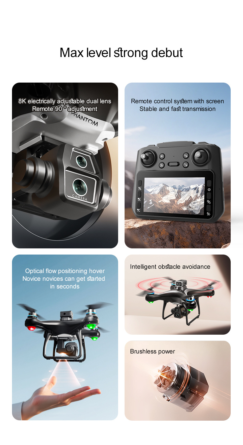 드론 국경 간 새로운 Elf 4.5inch 대형 스크린 원격 제어 항공기 브러시리스 드론 항공 사진 쿼드 콥터