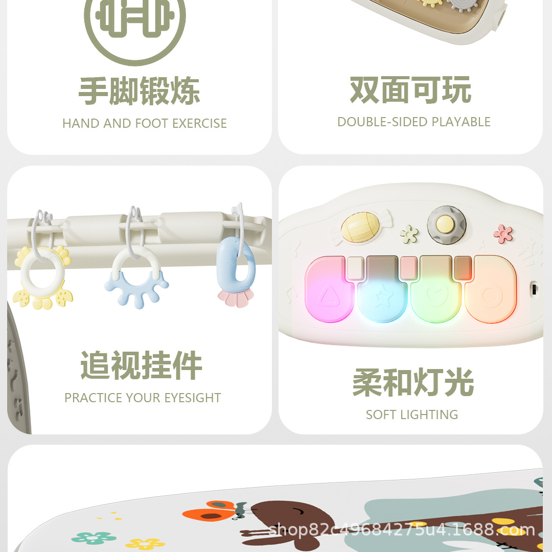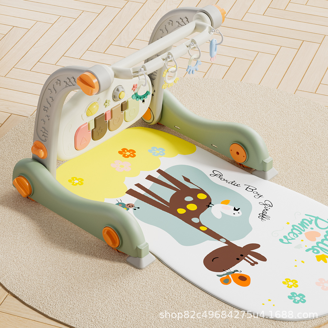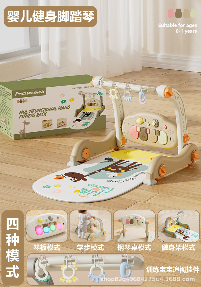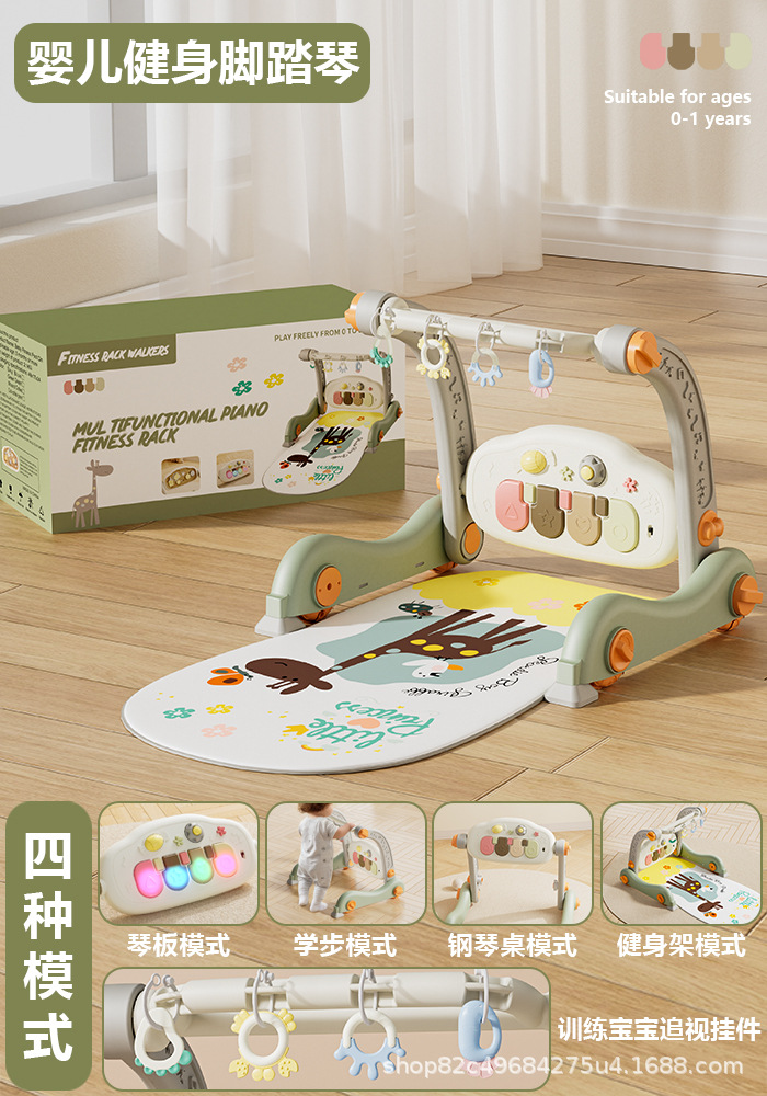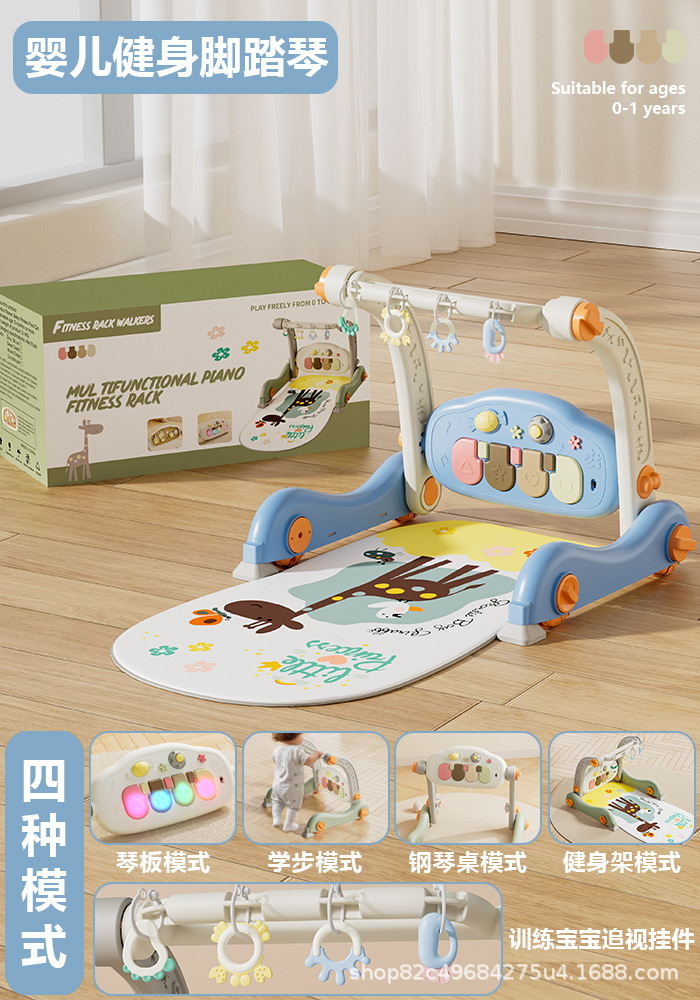 아기 4-in-1 피아노 피트니스 스탠드 보행기 0-36개월 아기 조기 교육 음악 페달 게임 담요