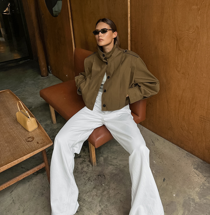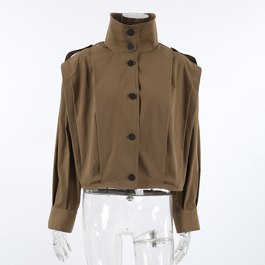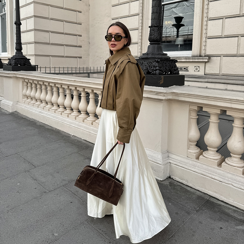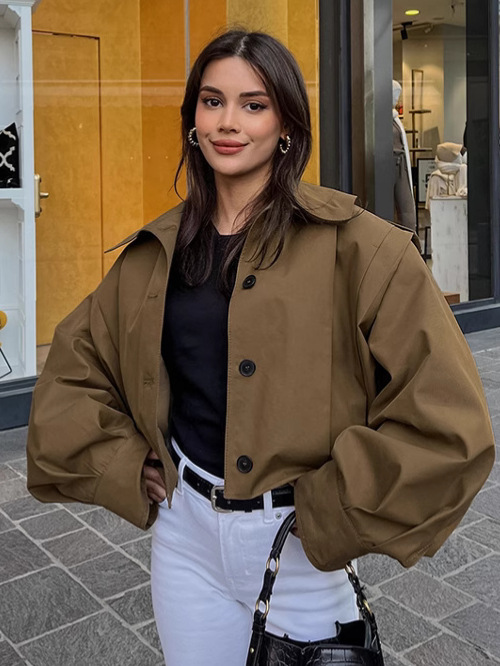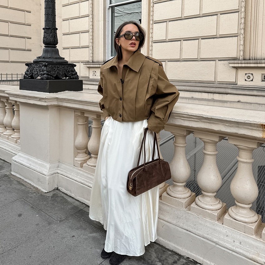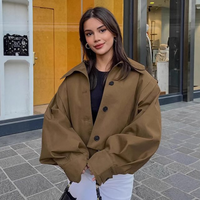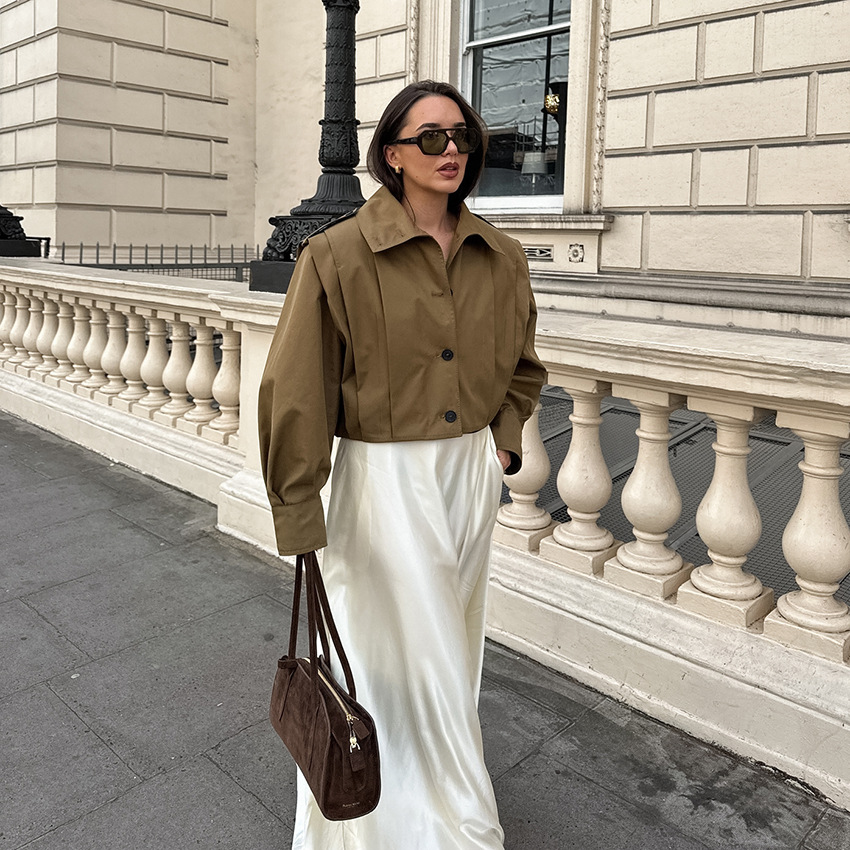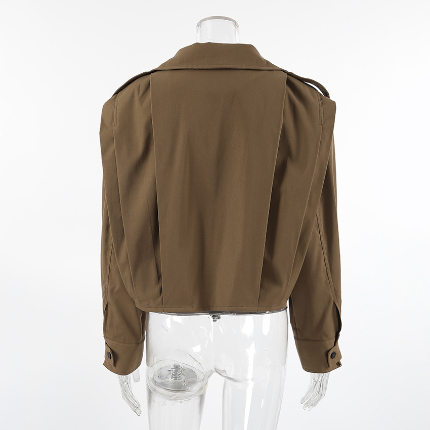 여성을위한 국경 간 유럽과 미국 디자인 주름 라펠 재킷 2025 가을 메일 라드 느슨한 긴팔 재킷 여성 의류스토어 가기
