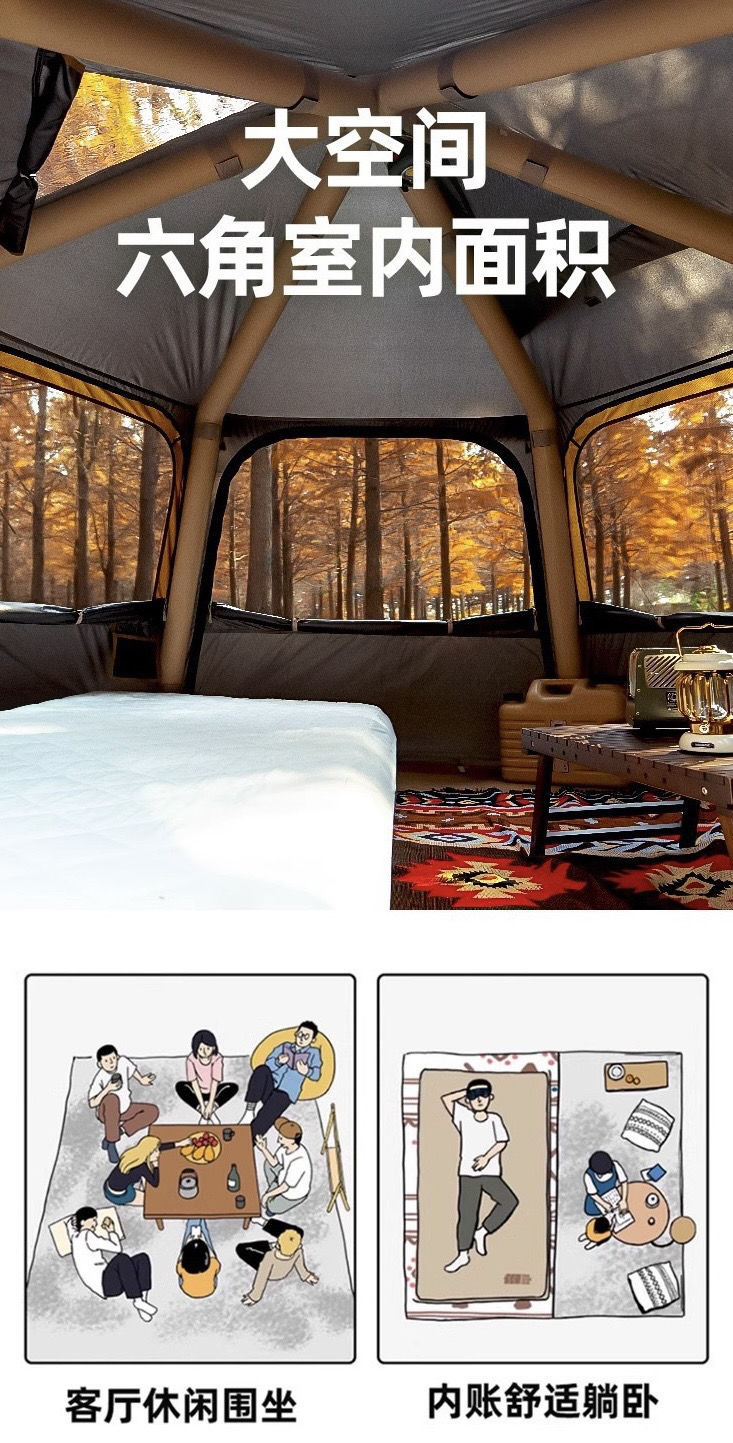 탐험가의 빠른 설치 육각형 자동 팽창식 텐트 야외 캠핑 접이식 방수 캠핑 텐트 팽창식